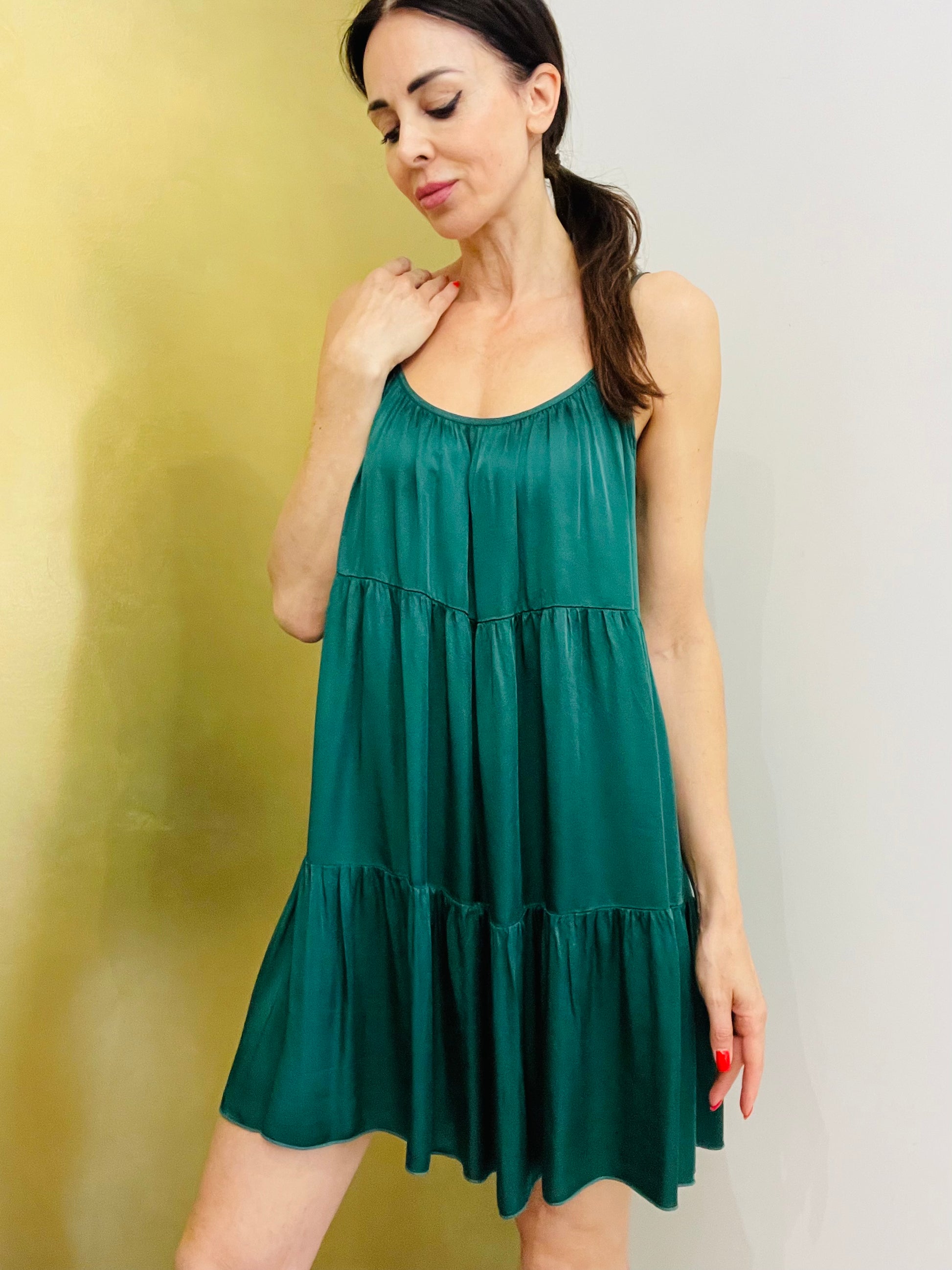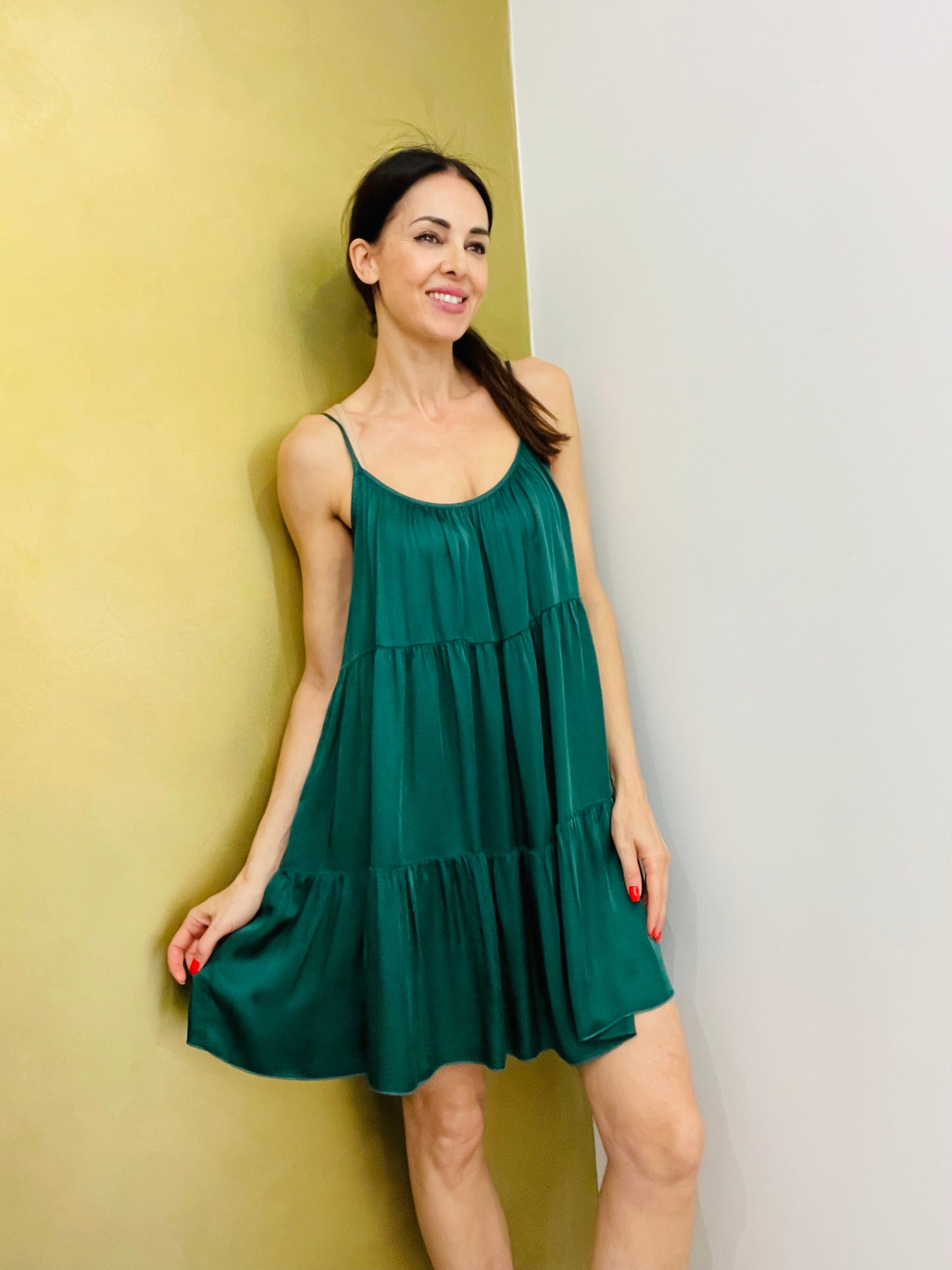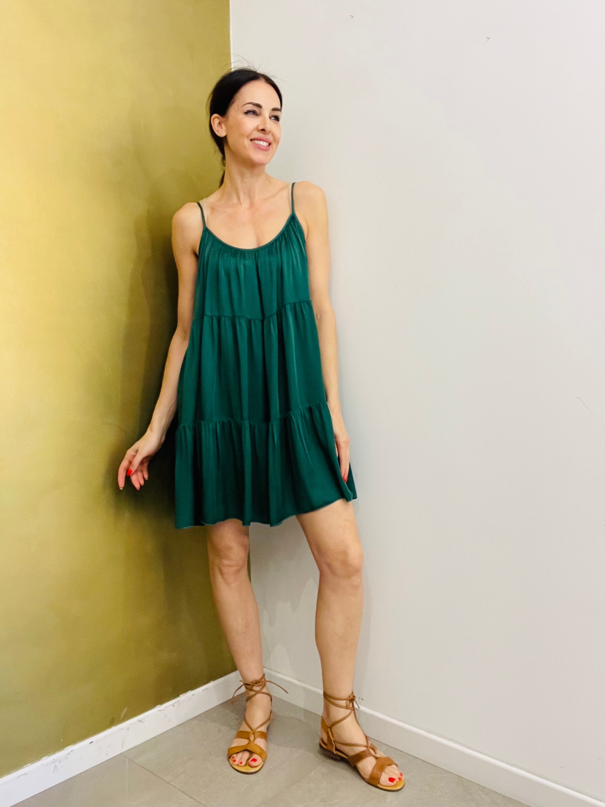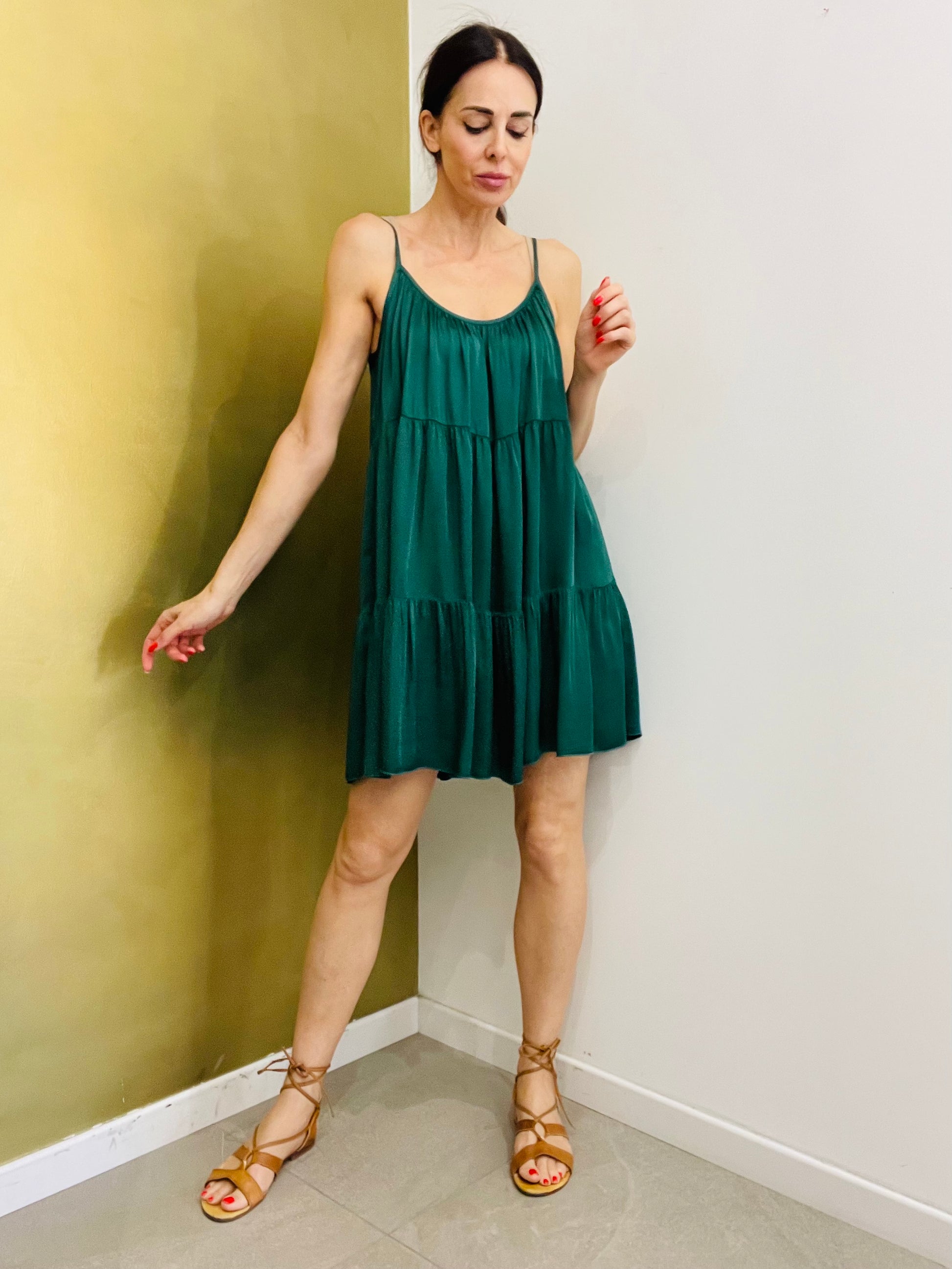 Abito Corto in viscosa con balze vestibilità morbida in taglia unica, Spalline a sottoveste regolabili