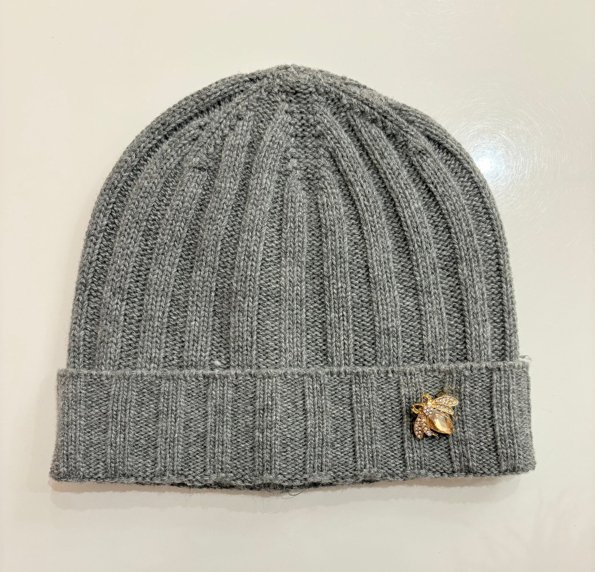 Berretto in misto cashmere a costine con applicazione di spilla rimovibile