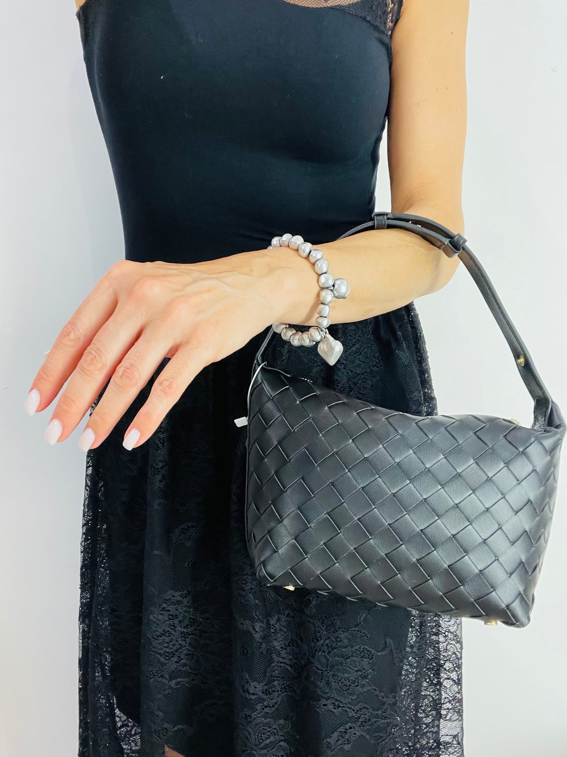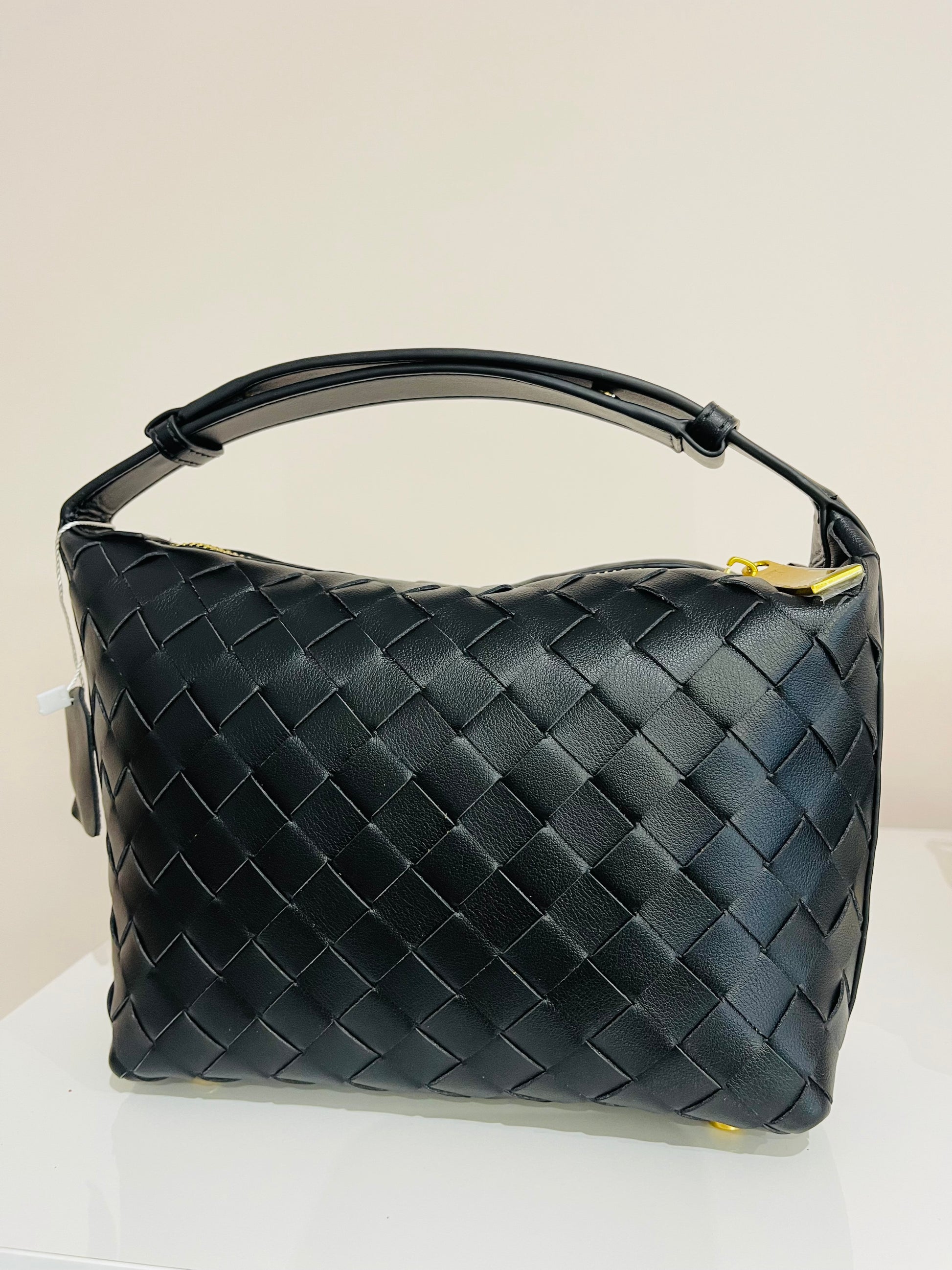 Borsa in vera pelle con lavorazione ad intreccio in intarsiata zip come chiusura manico con doppia misura