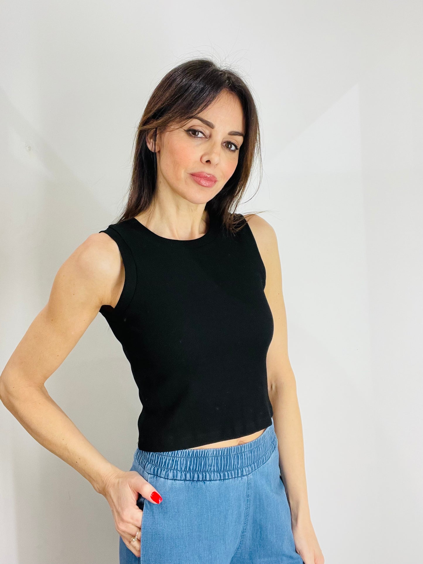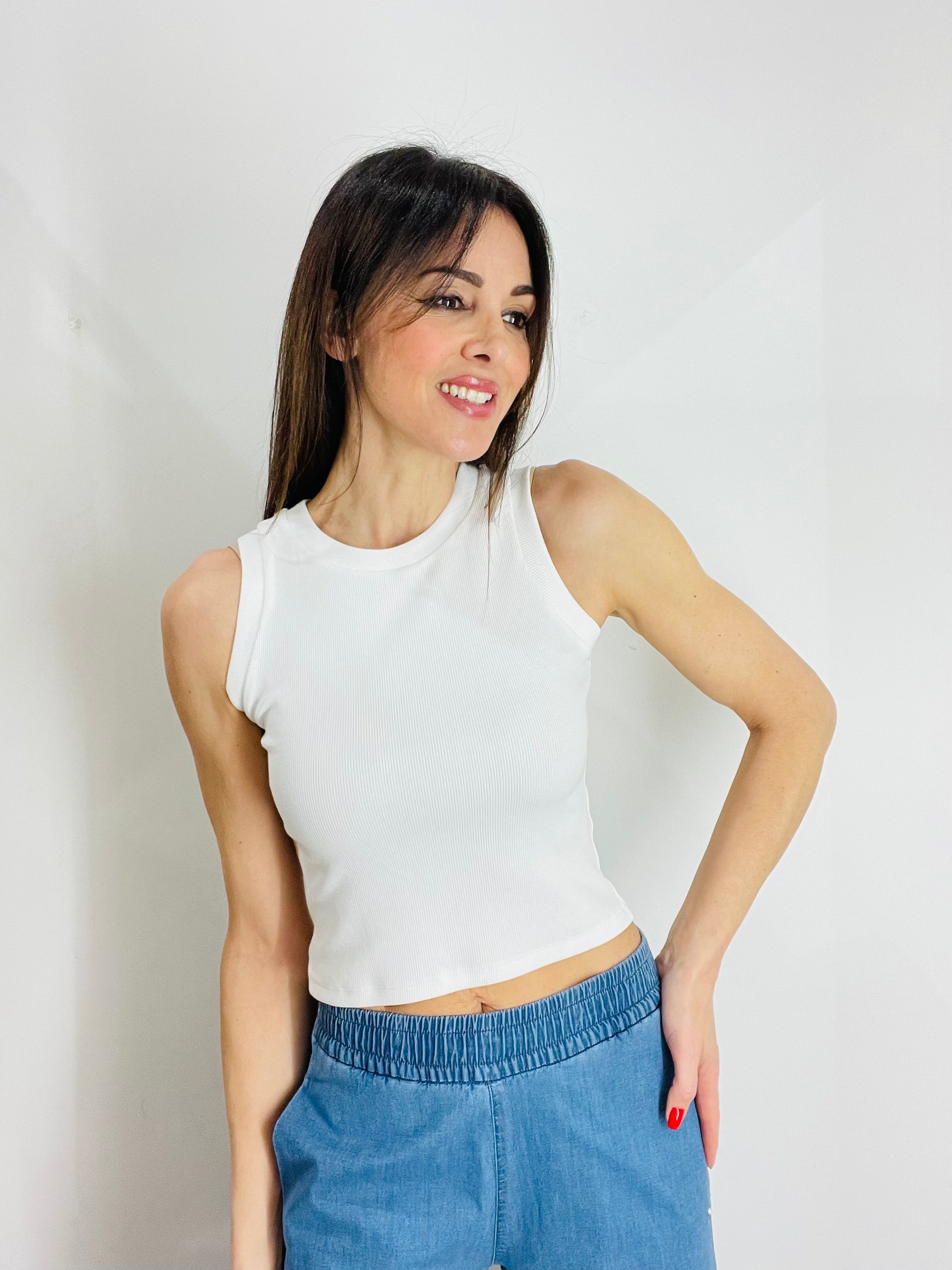 Canotta top in Jersey a costine a girocollo, vestibilità regolare leggermente Crop