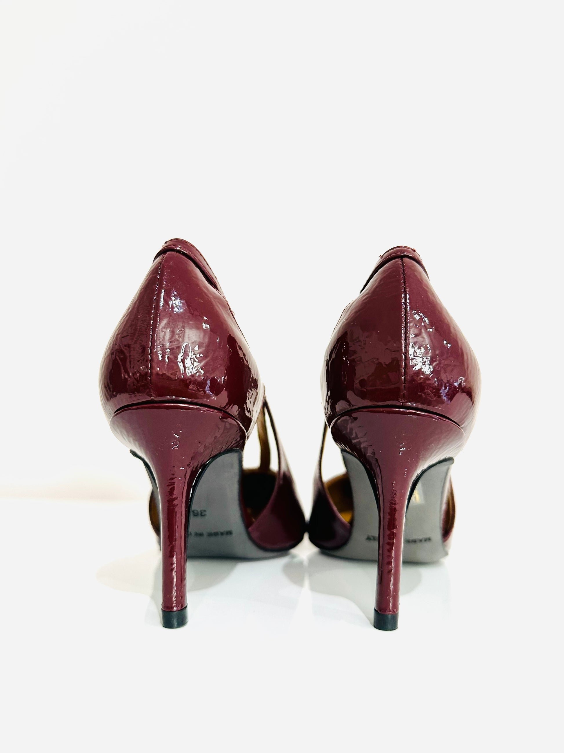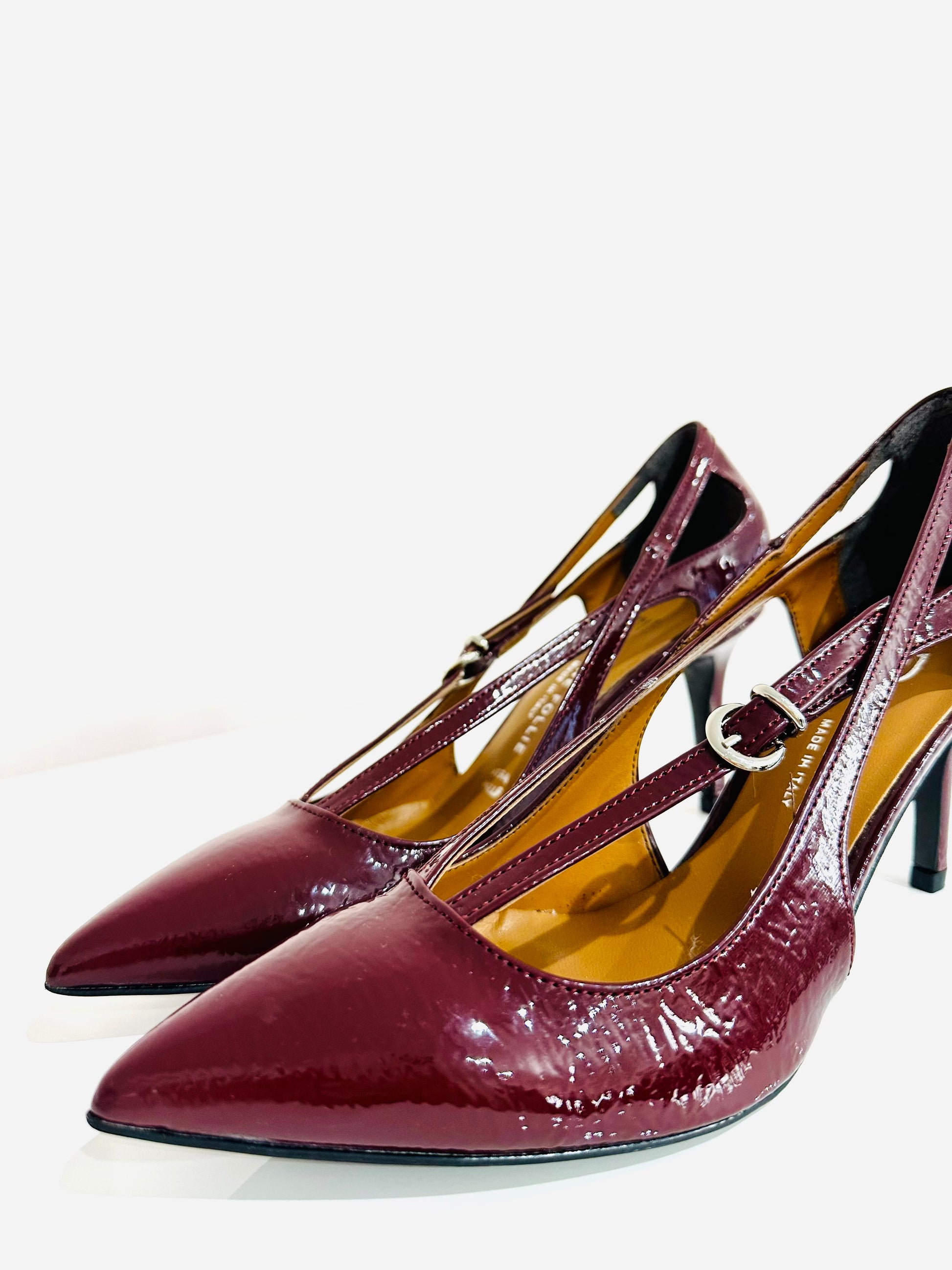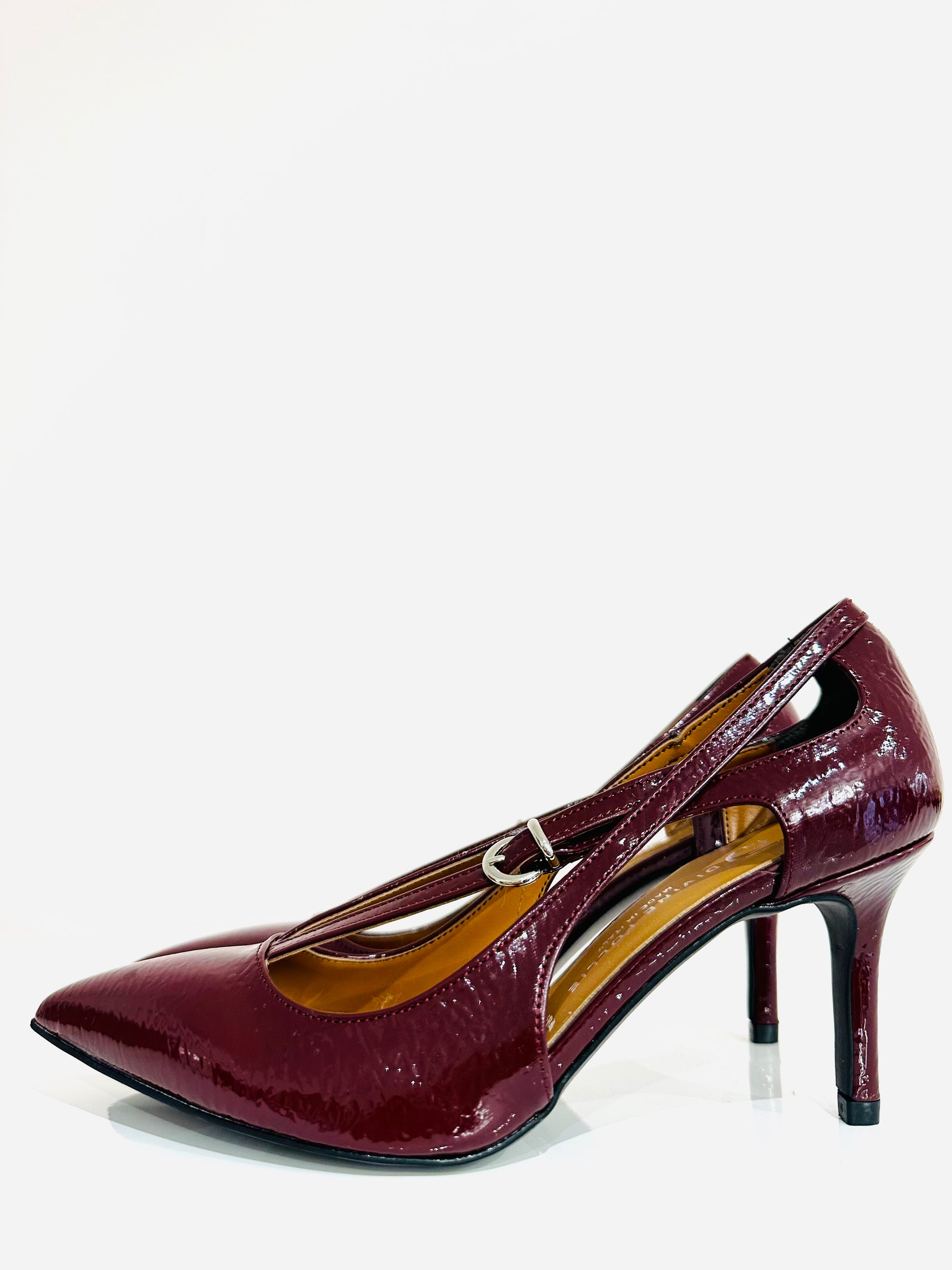 Décolleté in vernice bordeaux con dettaglio di cinturino doppio nella parte frontale