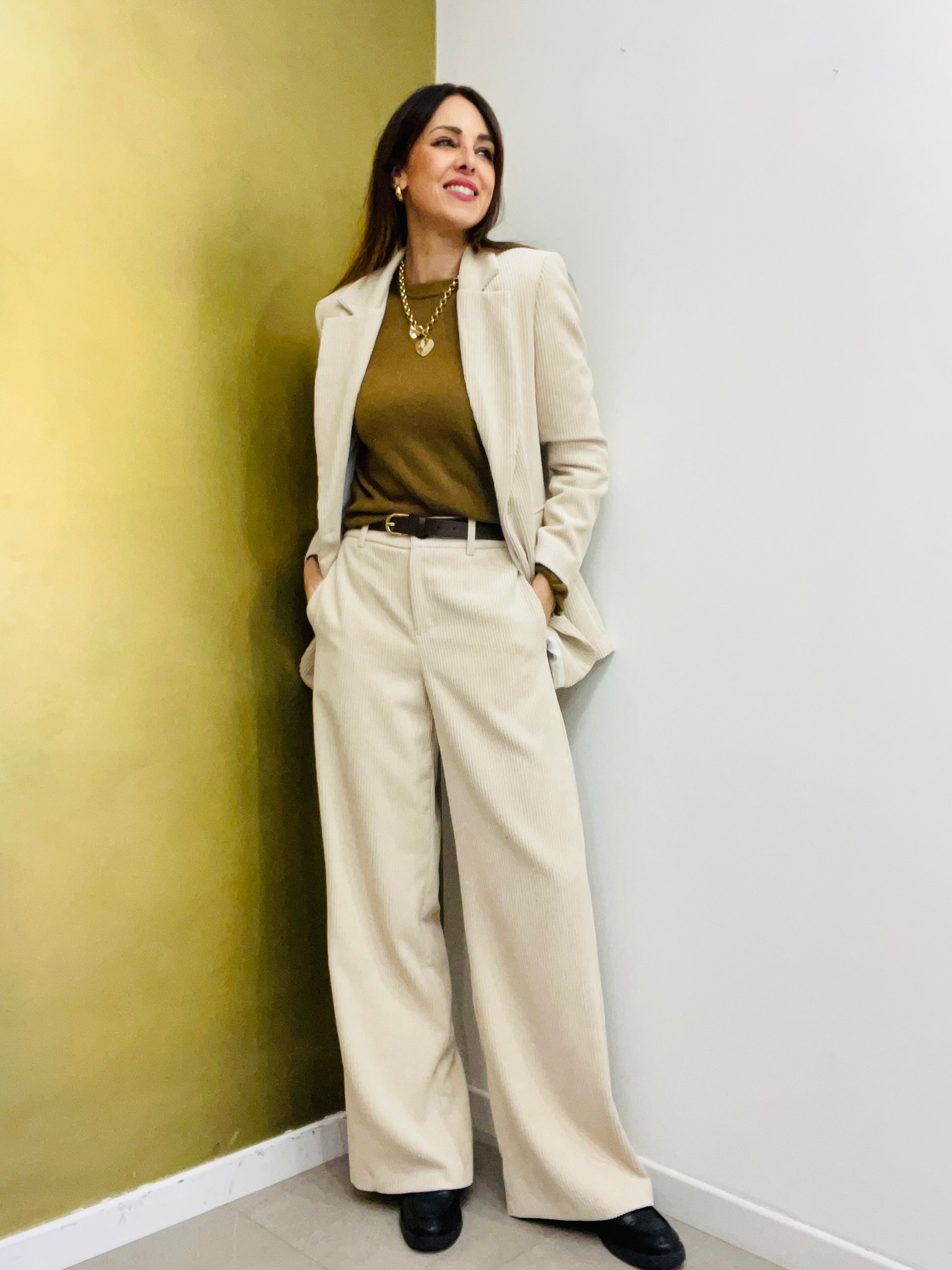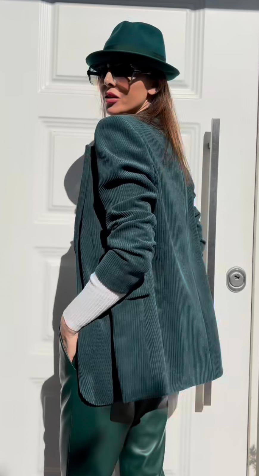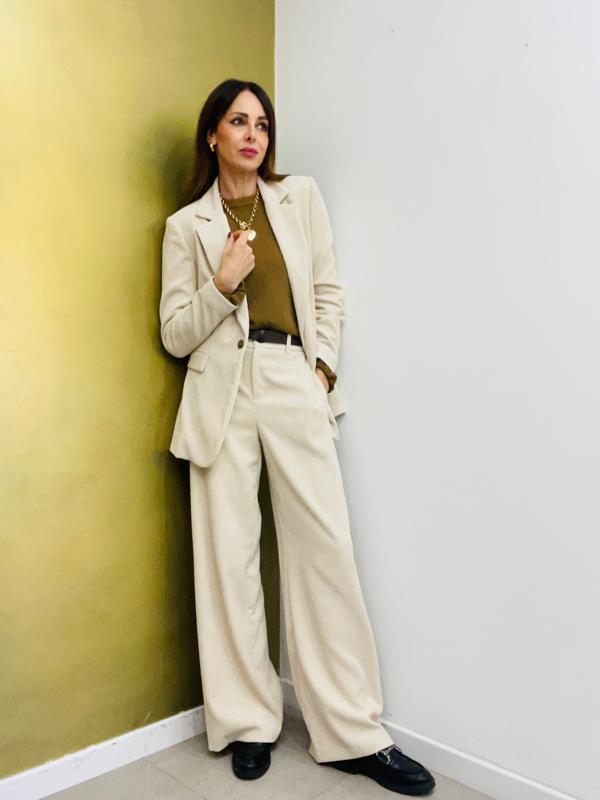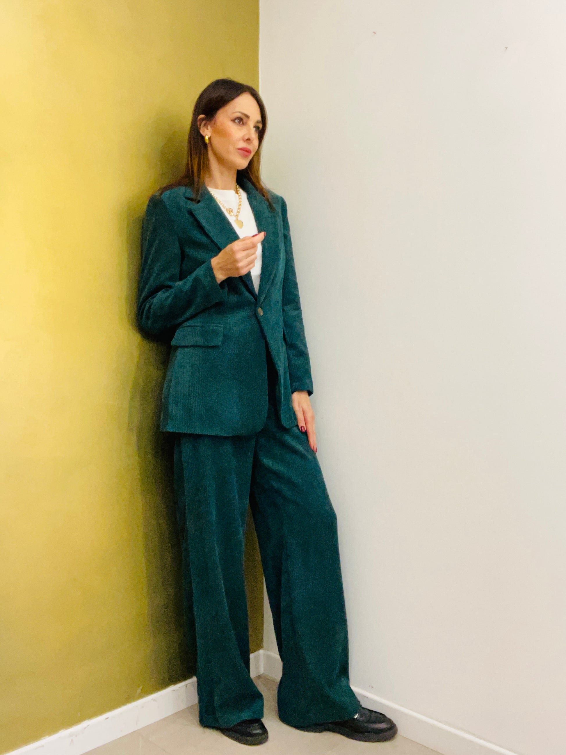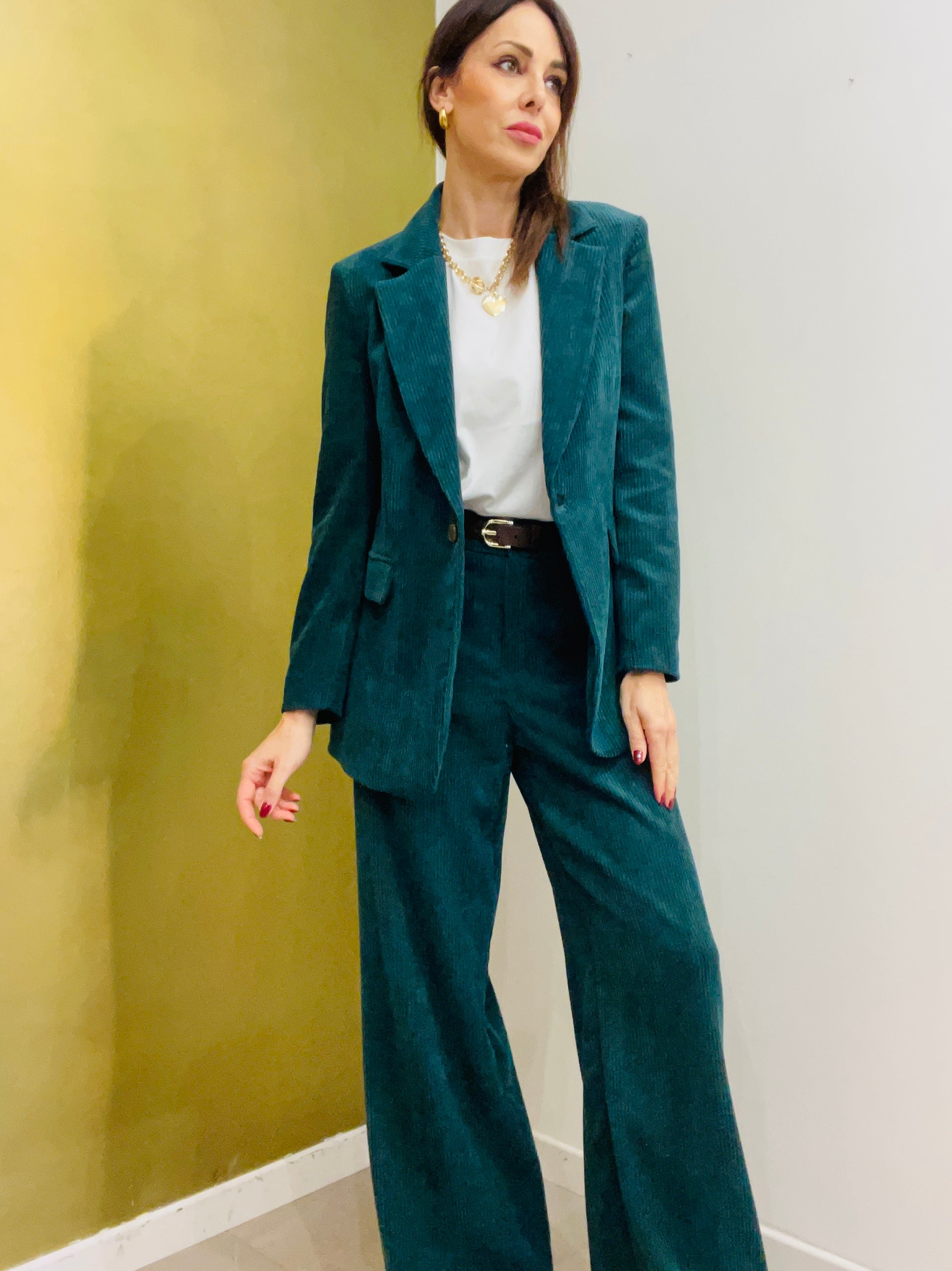 Giacca a cinquecento righe con fodera al suo interno, pattine sul davanti e chiusura a bottone