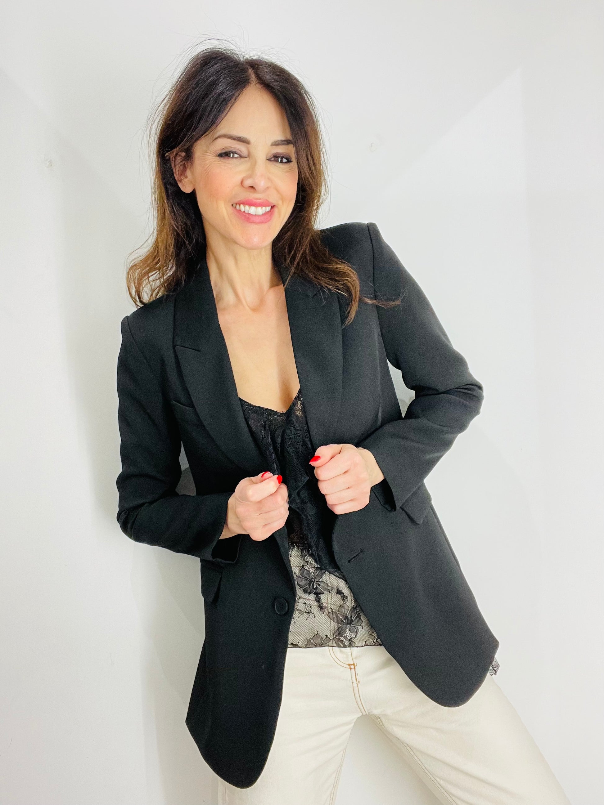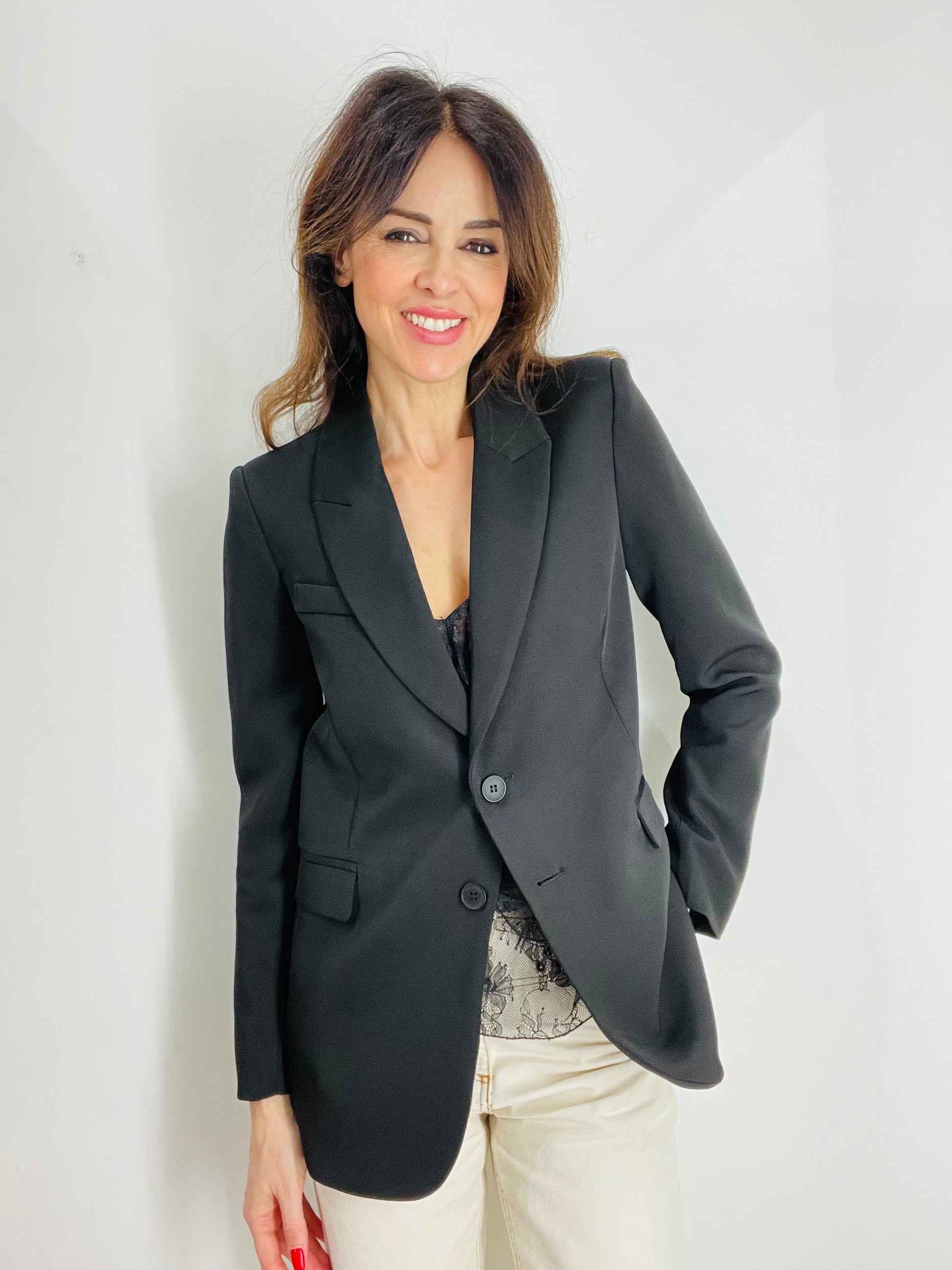 Giacca a due bottini dalla linea regolare con dettaglio di pattine applicate