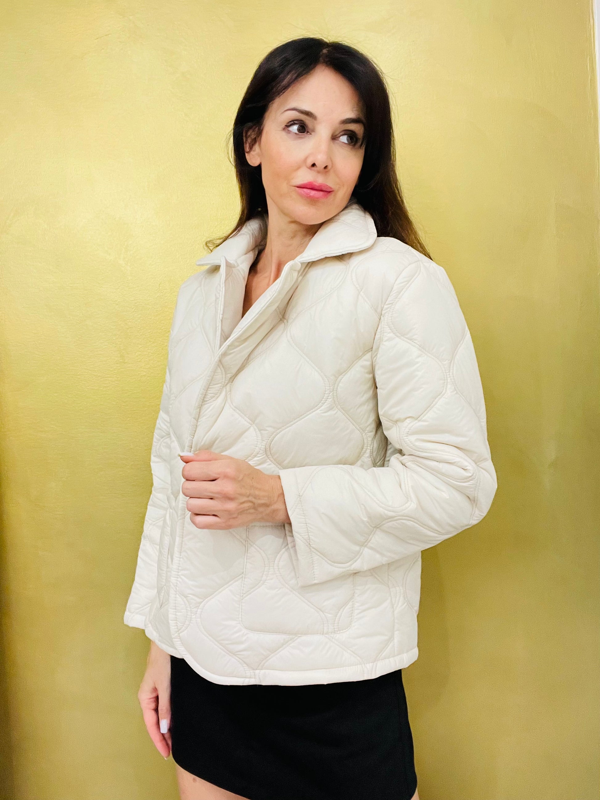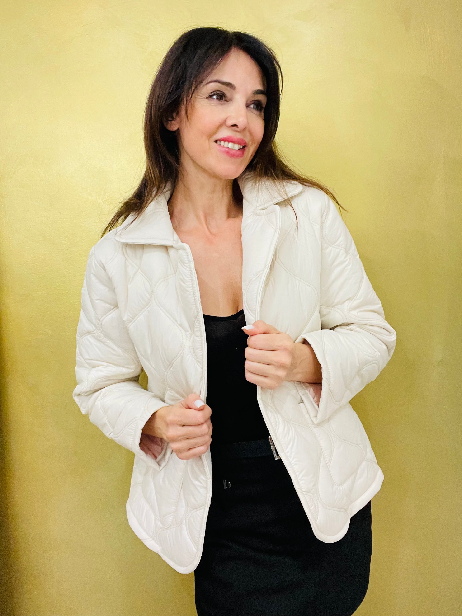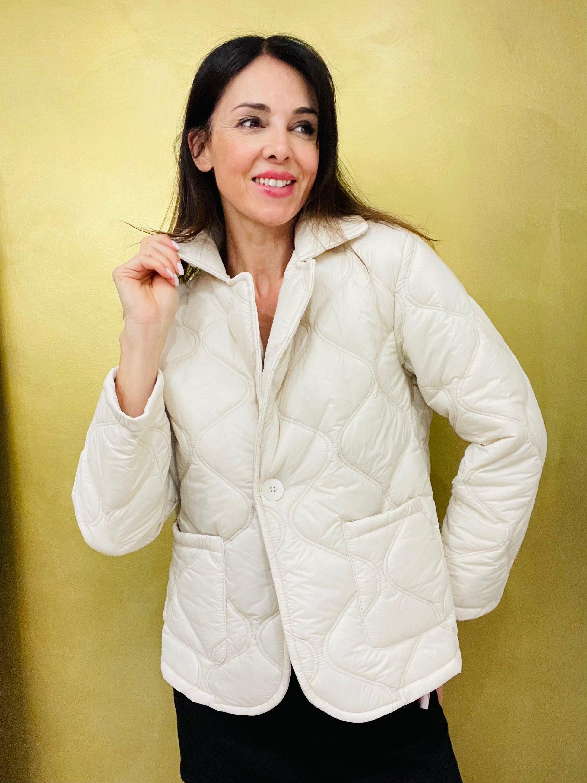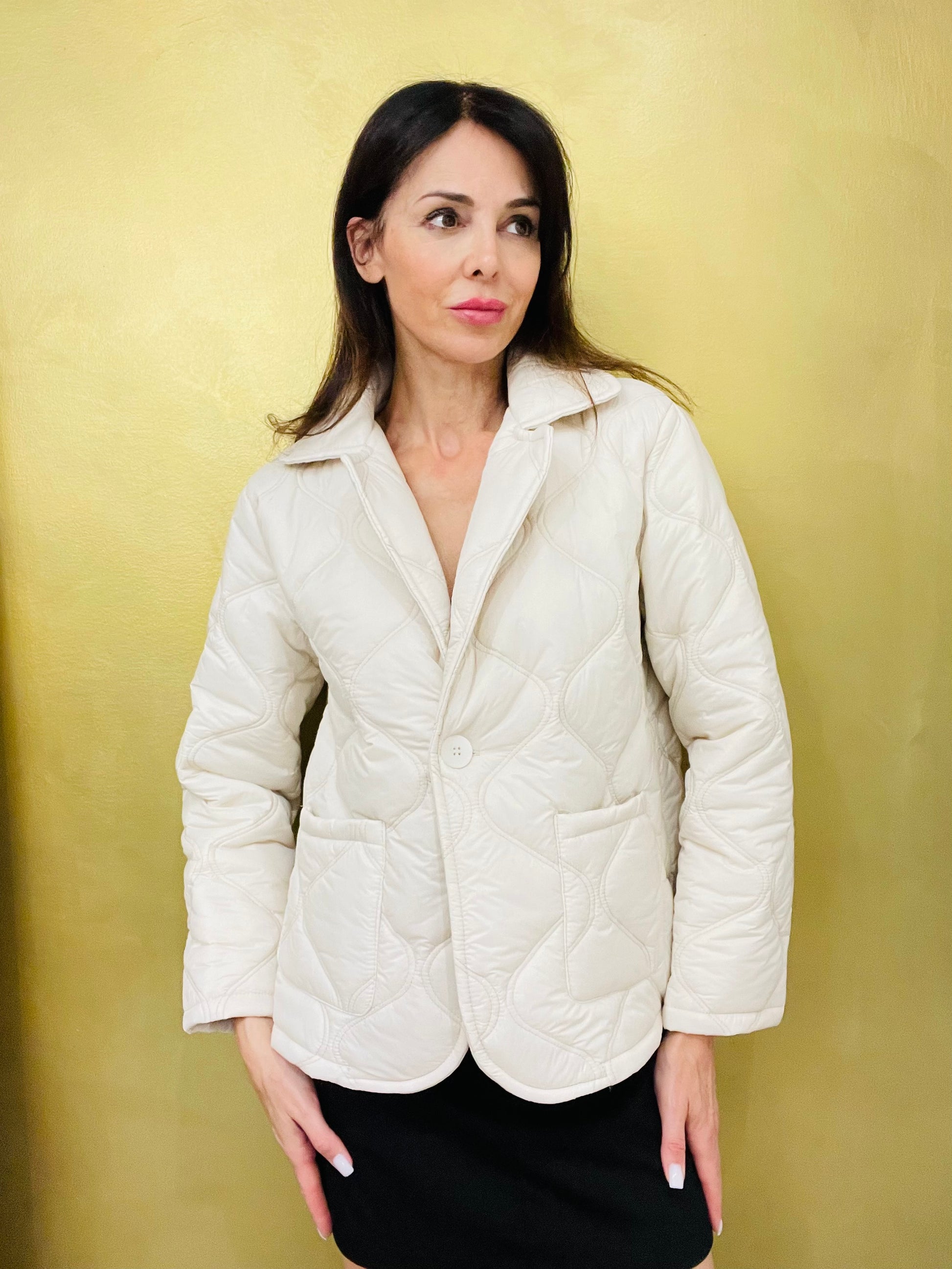 Giubbotto imbottito con rever, tasche sul davanti, chiusura un bottone con asola