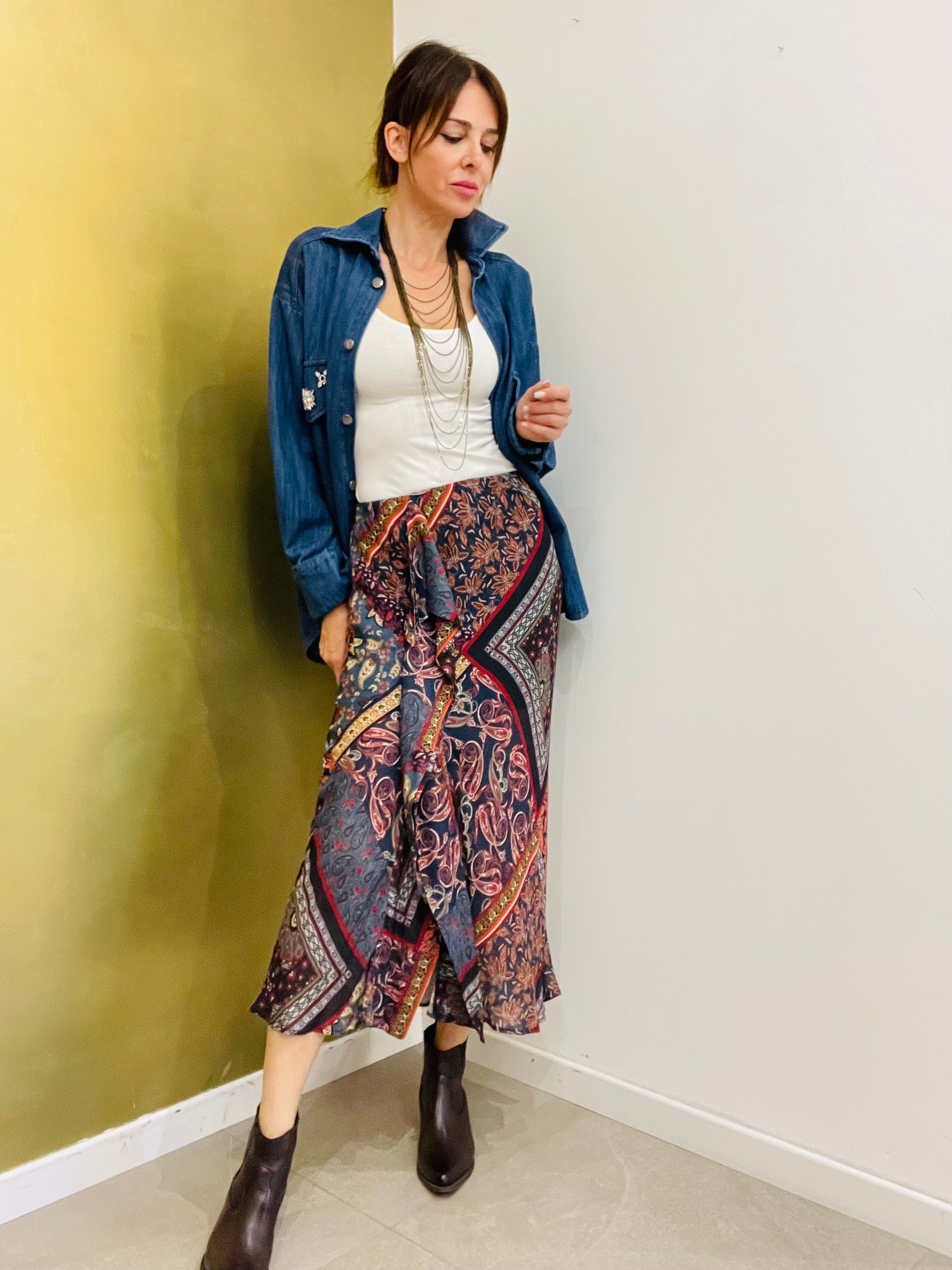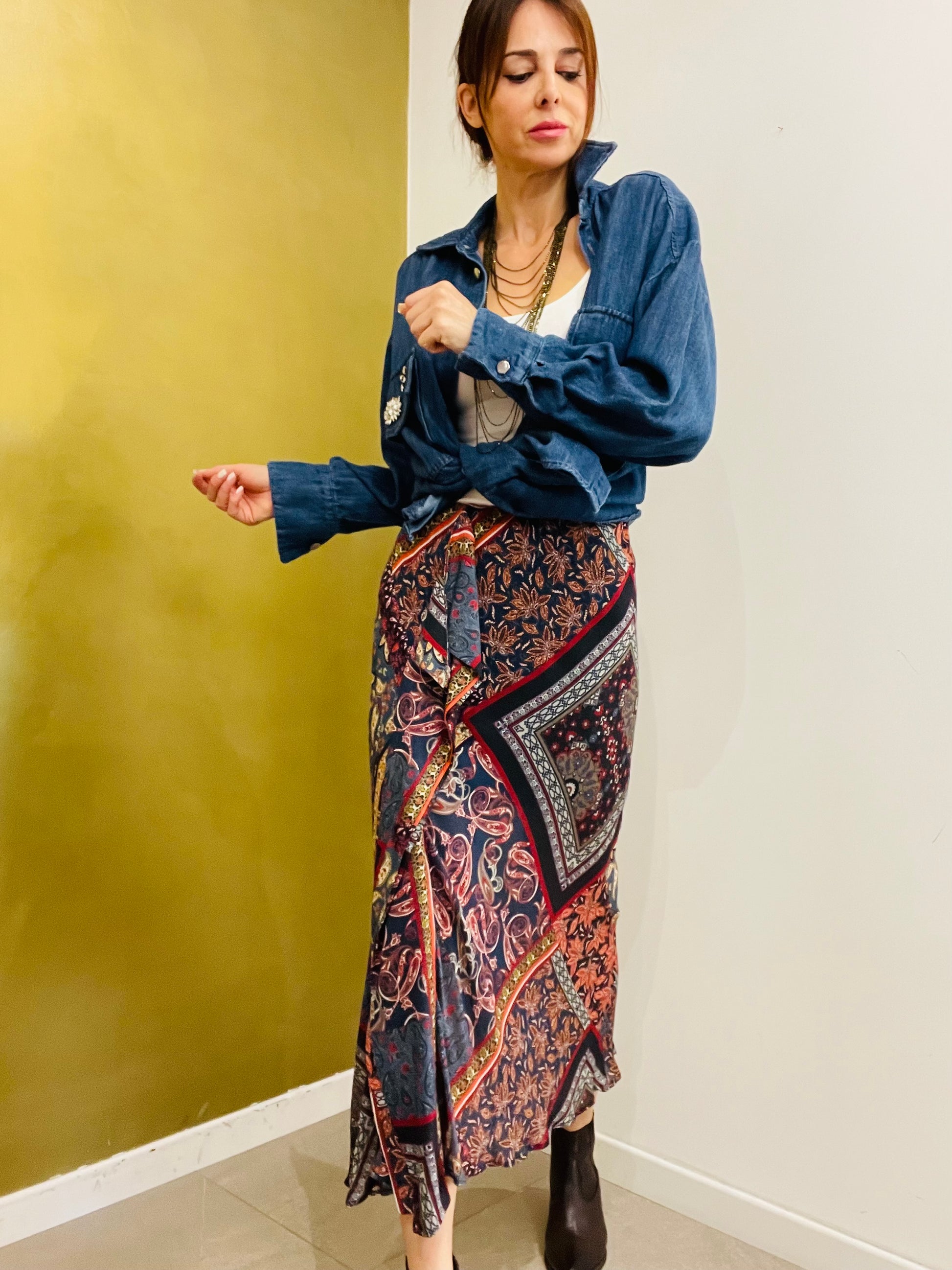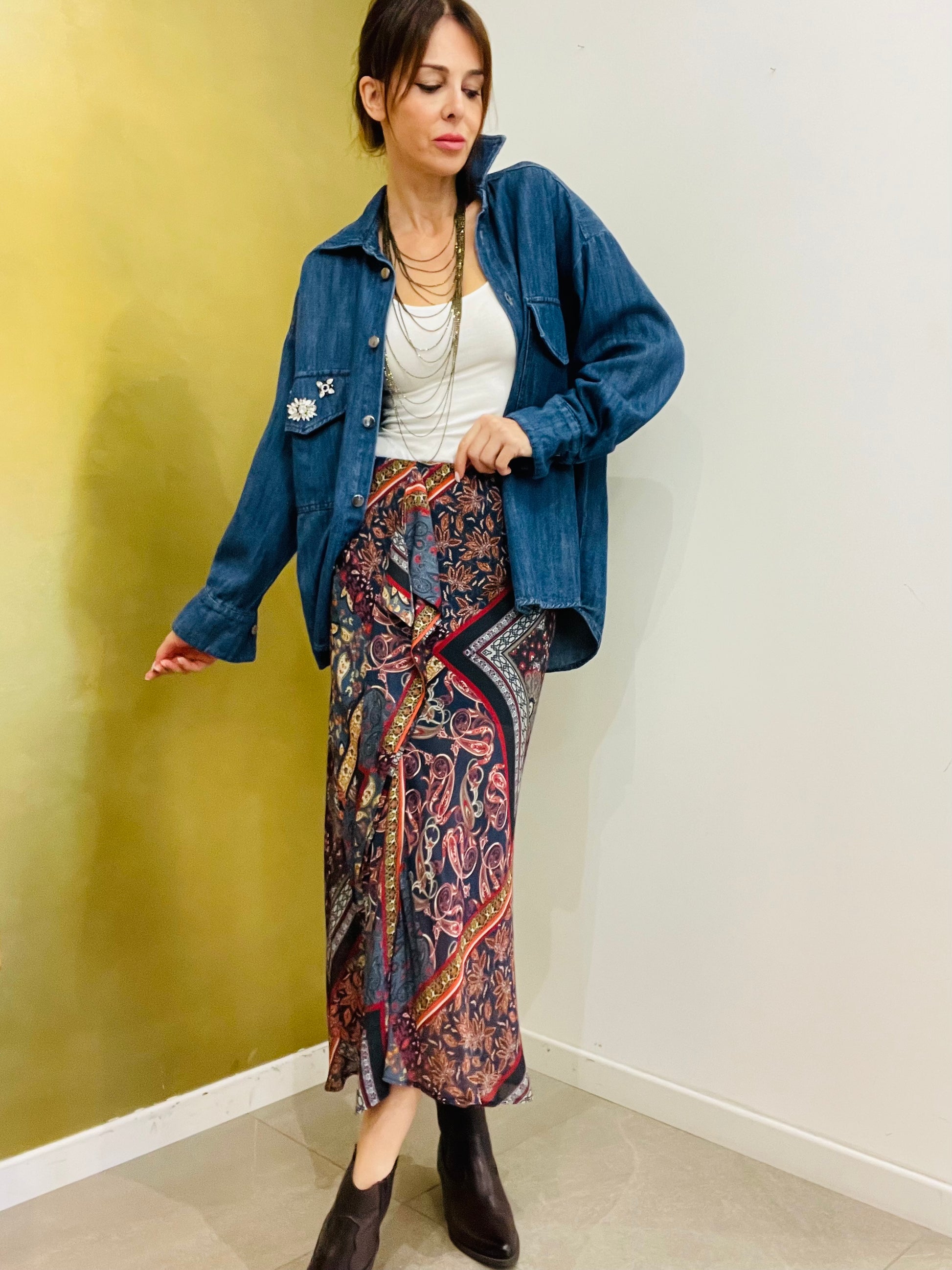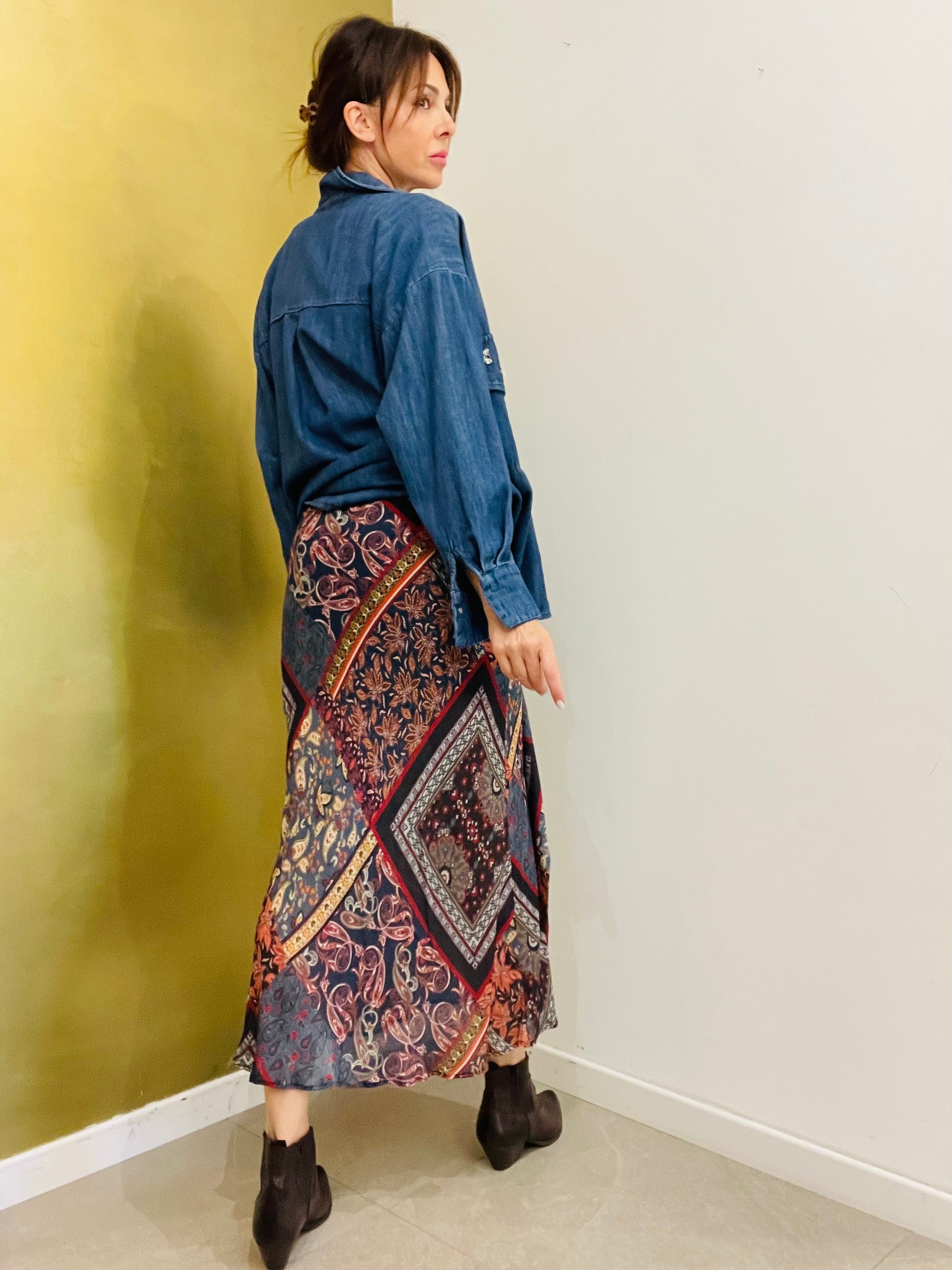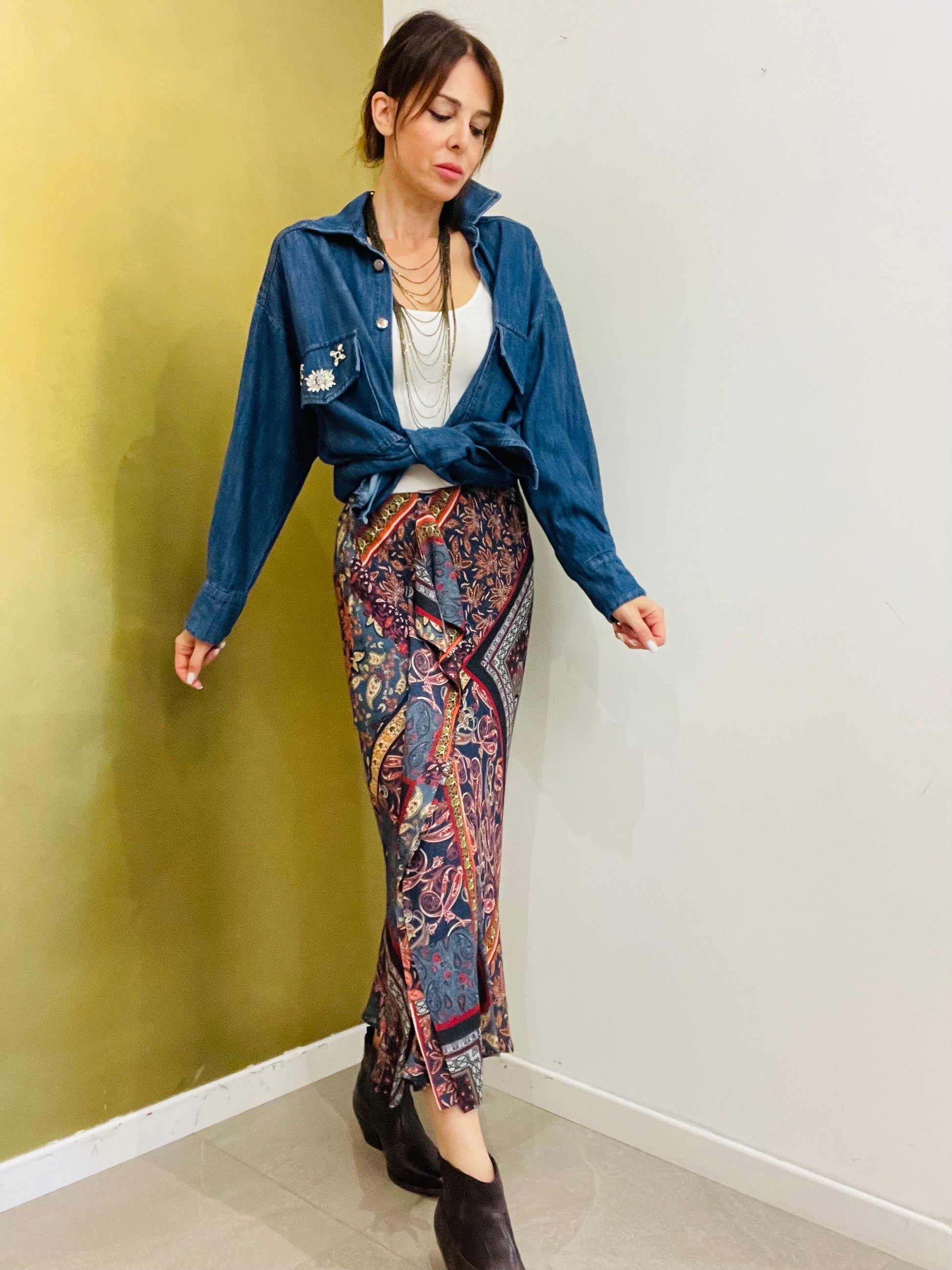 Gonna lunga in fantasia cachemire , con dettaglio di gale laterale, Elastico in vita, Con Fodera