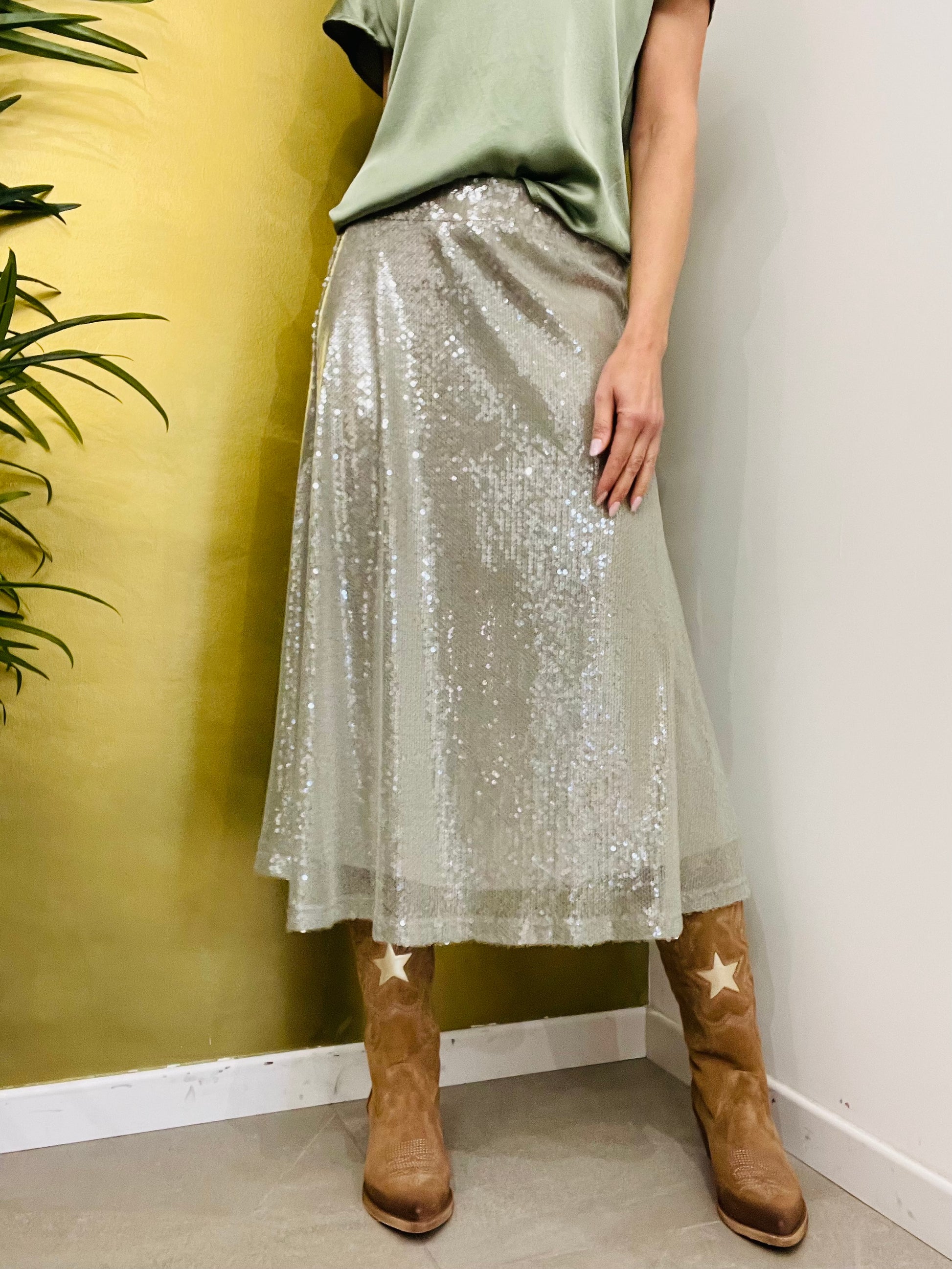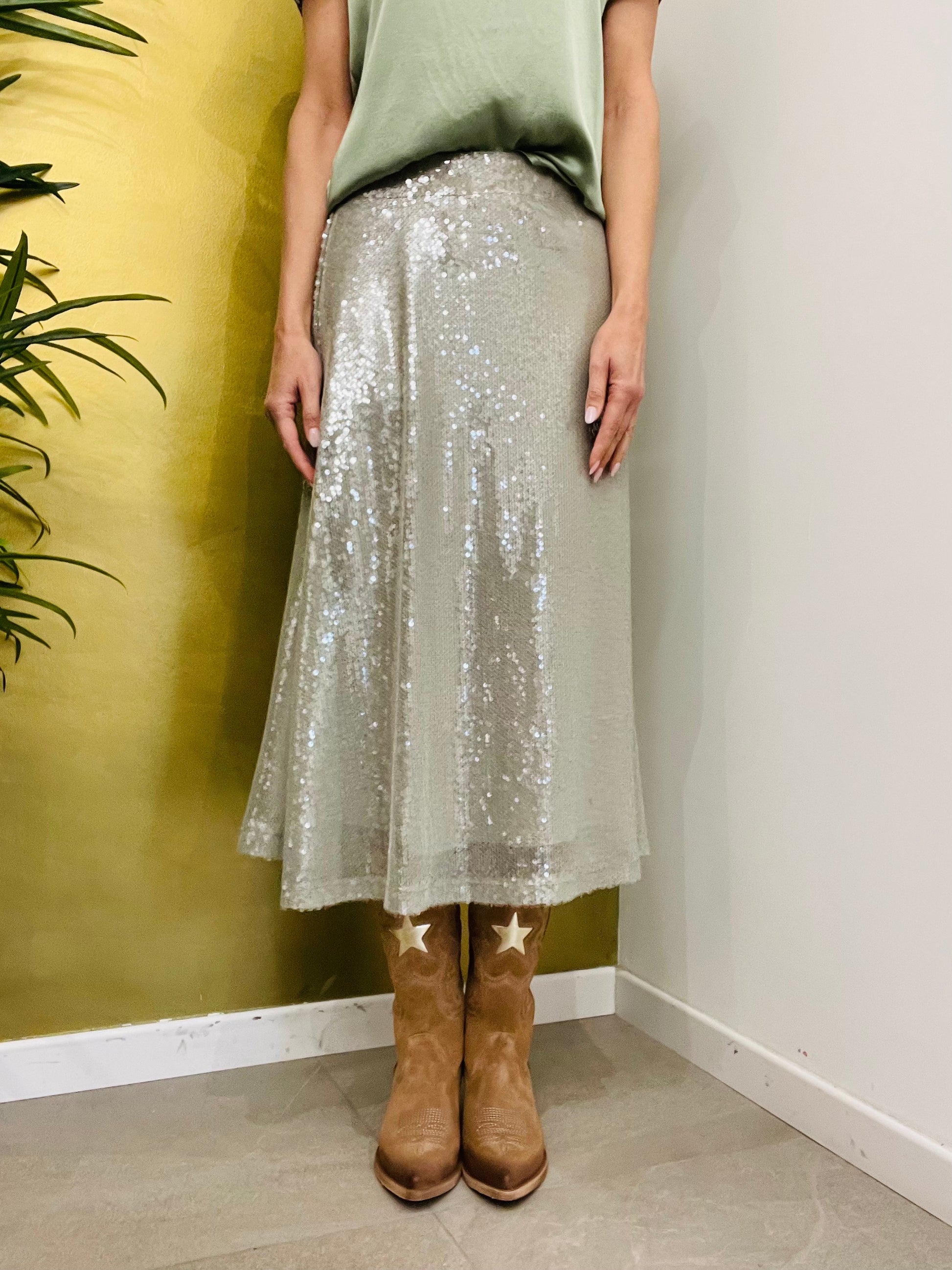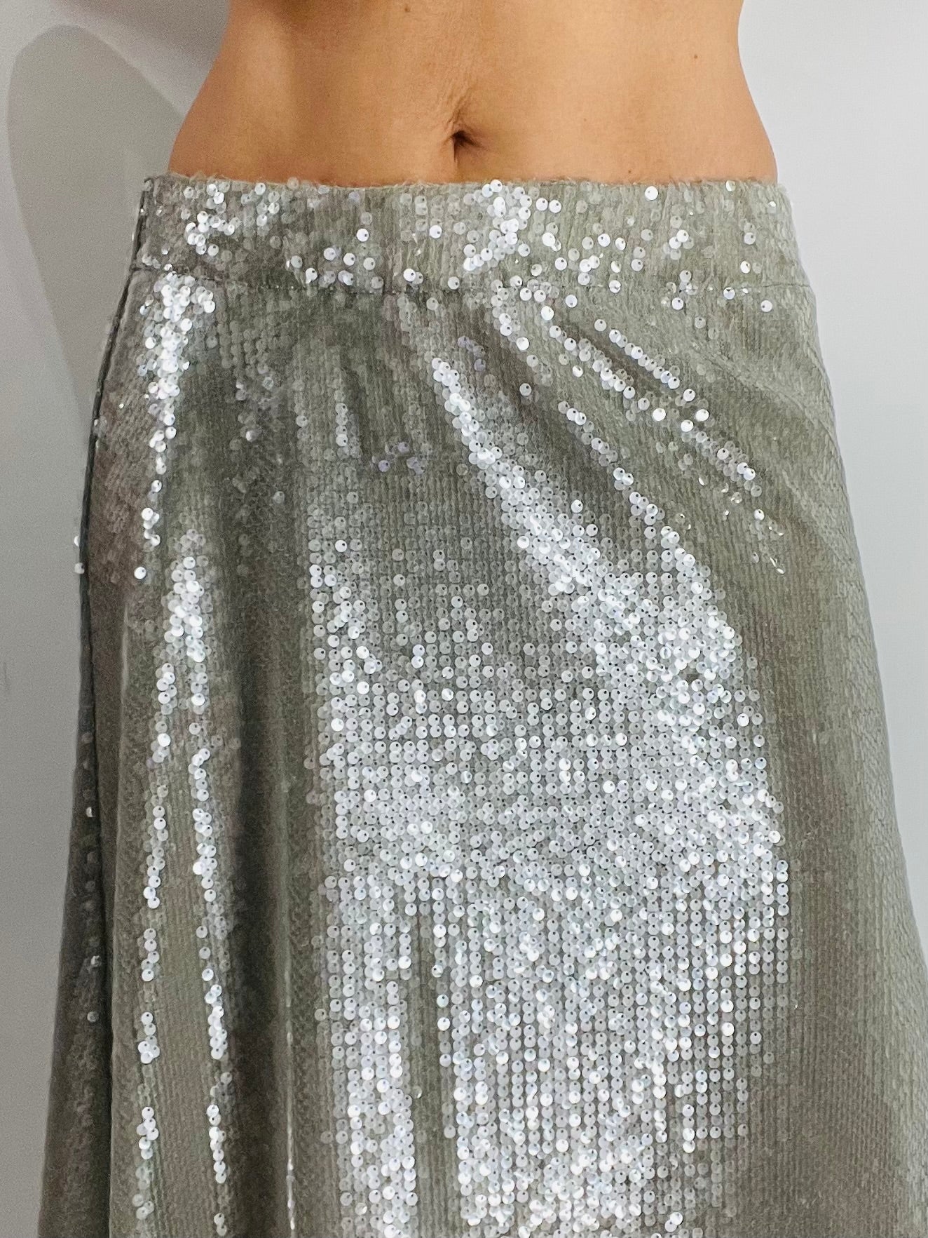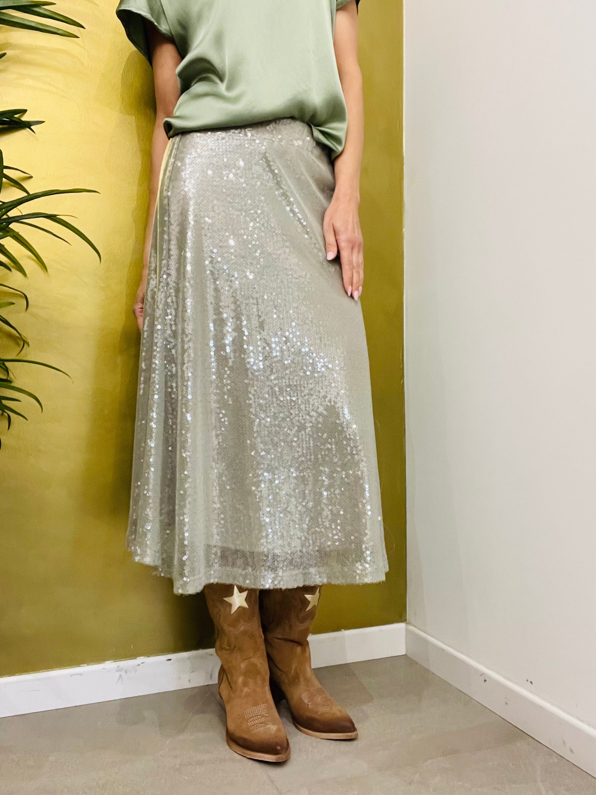 Gonna longuette dalla linea svasata interamente ricoperta di pailettes