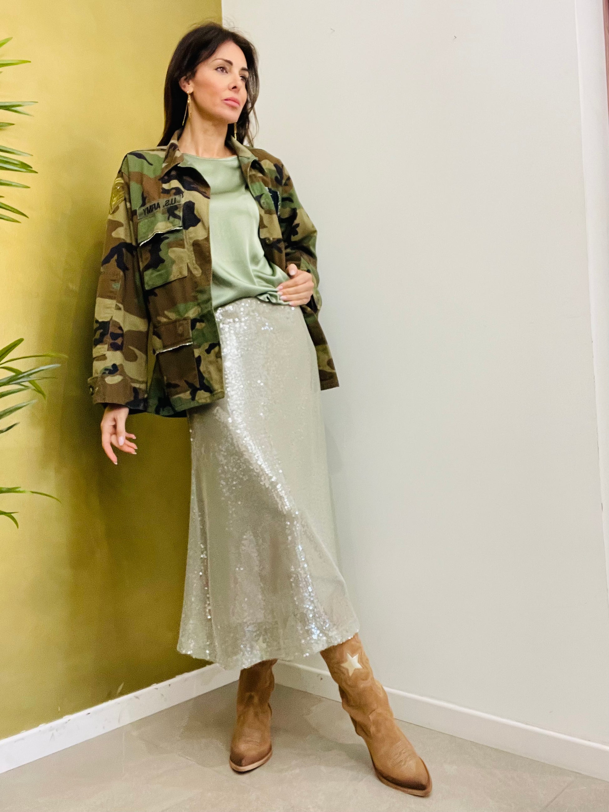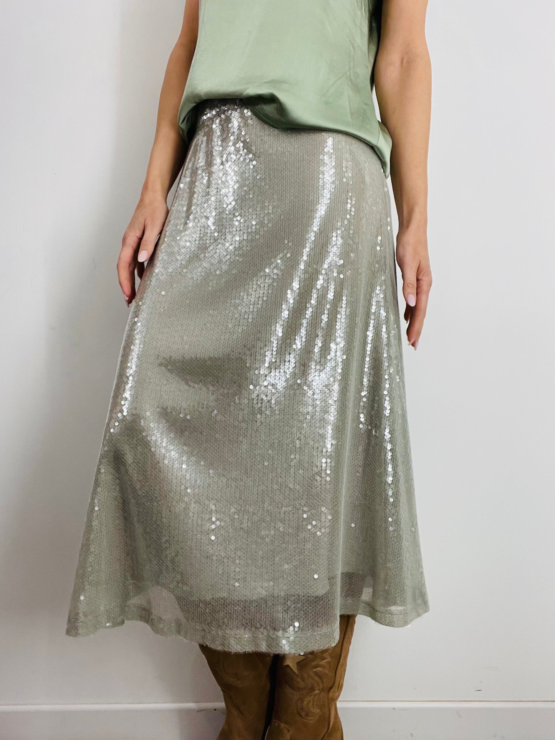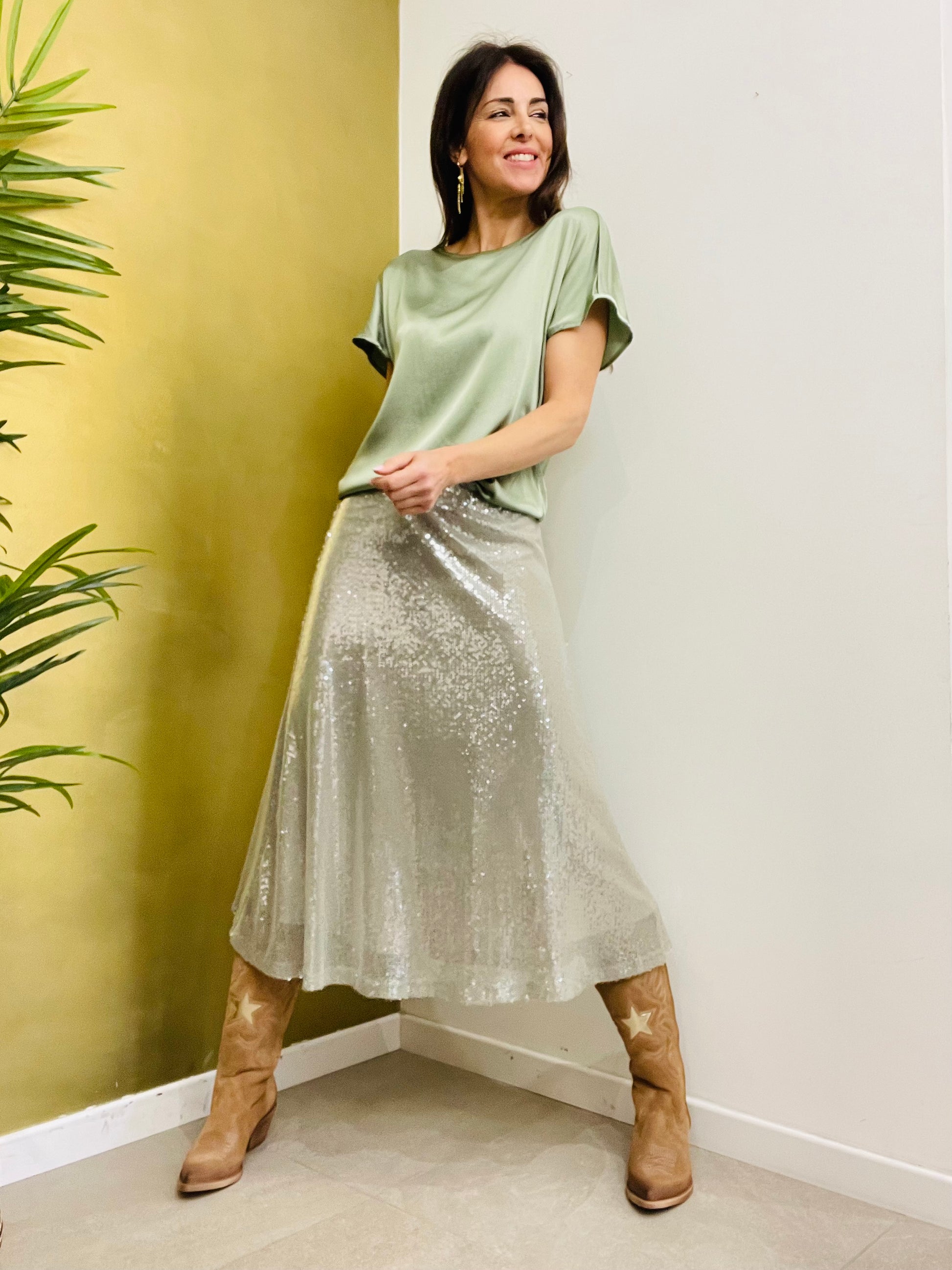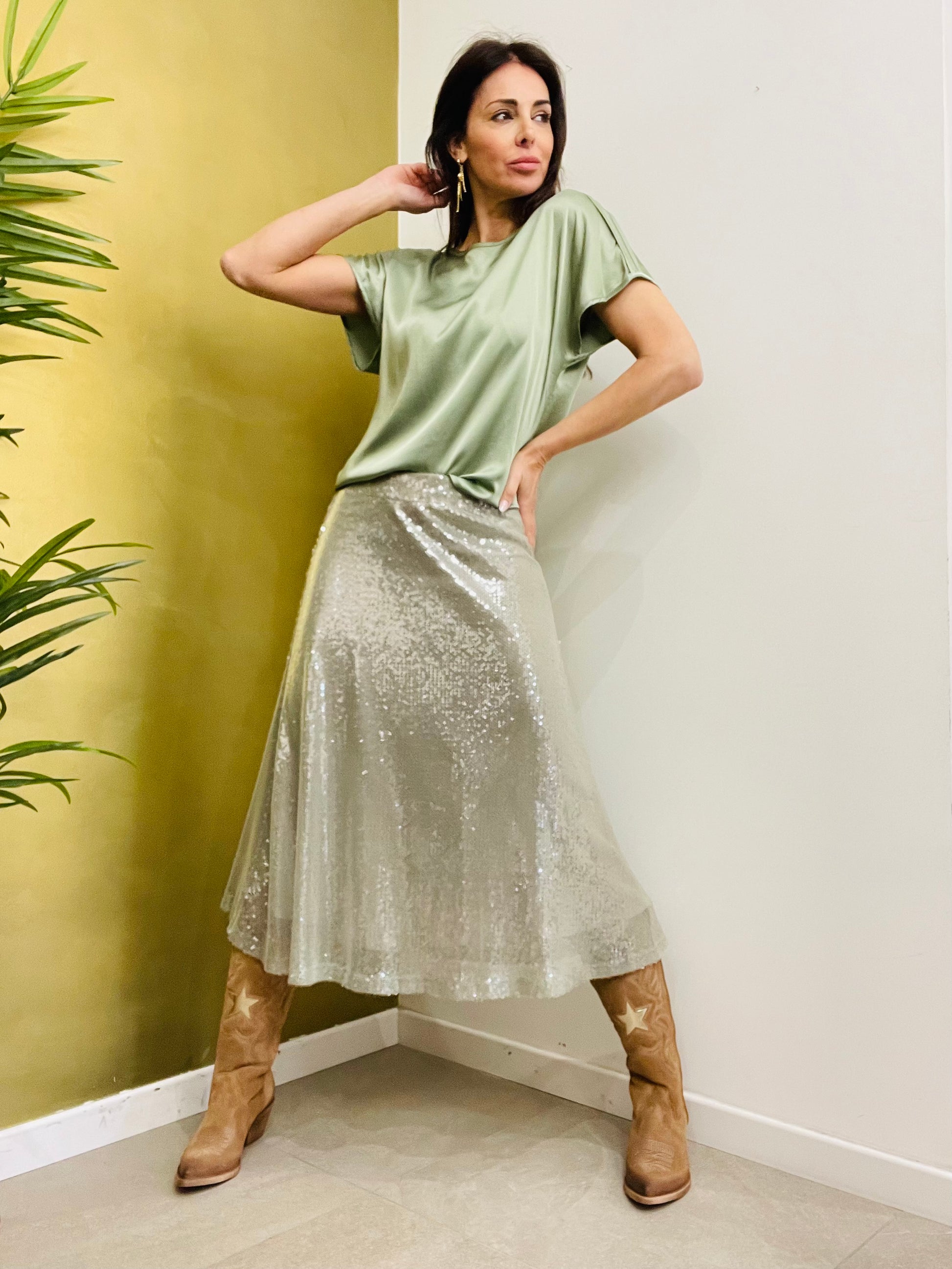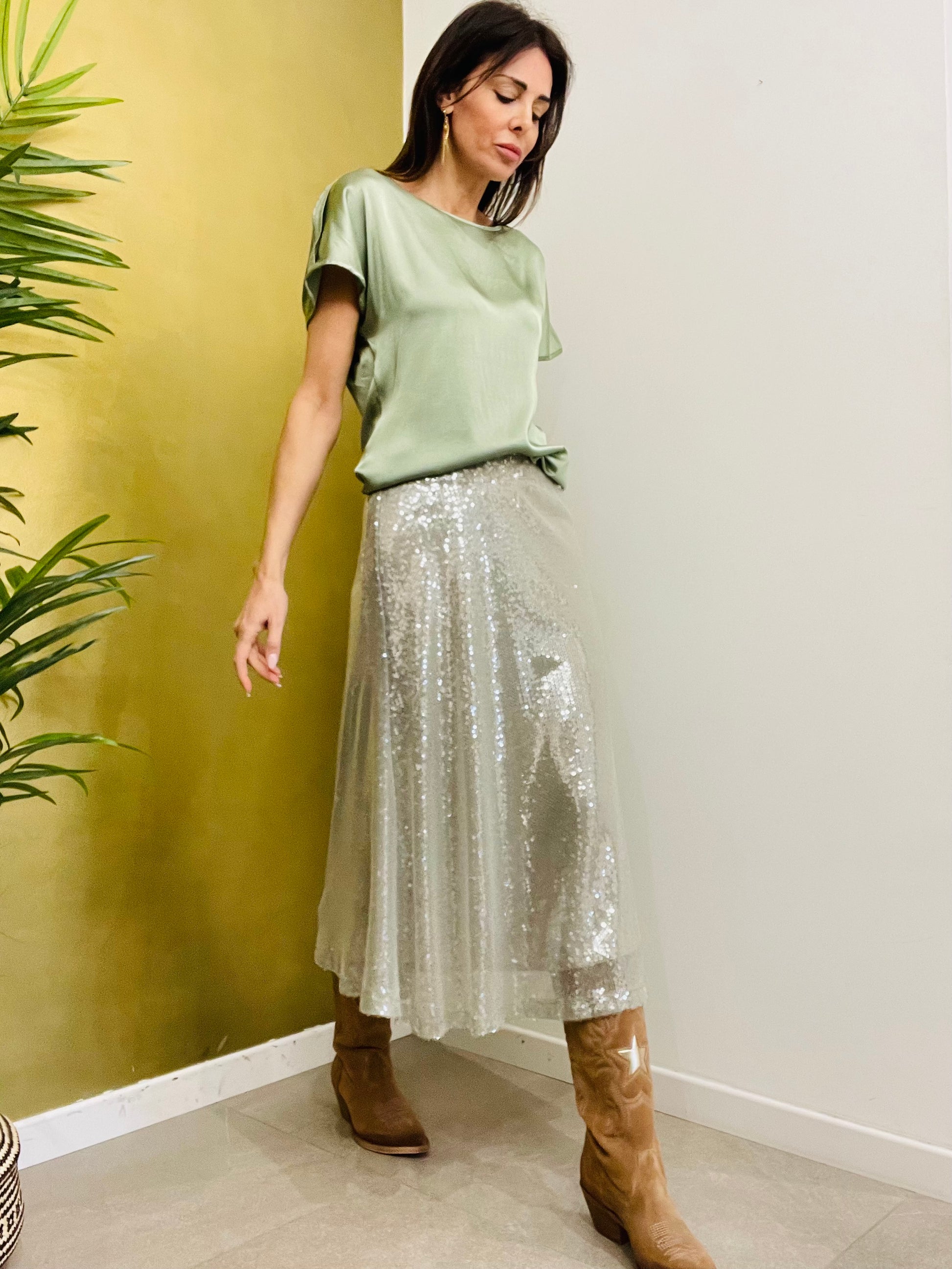 Gonna longuette dalla linea svasata interamente ricoperta di pailettes