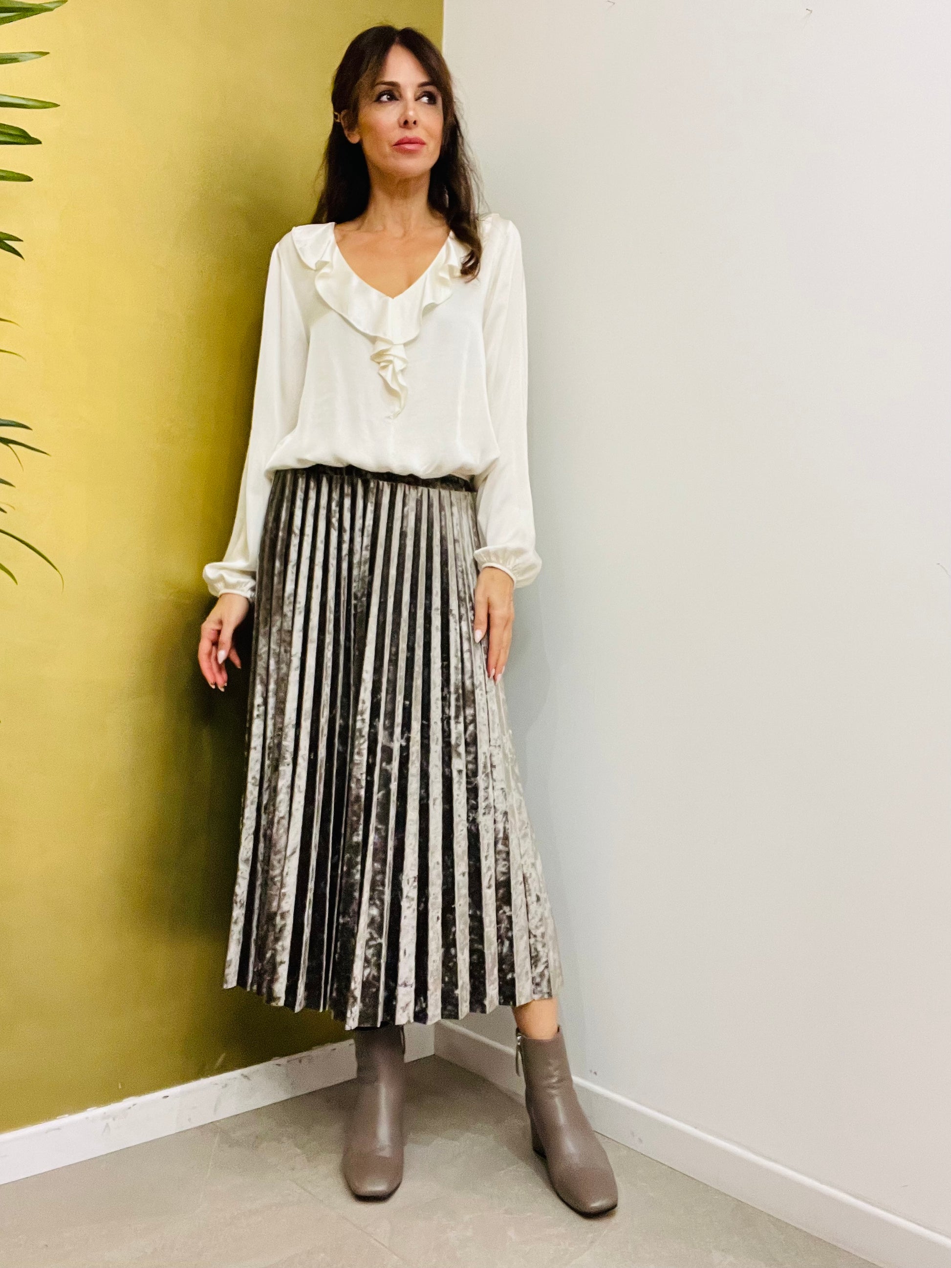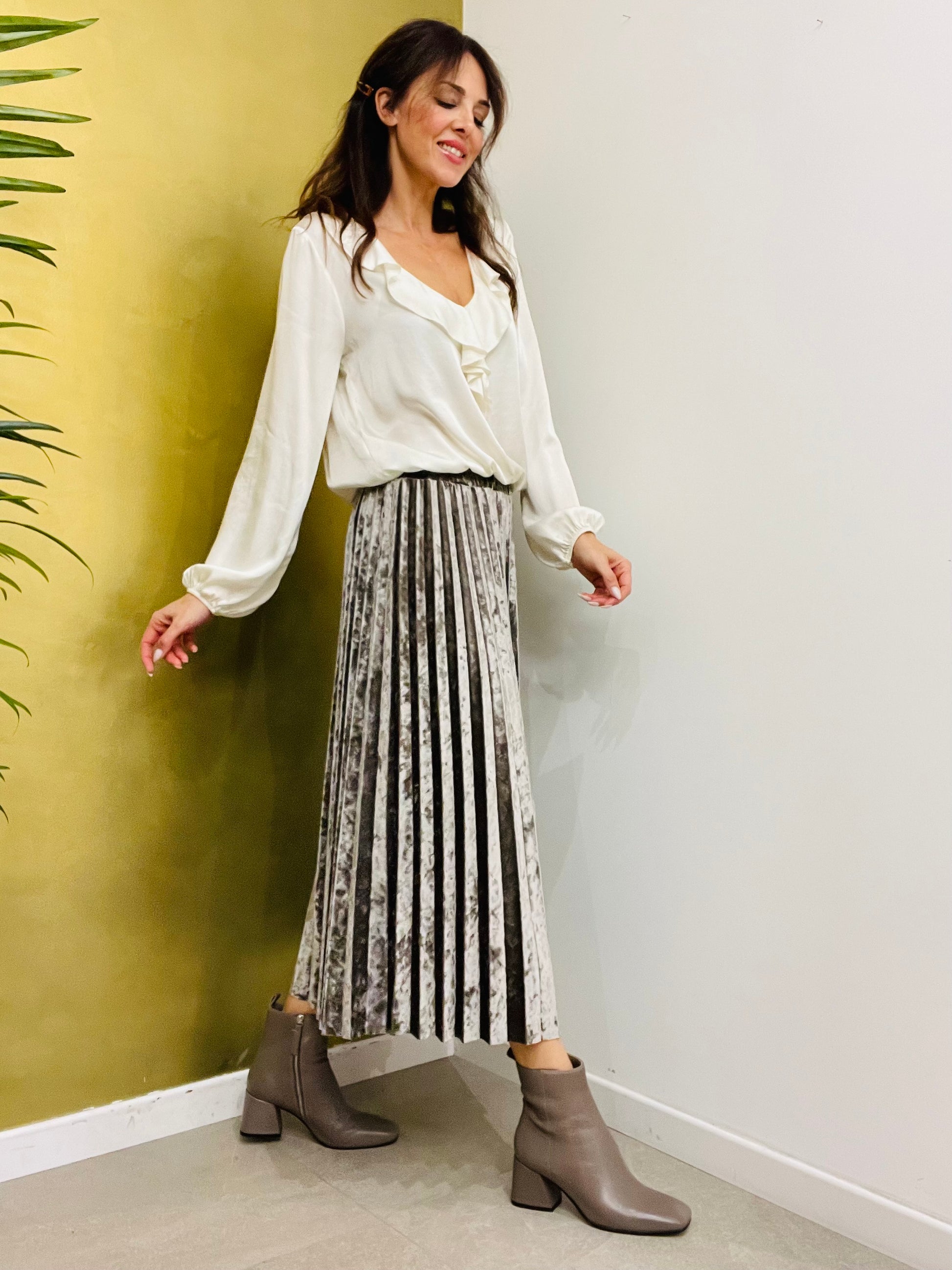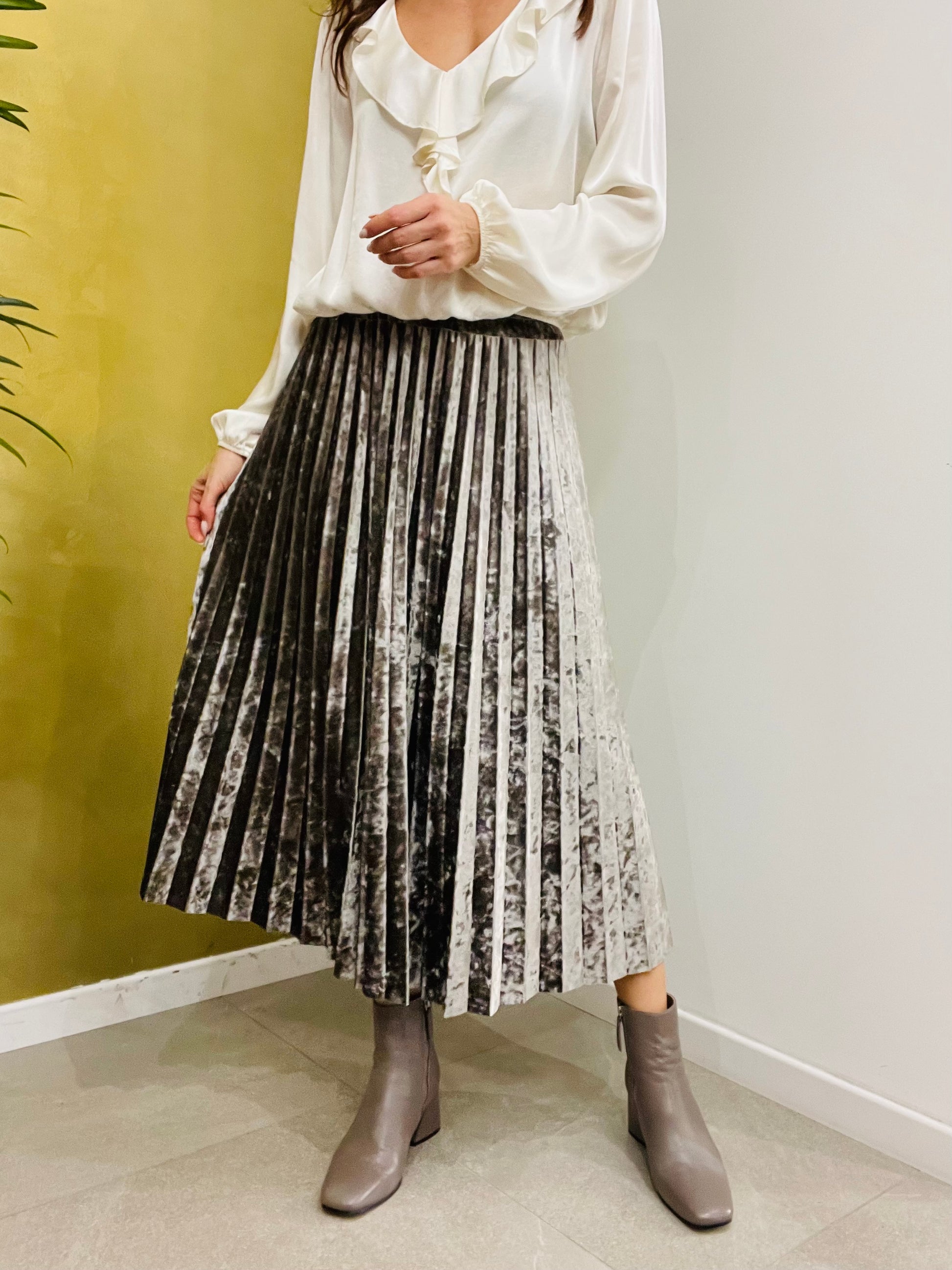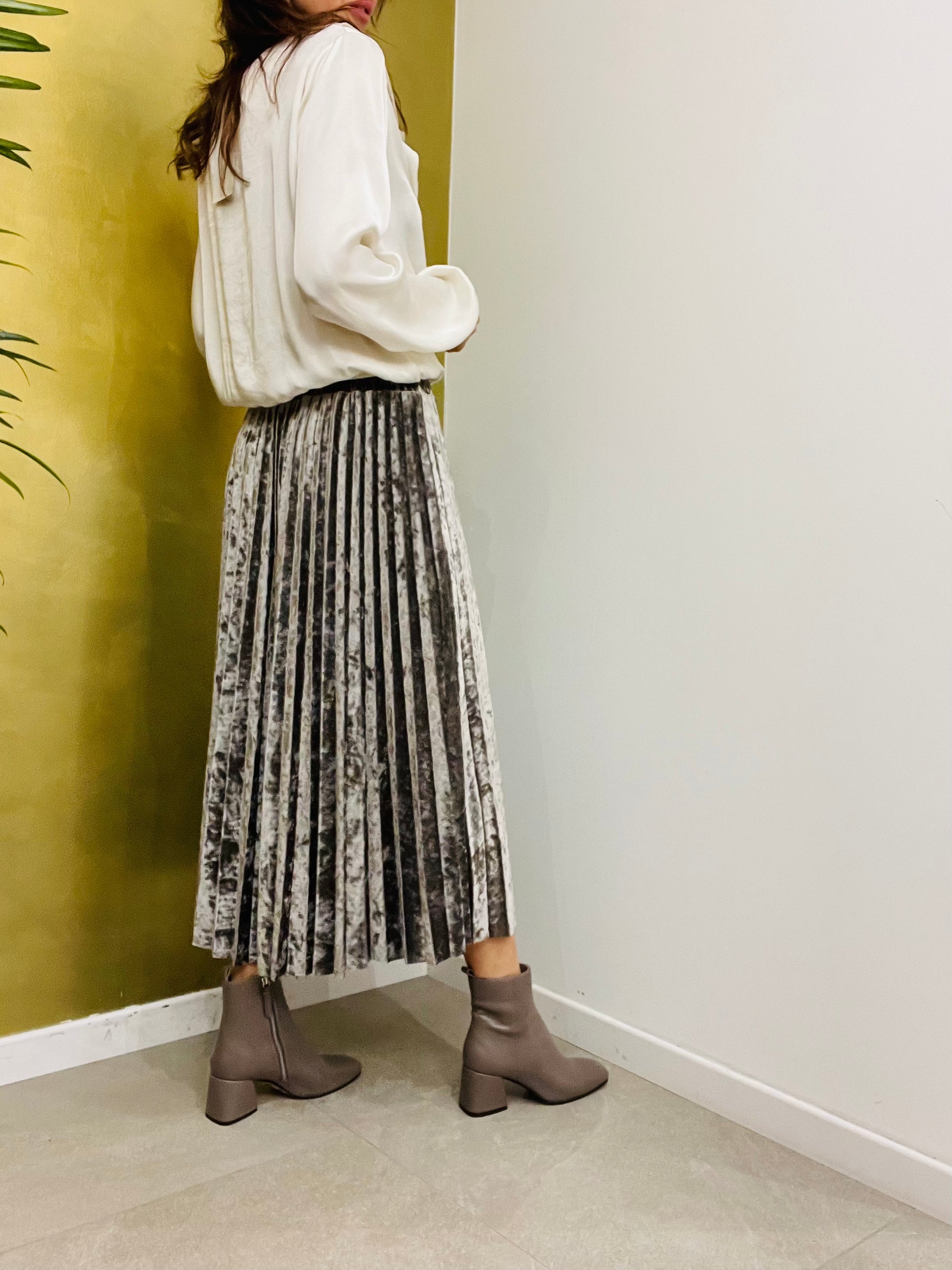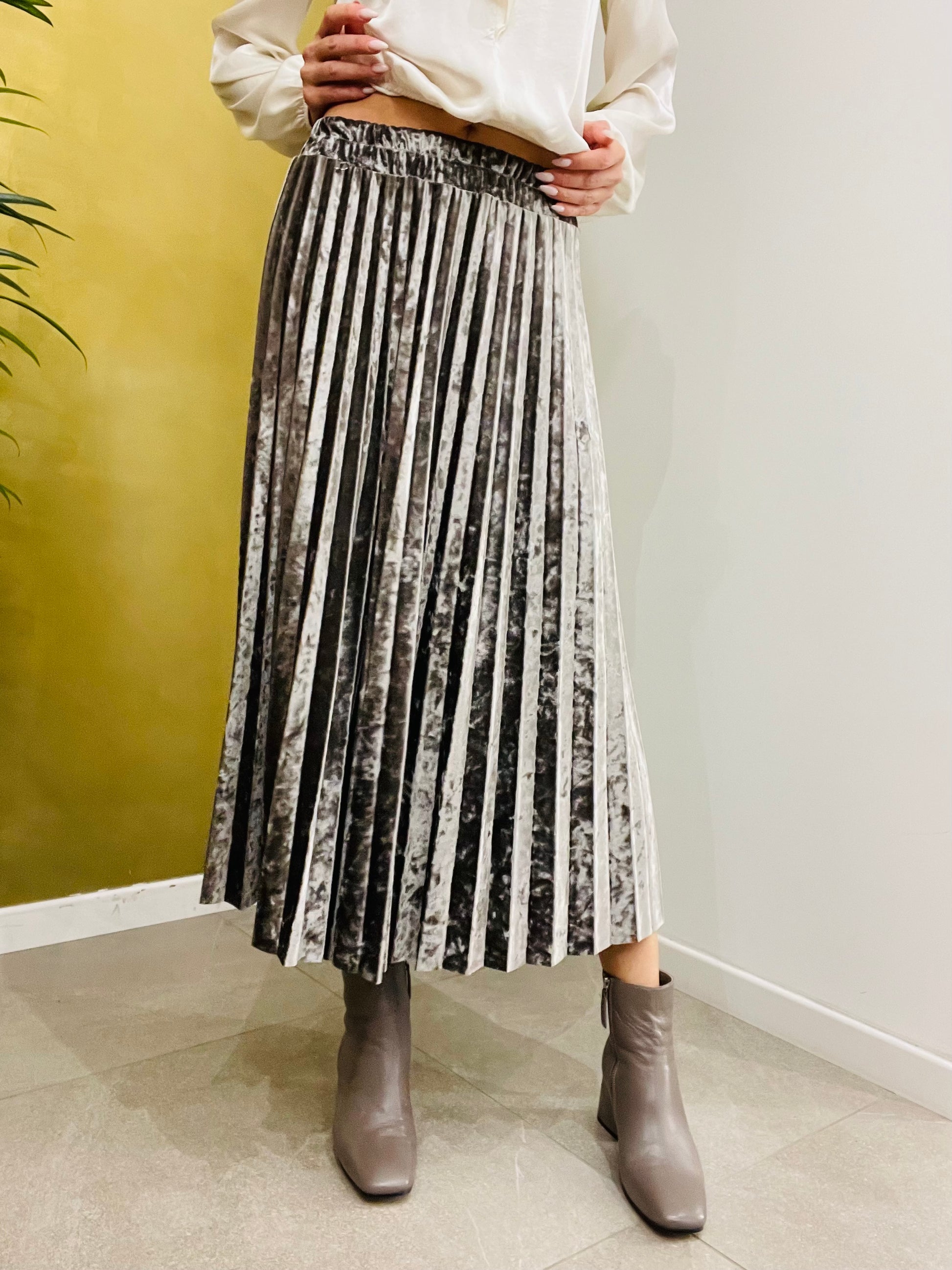 Gonna in ciniglia plissettata, dalla linea svasata