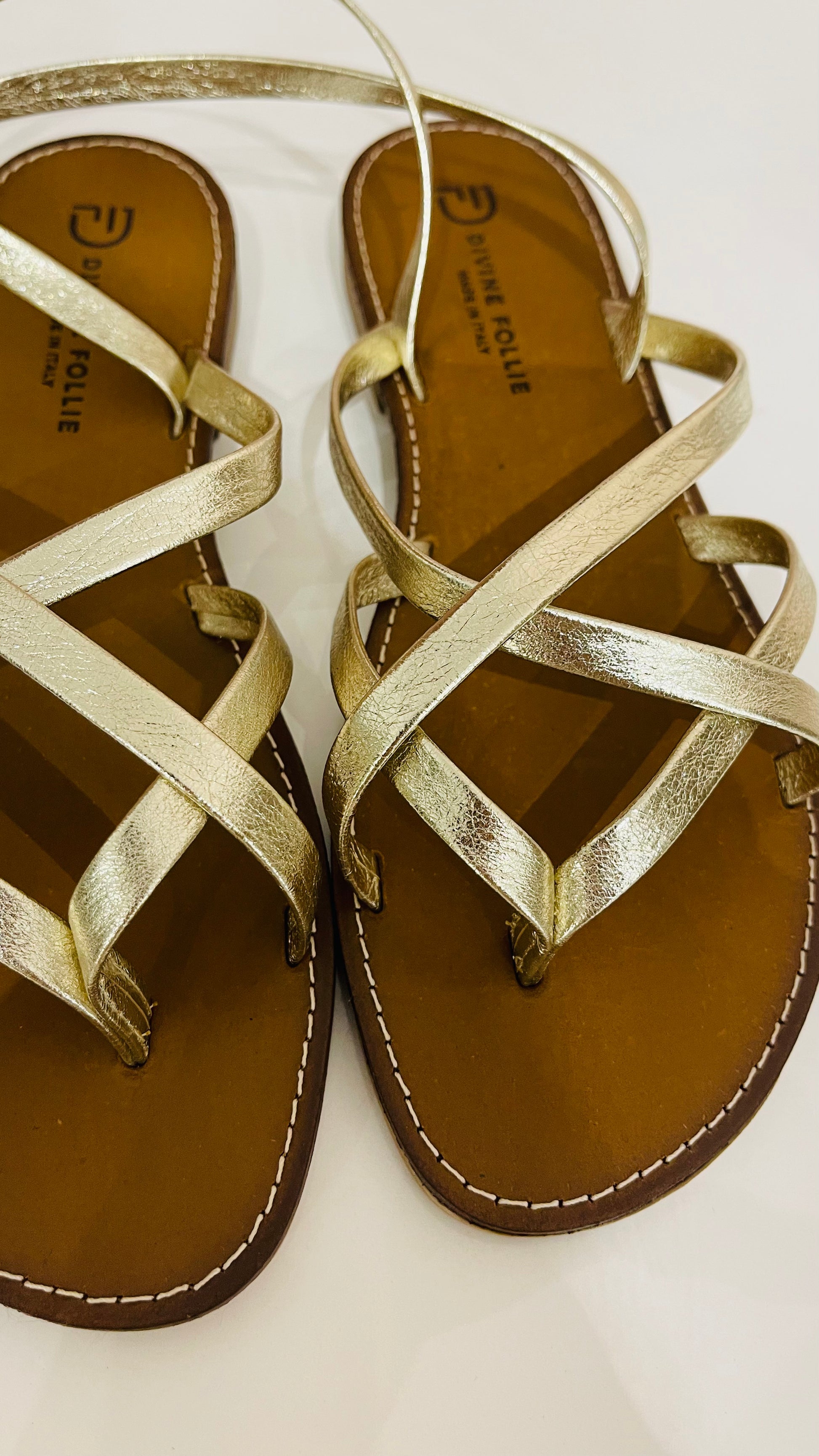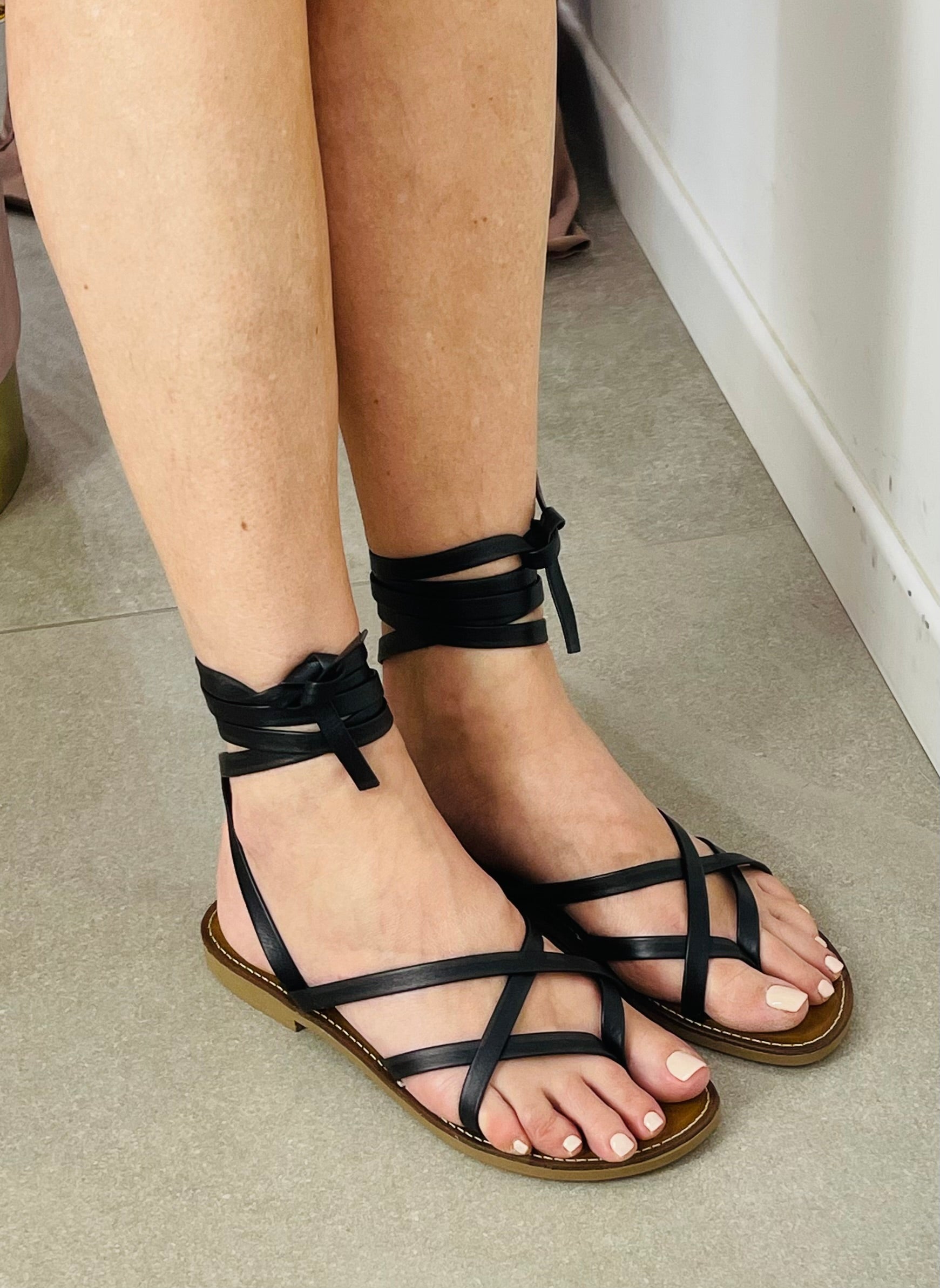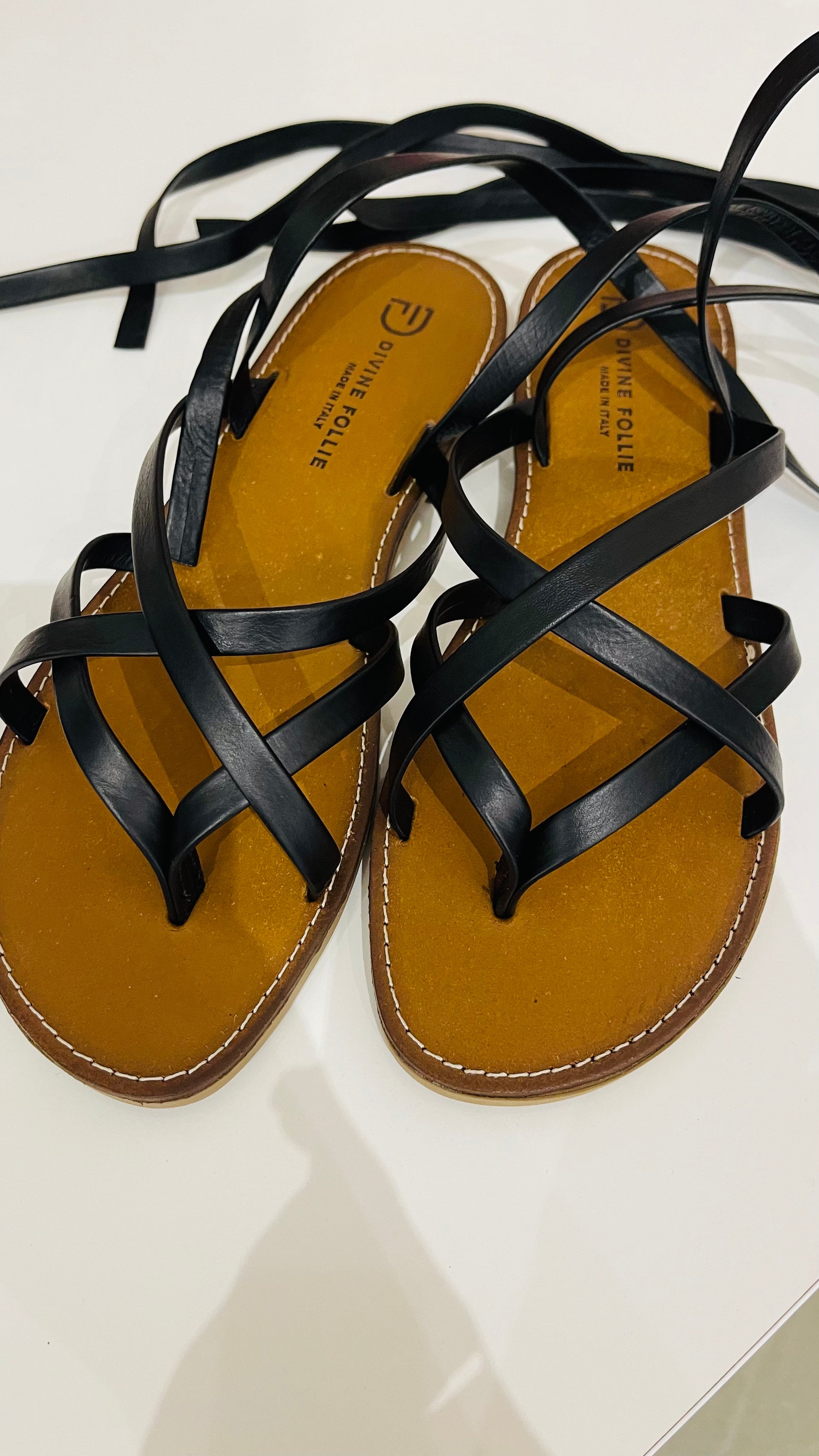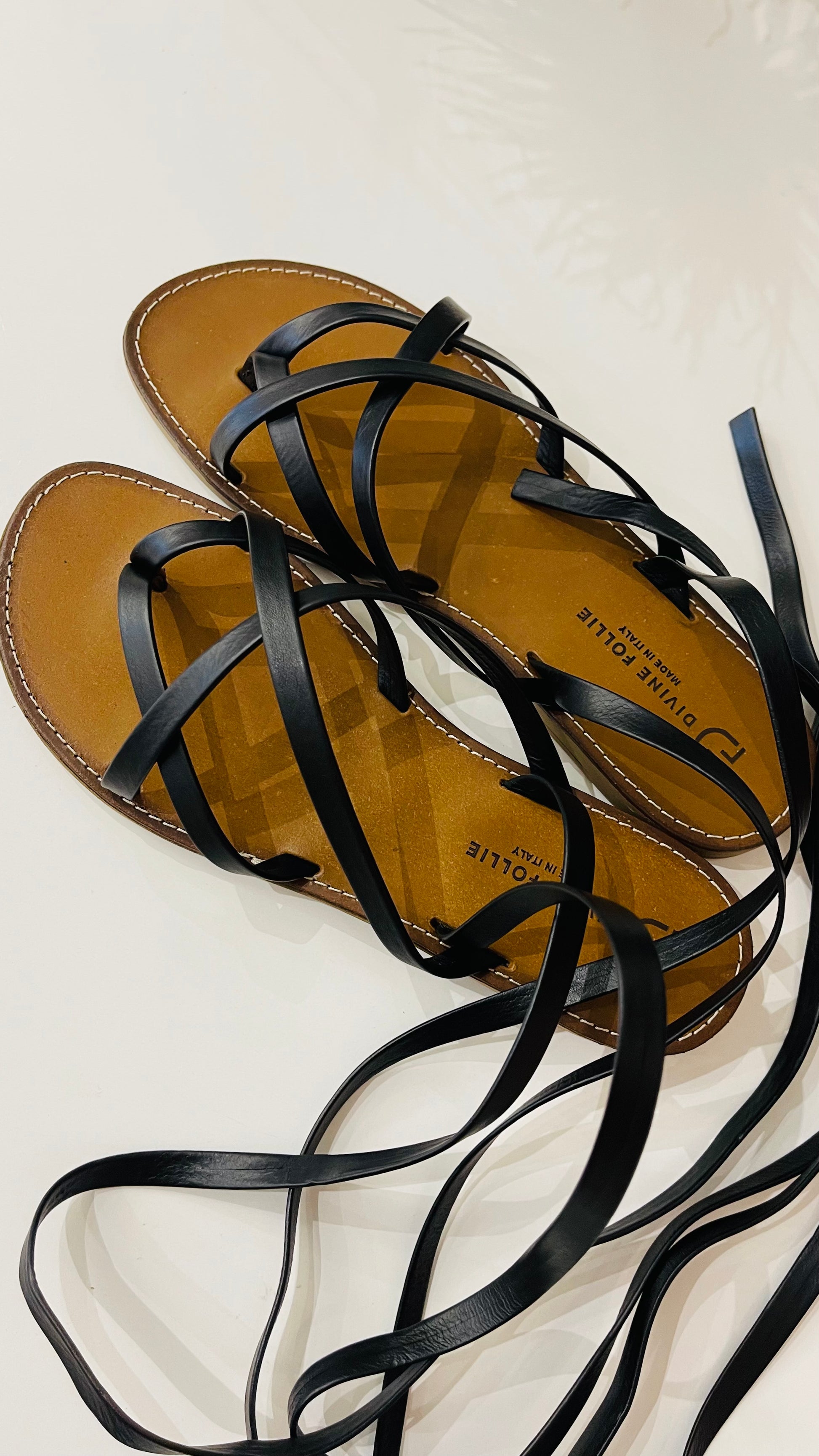 Infradito con incroci nella parte davanti e con lacci alla schiava in nappa