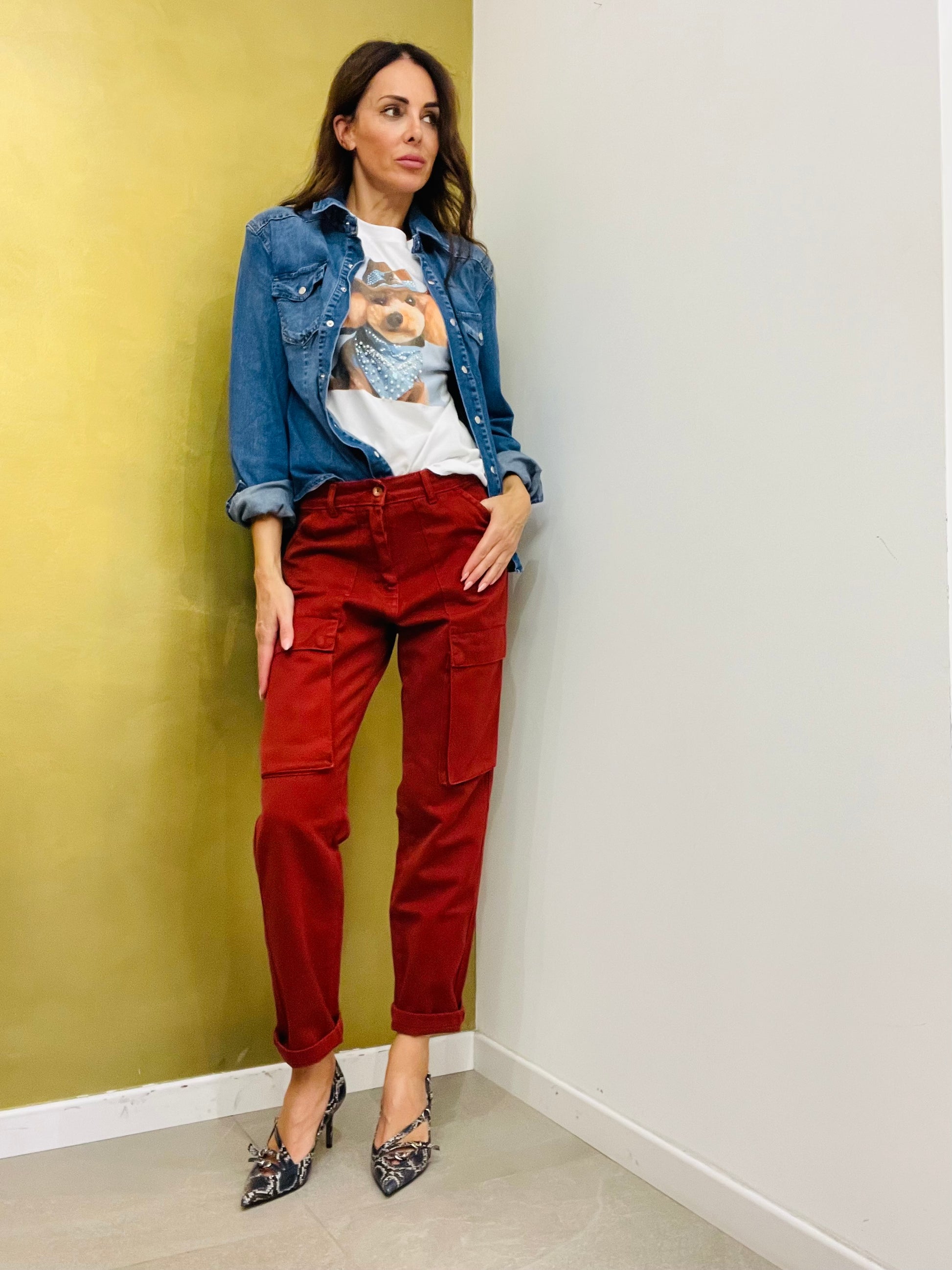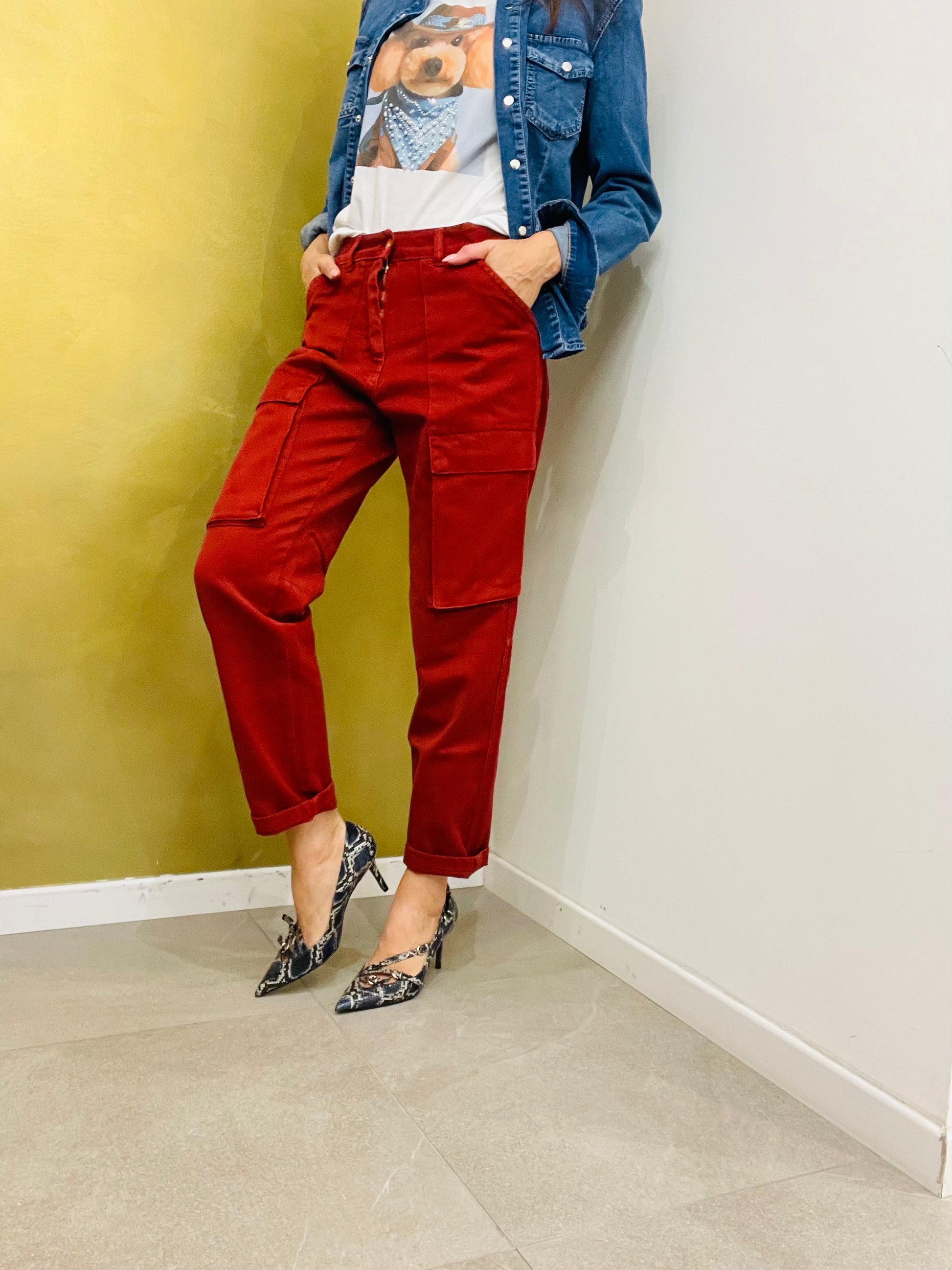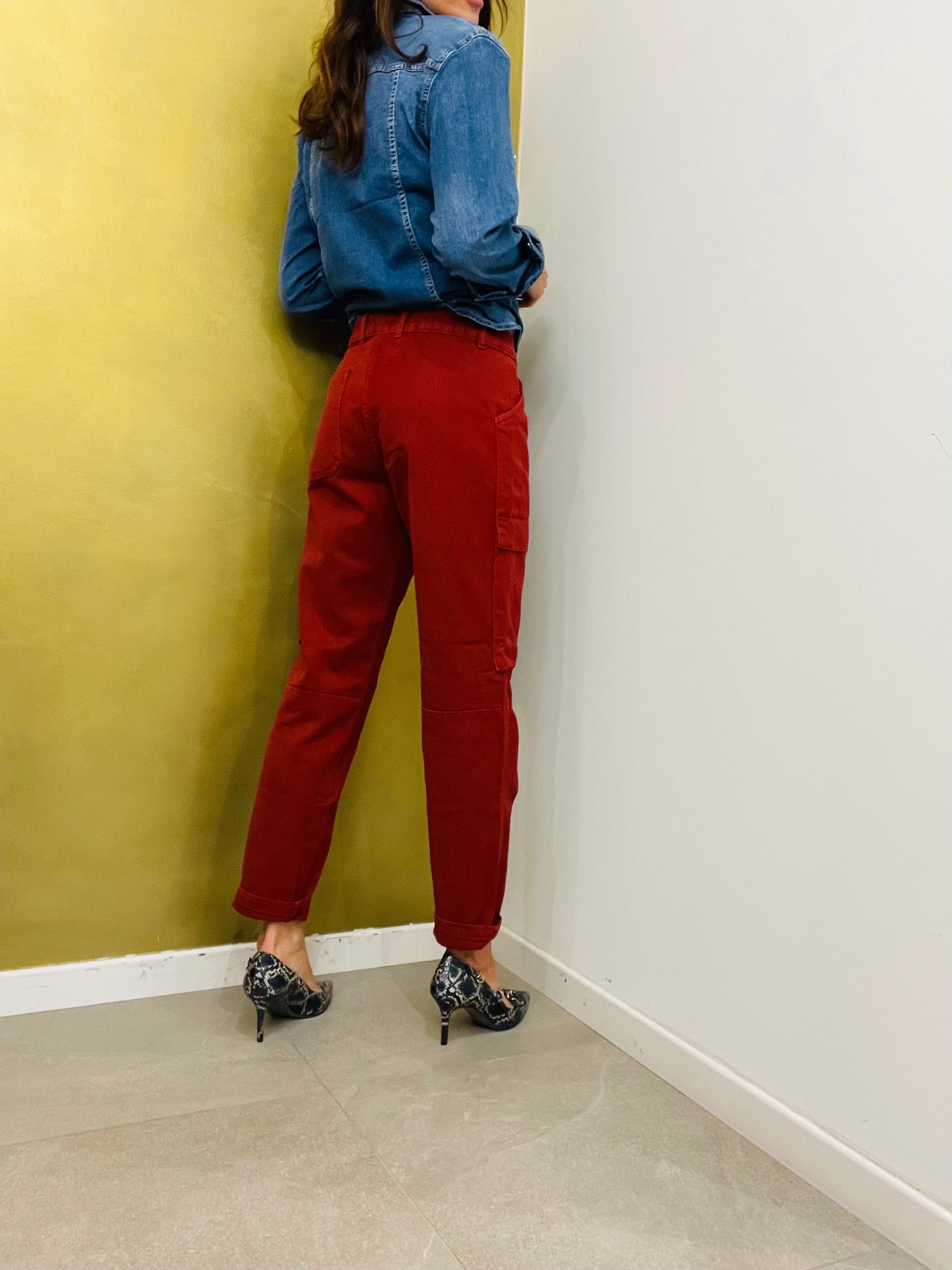 Jeans modello cargo con tasche laterali e tasconi applicati a metà gamba