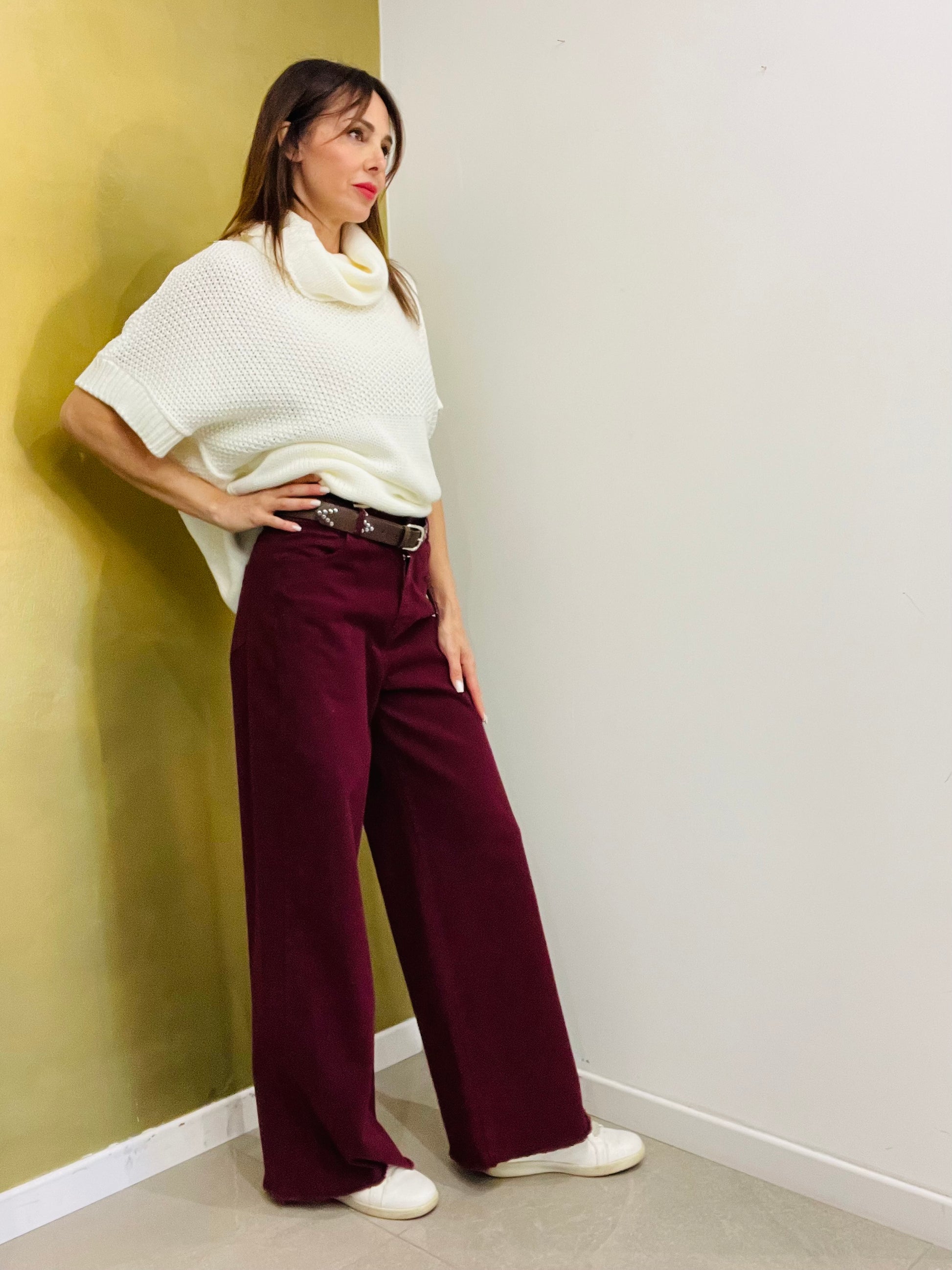 Maglia oversize con mezze maniche in filato morbido lavorato a punto riso , Mentre il collo e il fondo manica sono lavorati in maglia rasata, Bordi in costina.