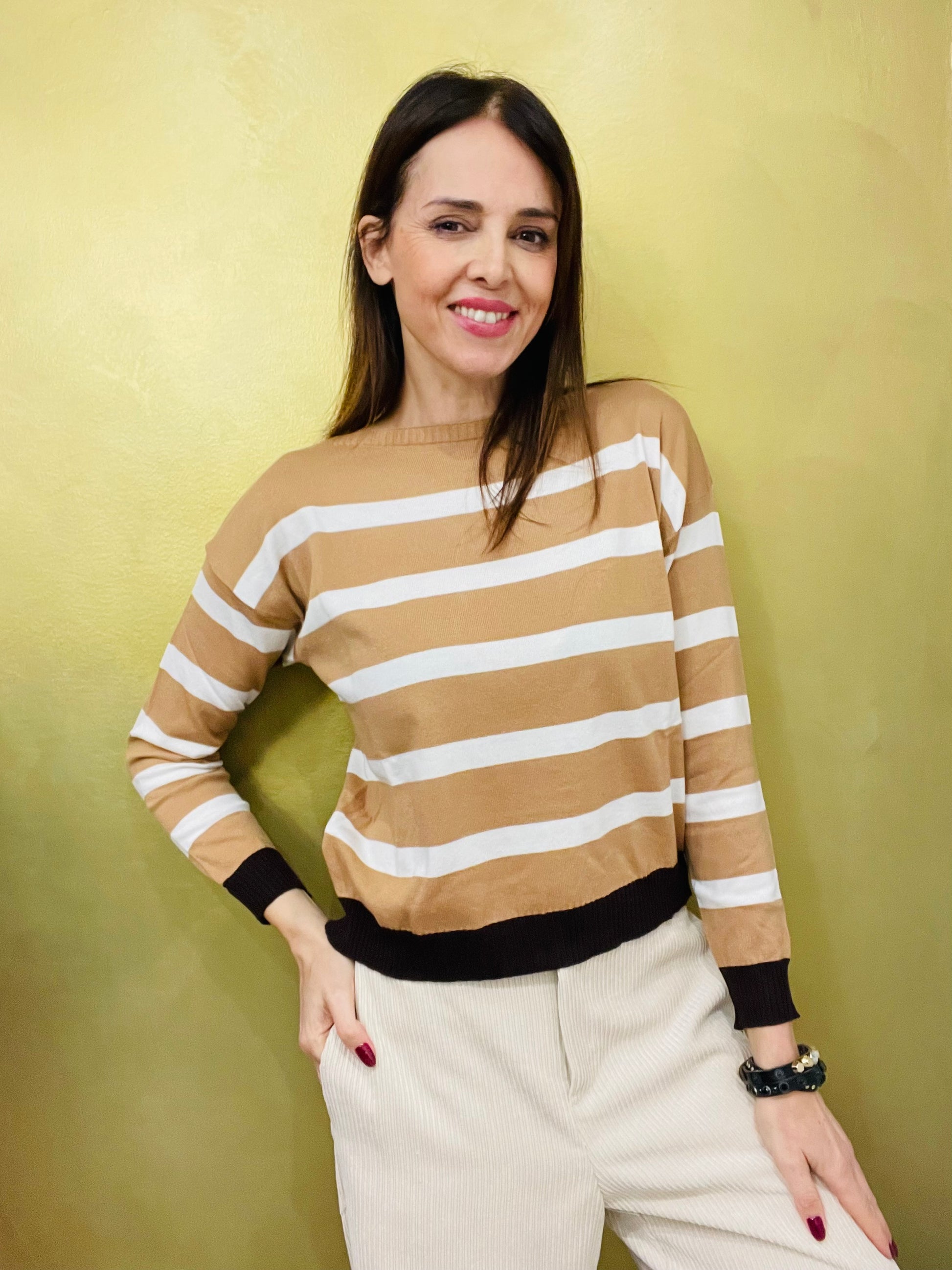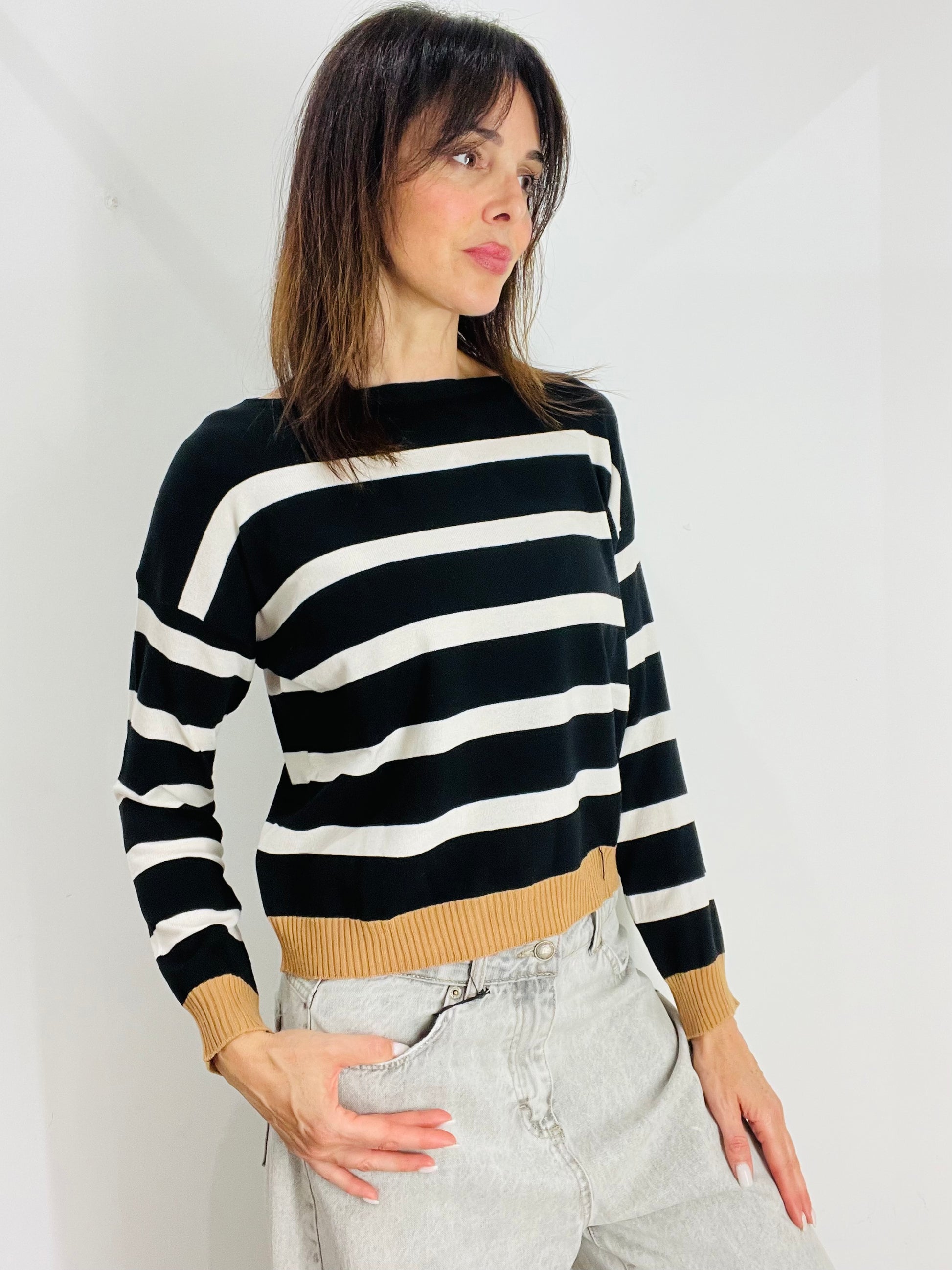 Maglia Dalla vestibilità regolare con scollo leggermente a barchetta, costine nel girocollo nel fondo manica e nel fondo manica