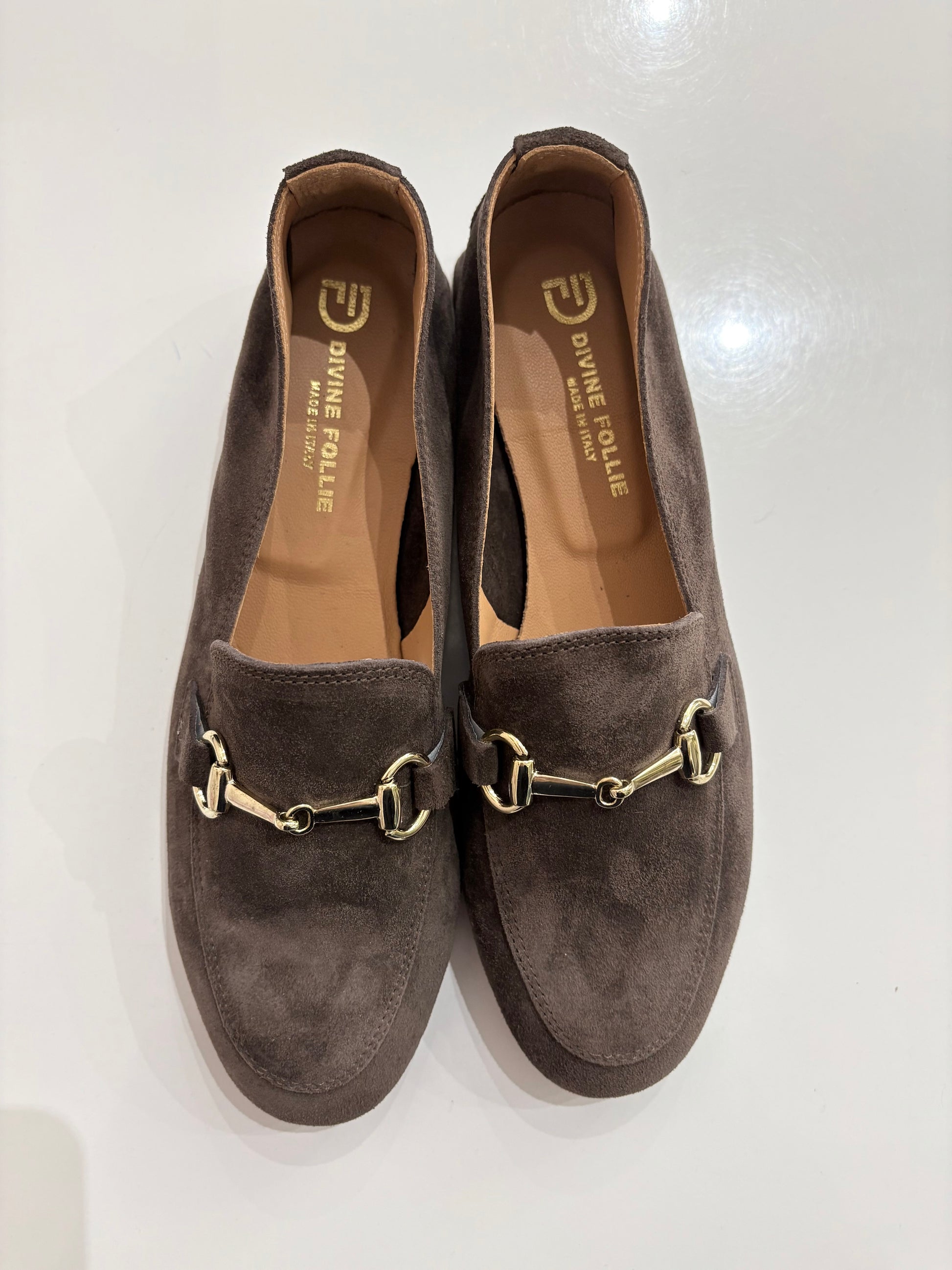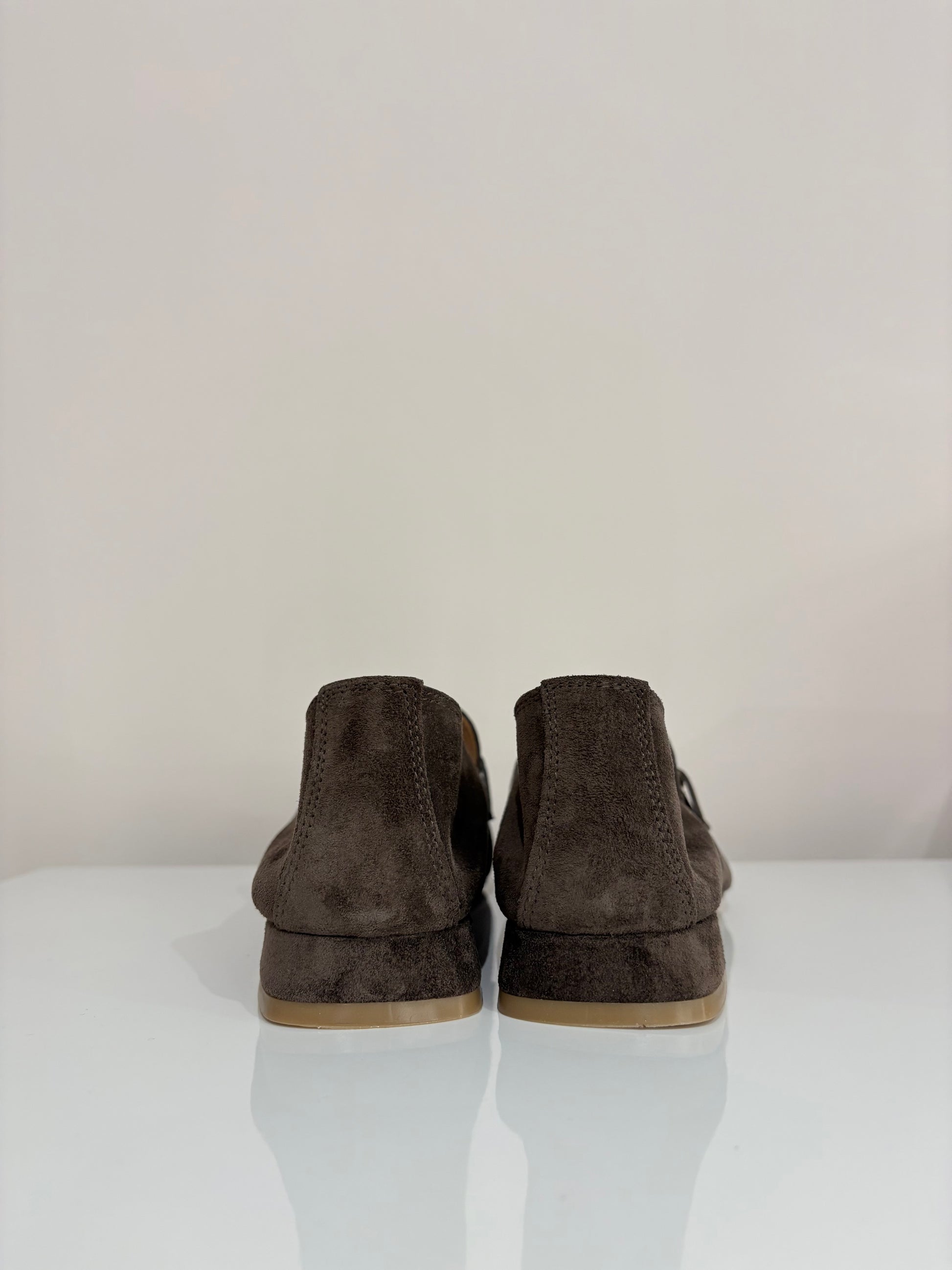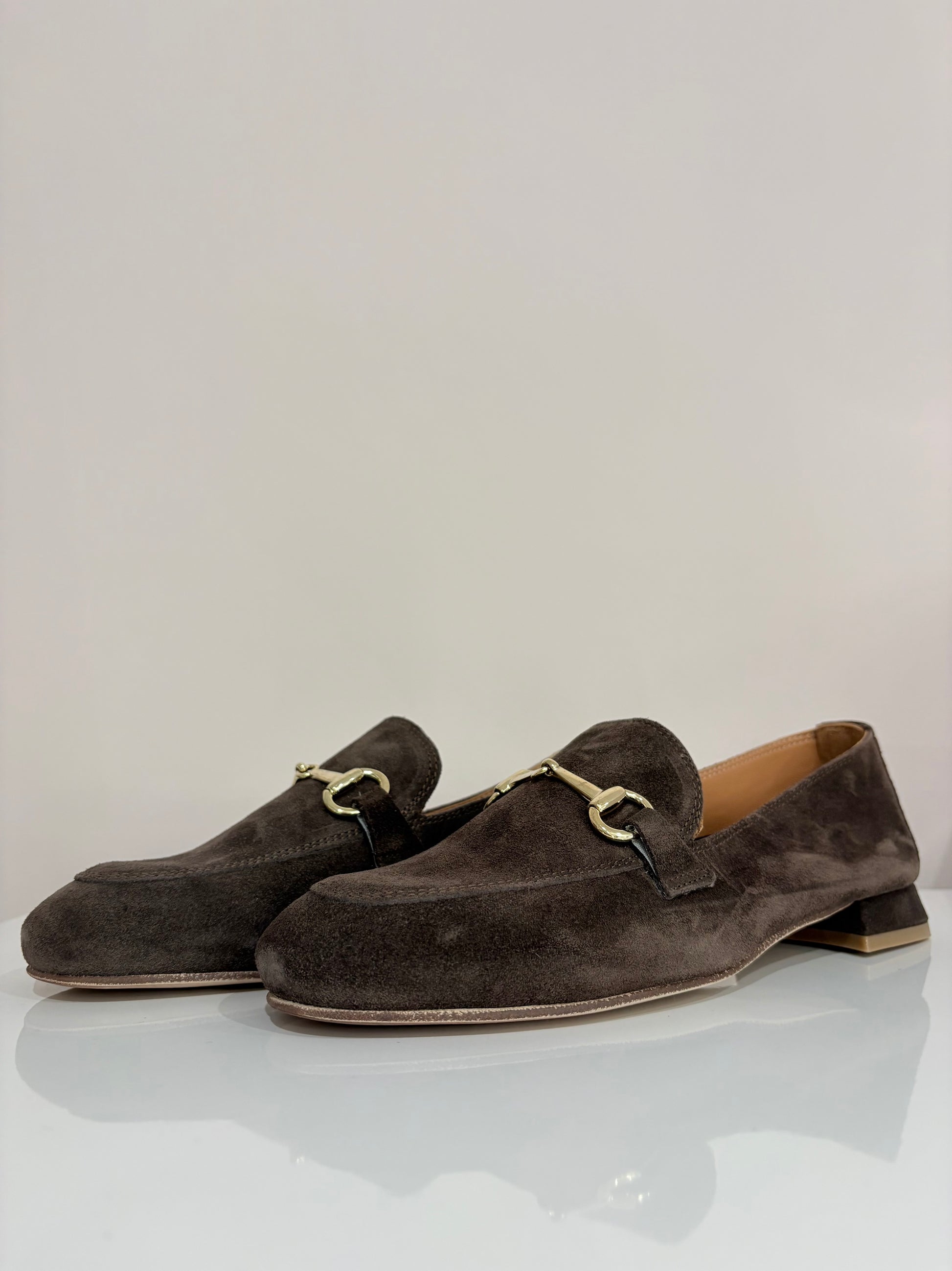 Mocassino scamosciato con dettaglio dorato sul davanti