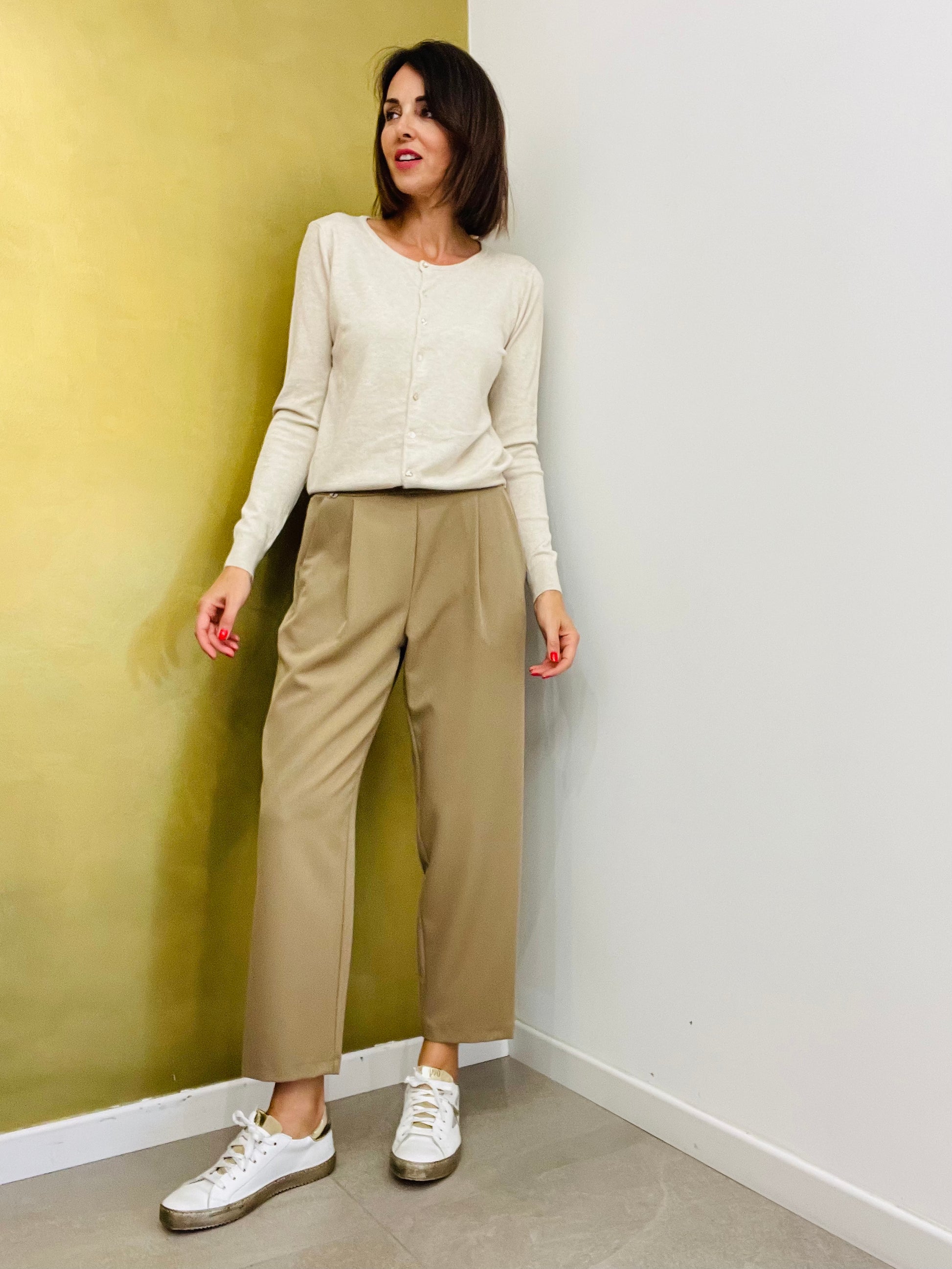 Pantalone dalla linea classica con pinces frontali ed elastico sul retro