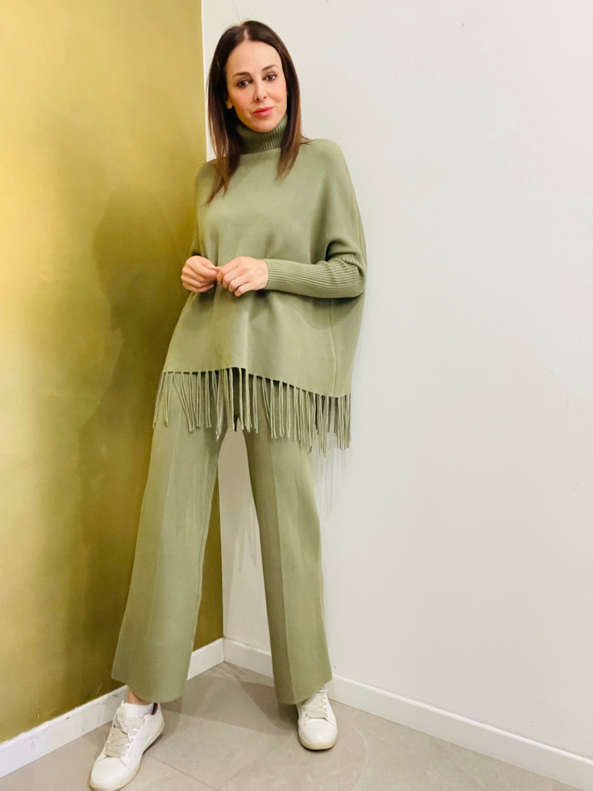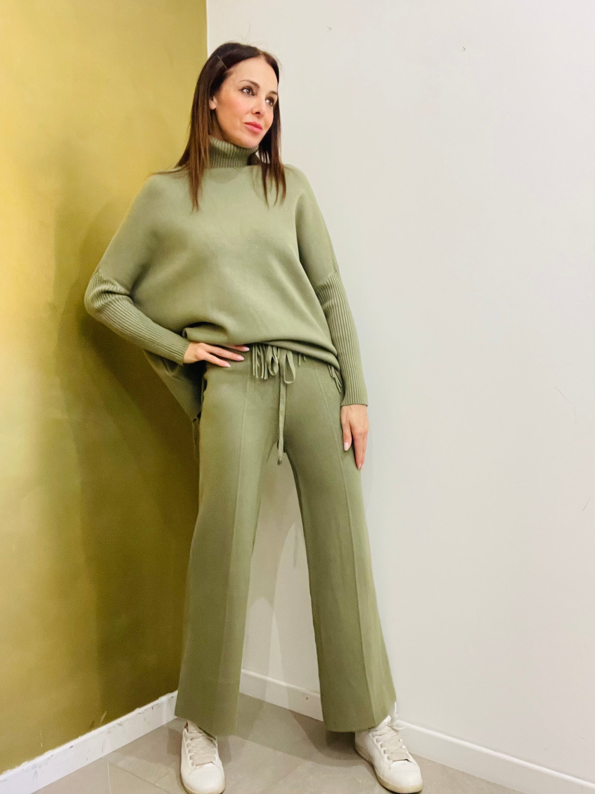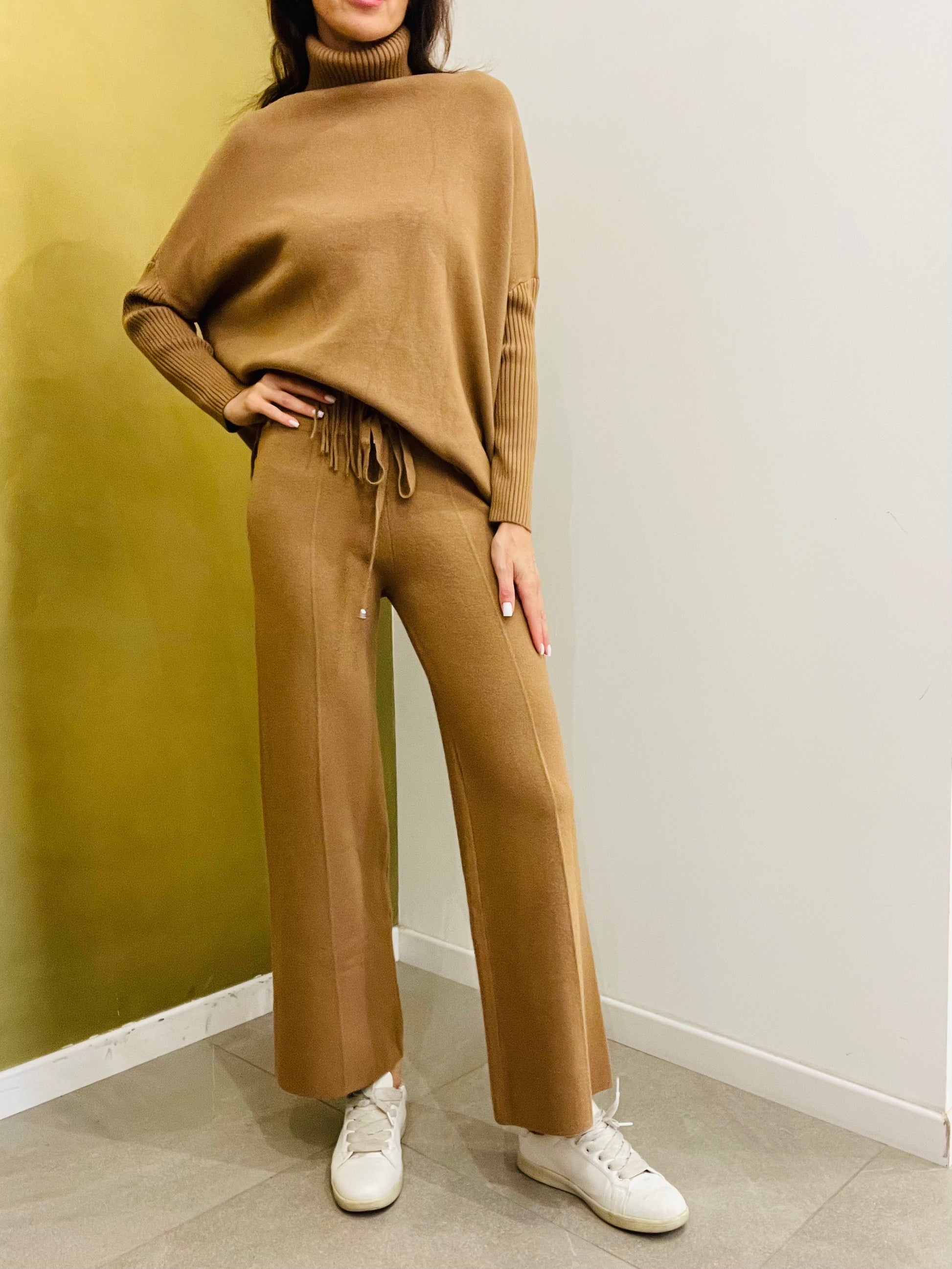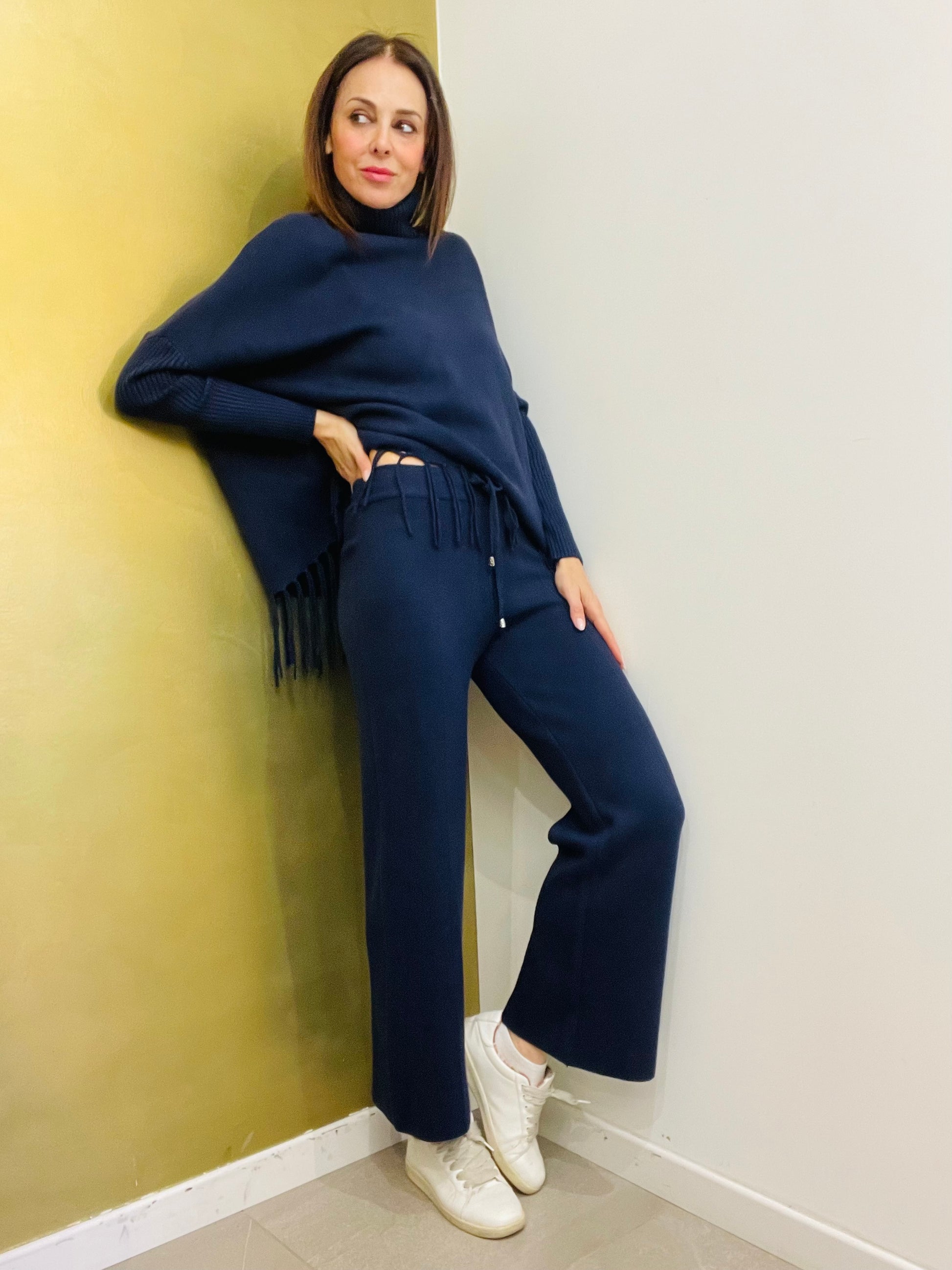 Pantalone in maglia con elastico in vita e coulisse, pence sul davanti