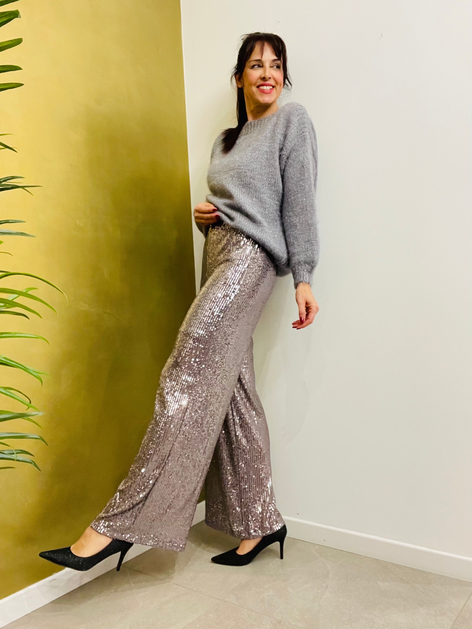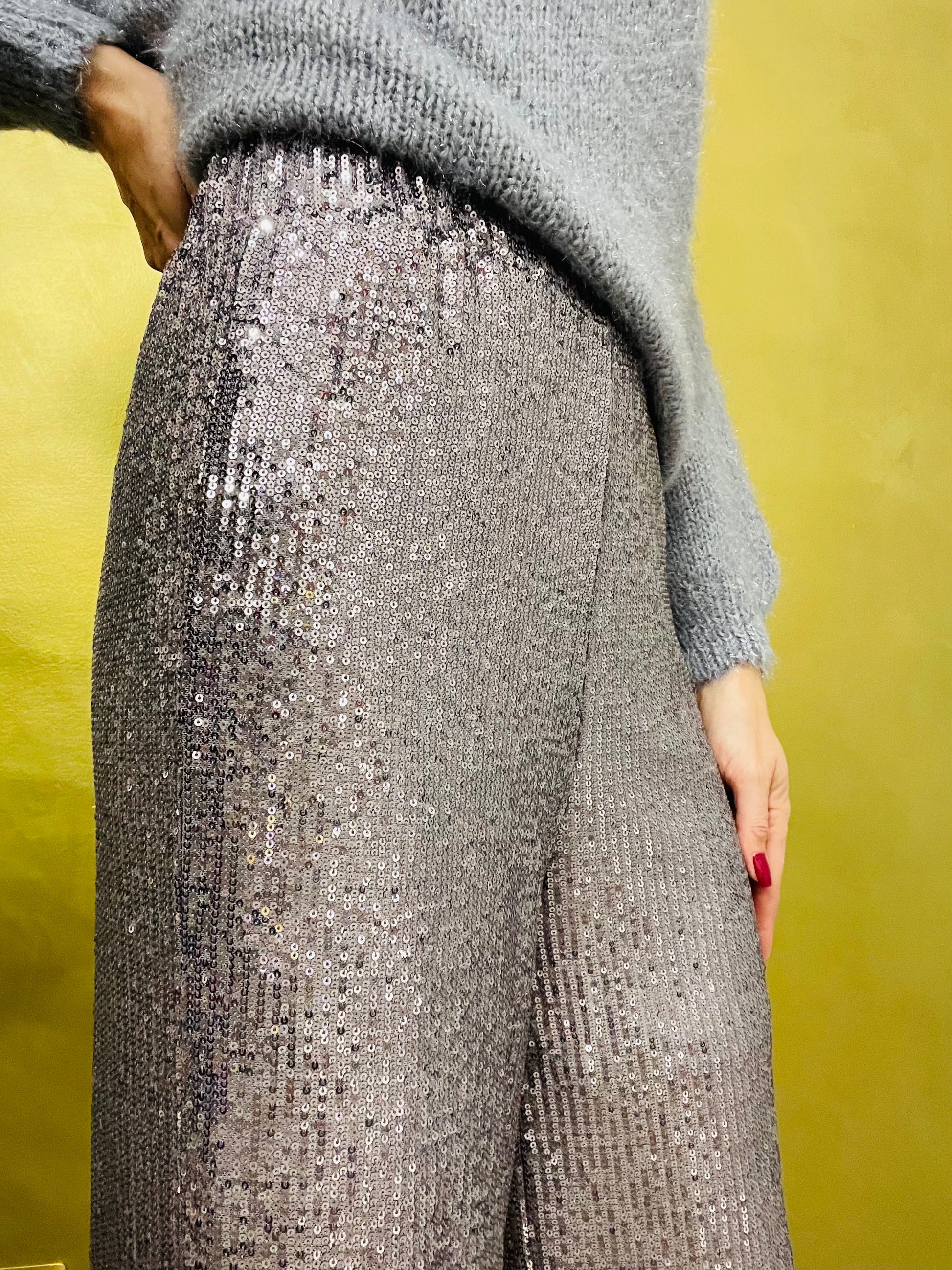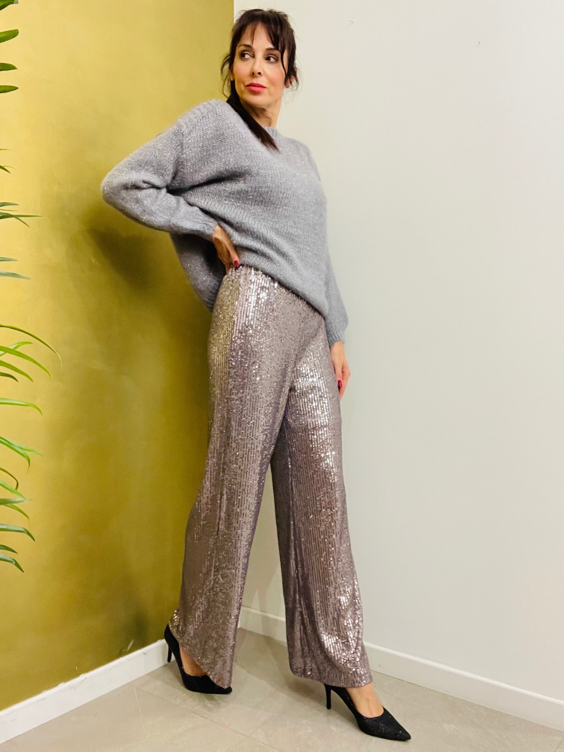 Pantalone dal taglio a palazzo in pailettes interamente foderato
