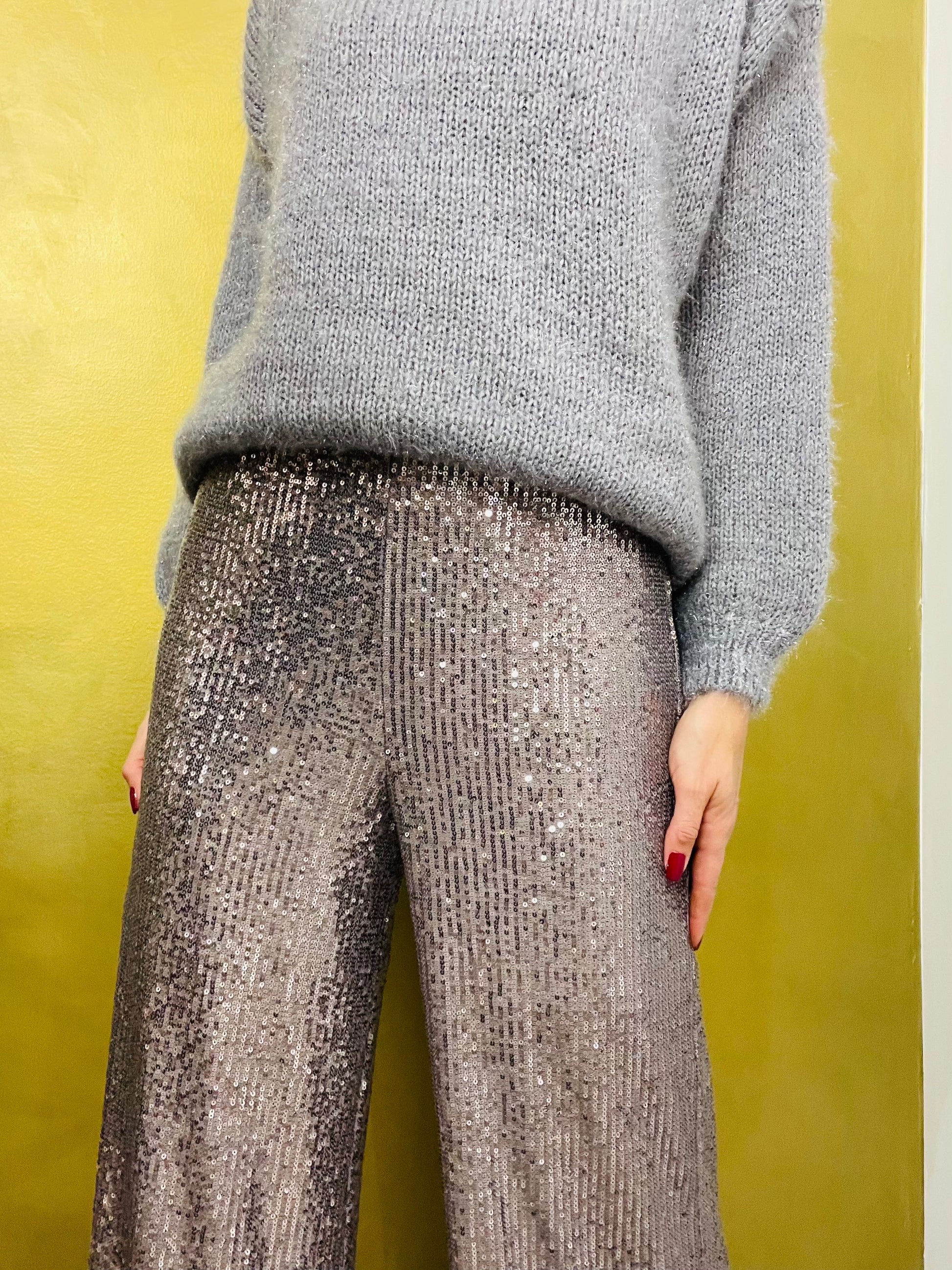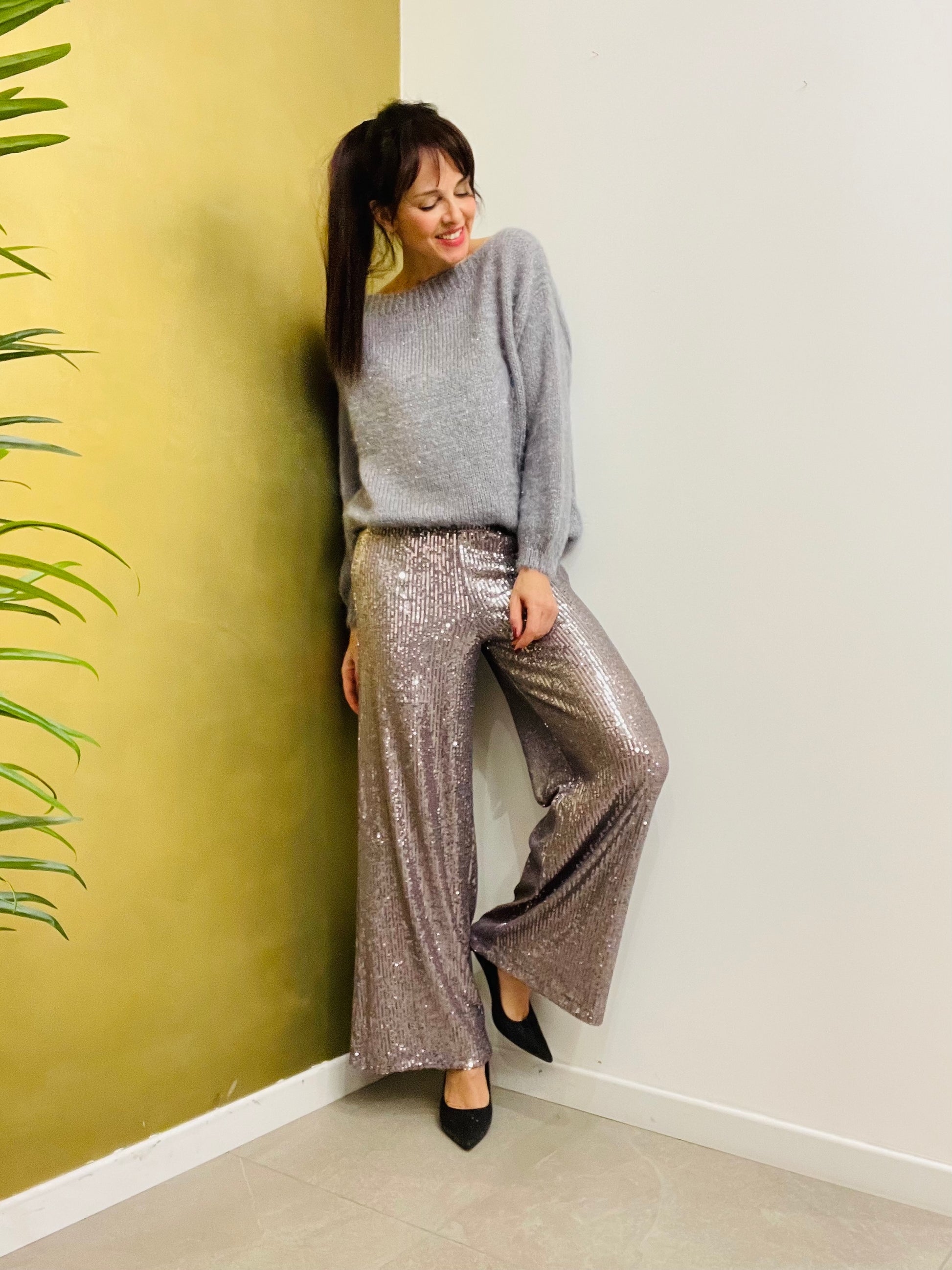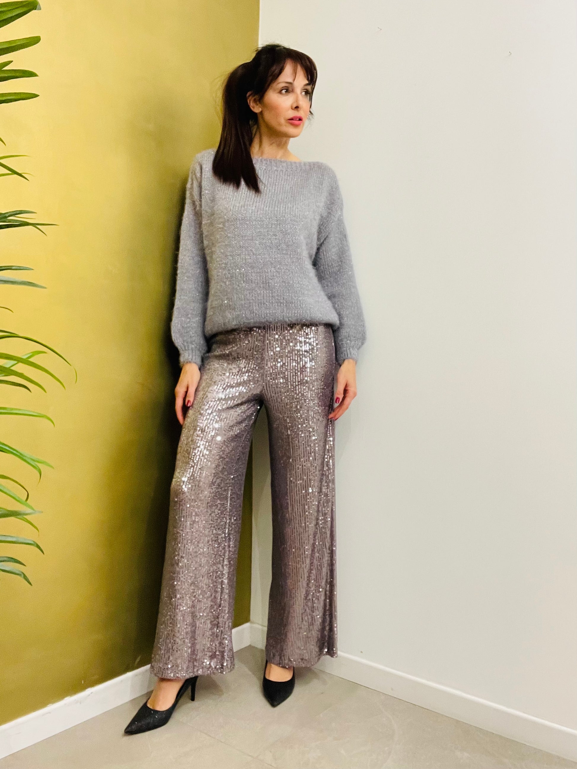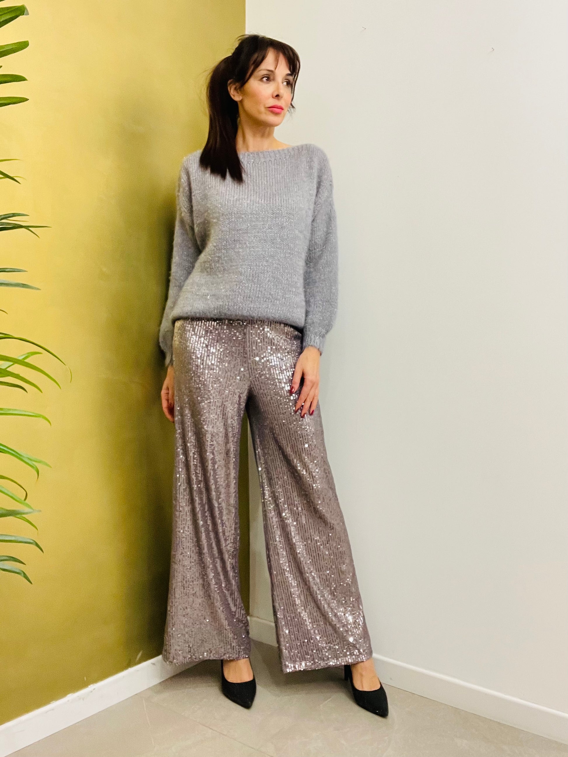 Pantalone dal taglio a palazzo in pailettes interamente foderato