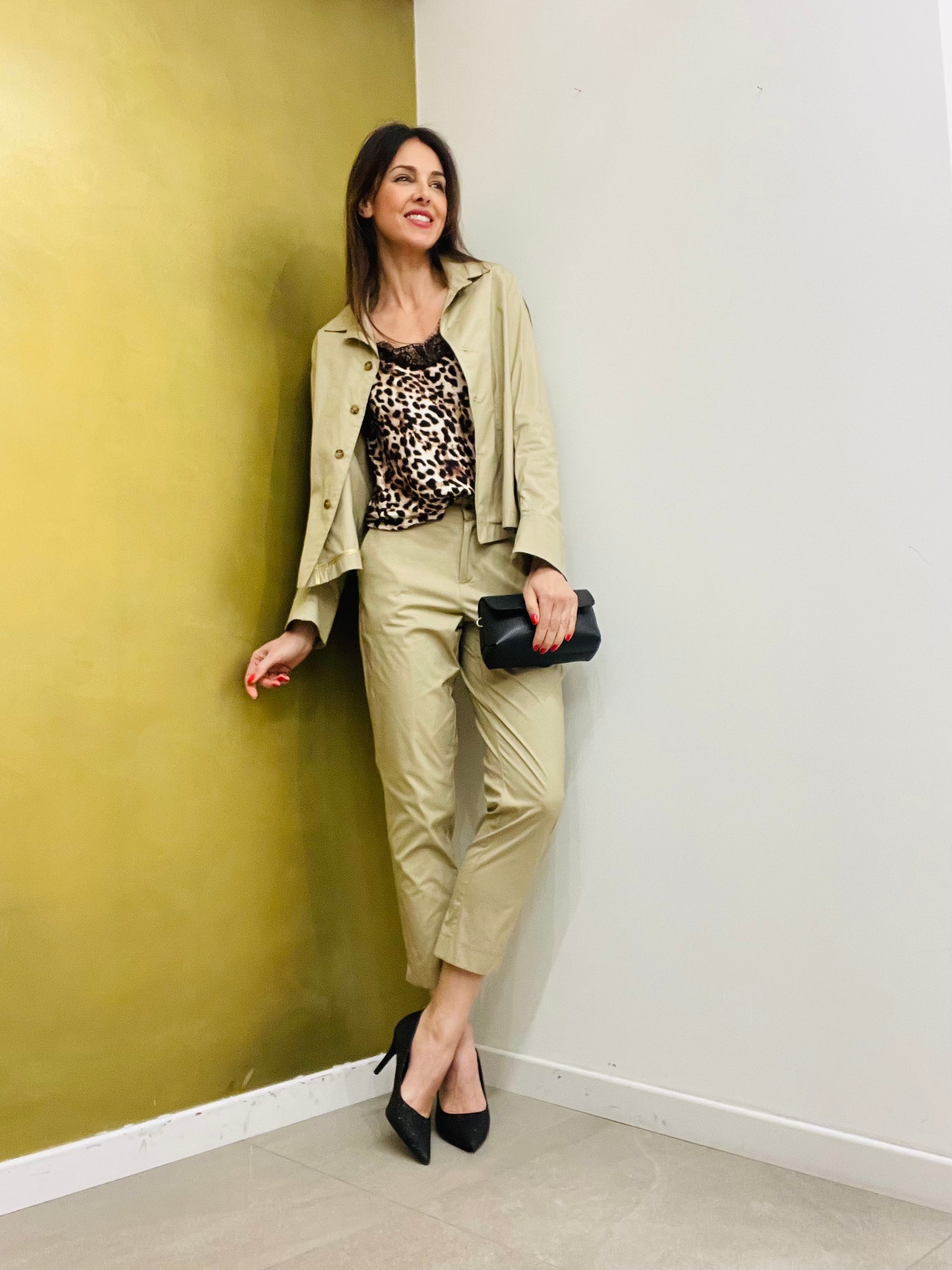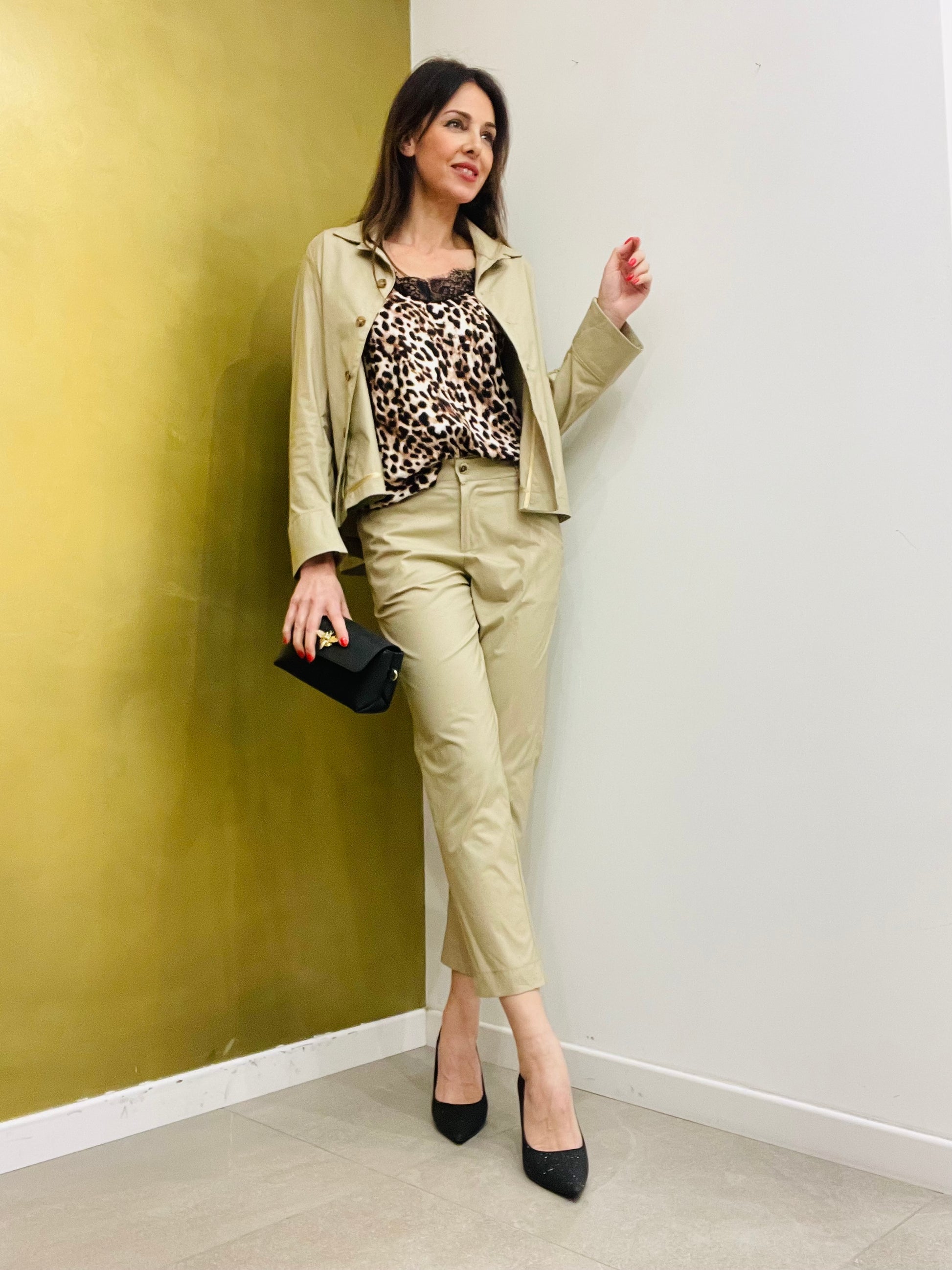 Pantalone a sigaretta in cotone leggero con elastico sul retro vita, tasche laterali e tasche a filetto sul retro