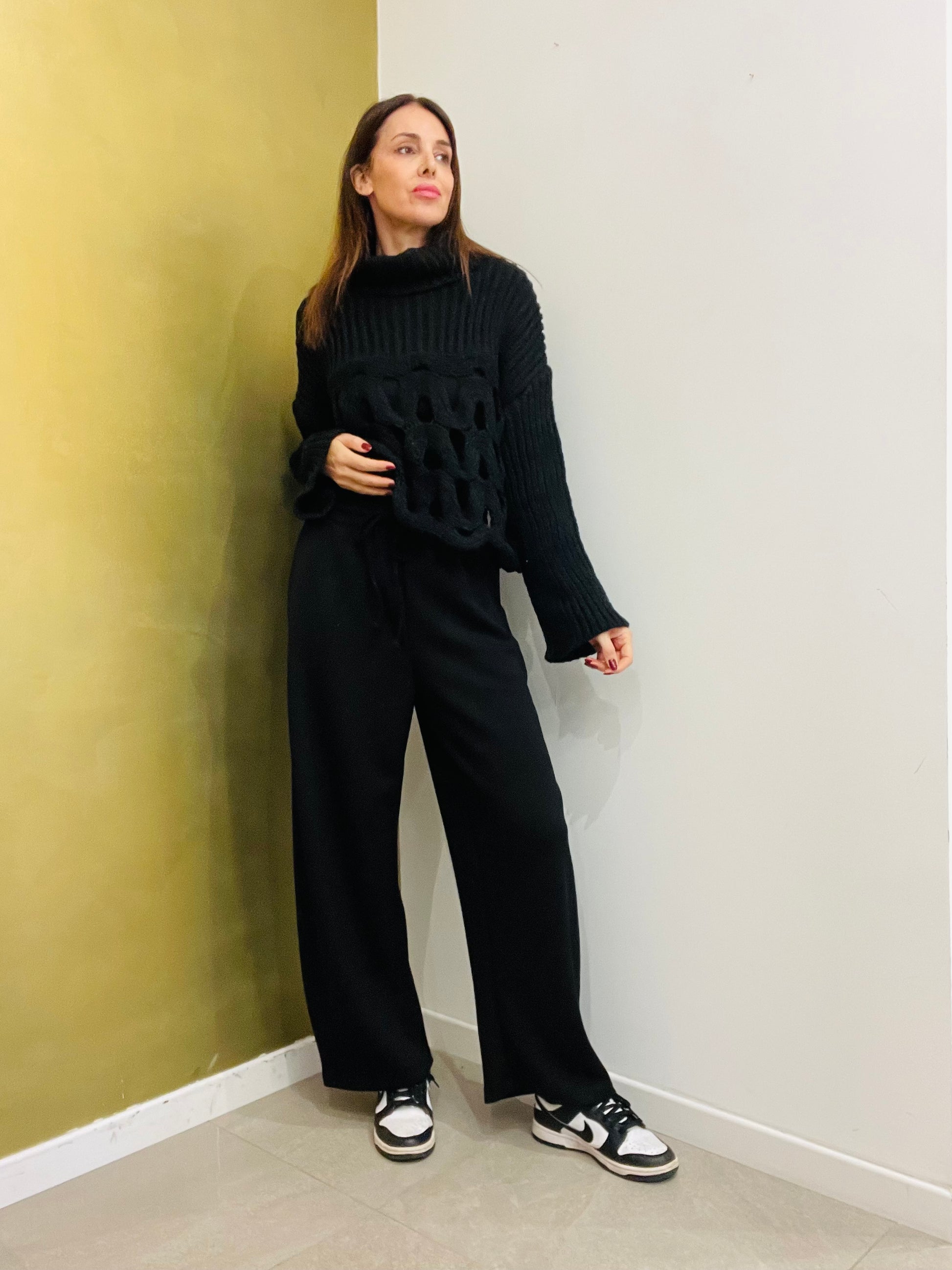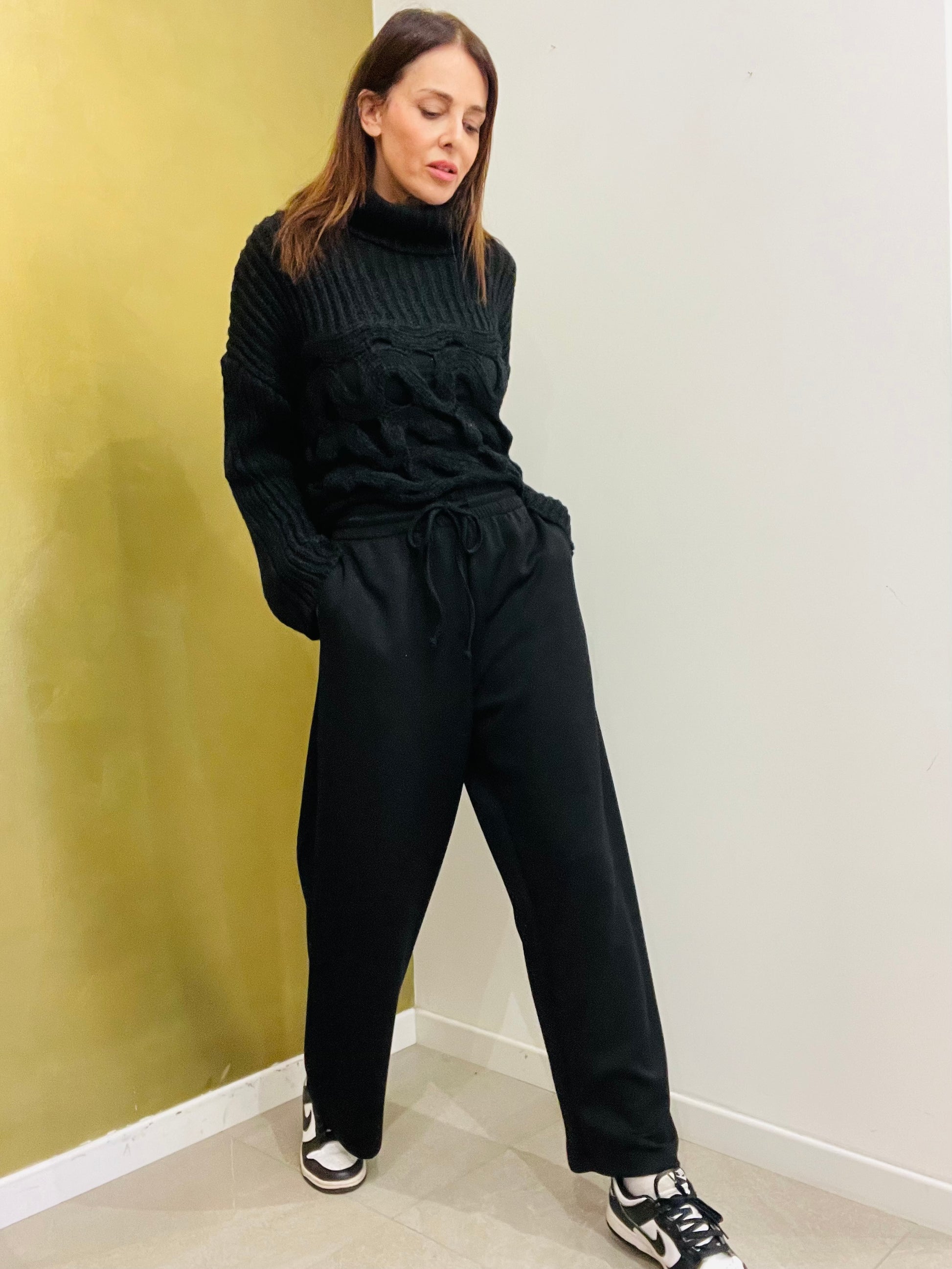Pantalone tuta a palazzo con elastico sul giro vita con coulisse, tasche laterali