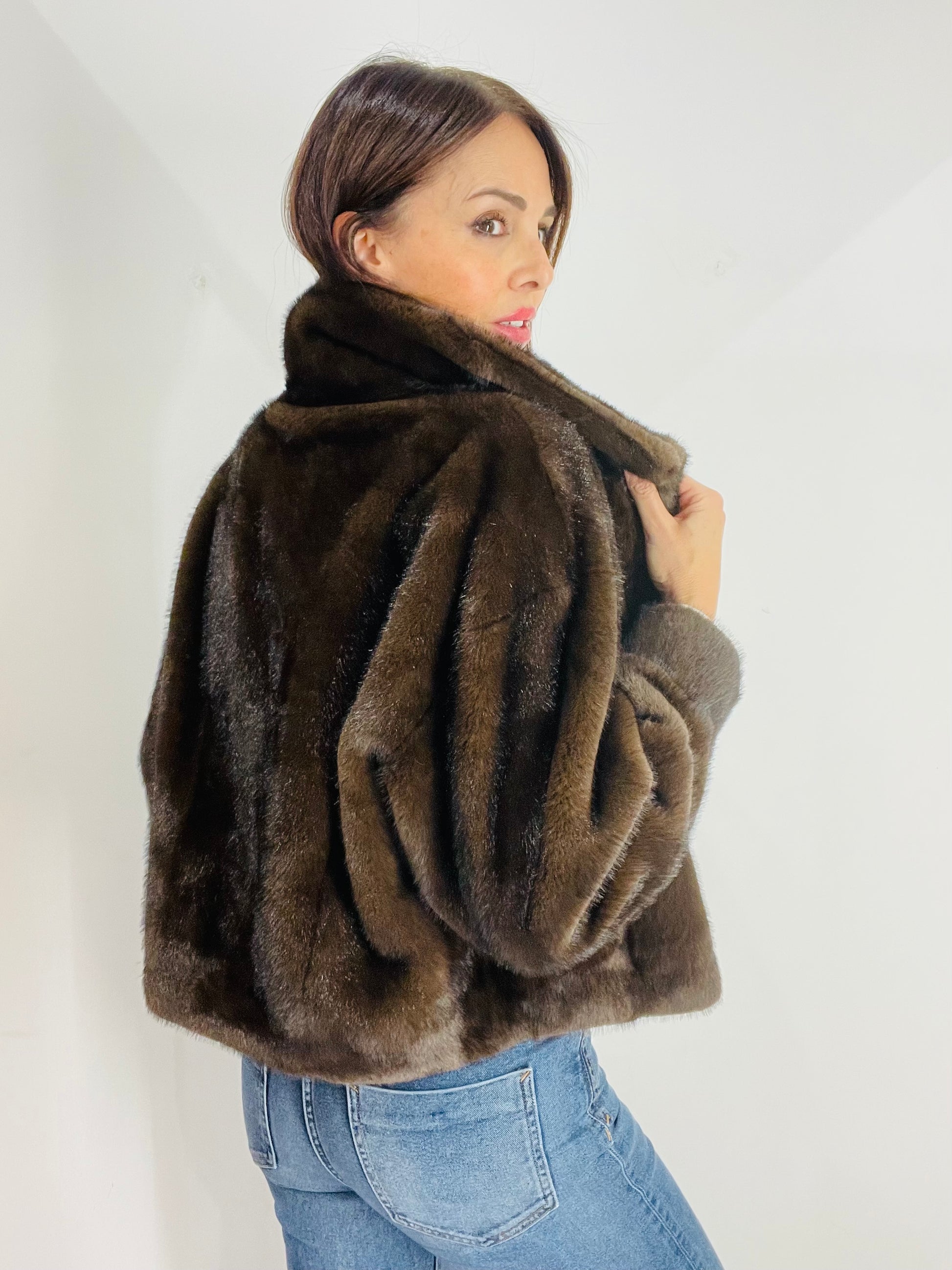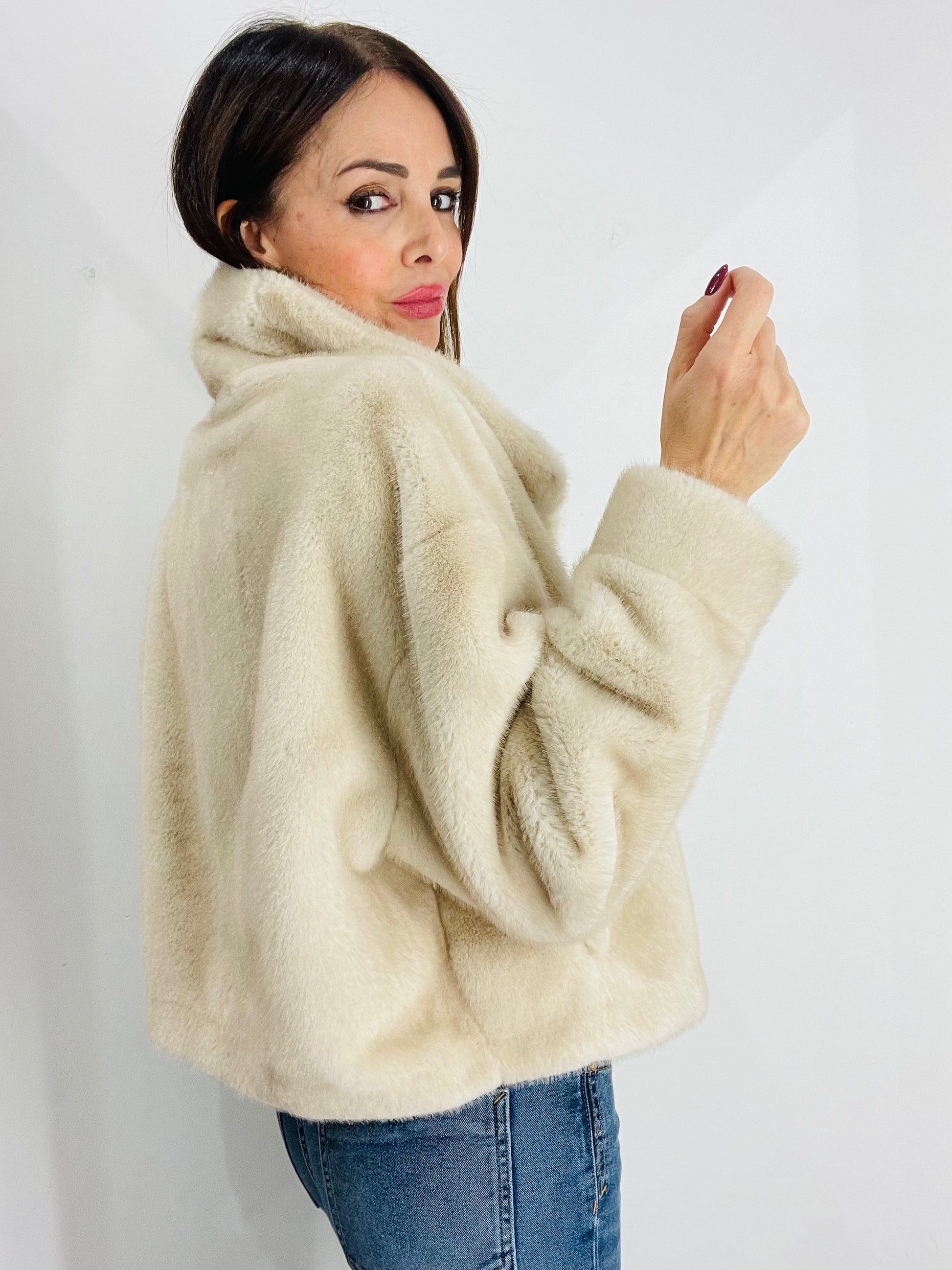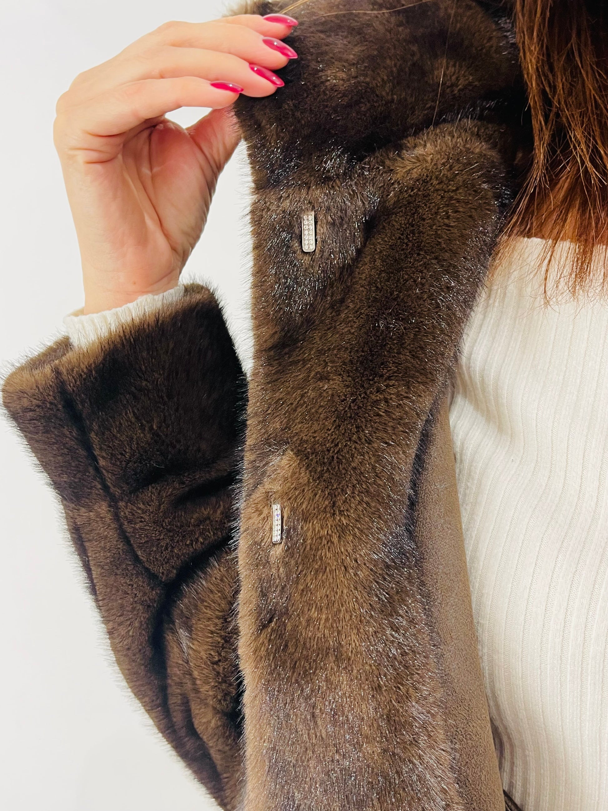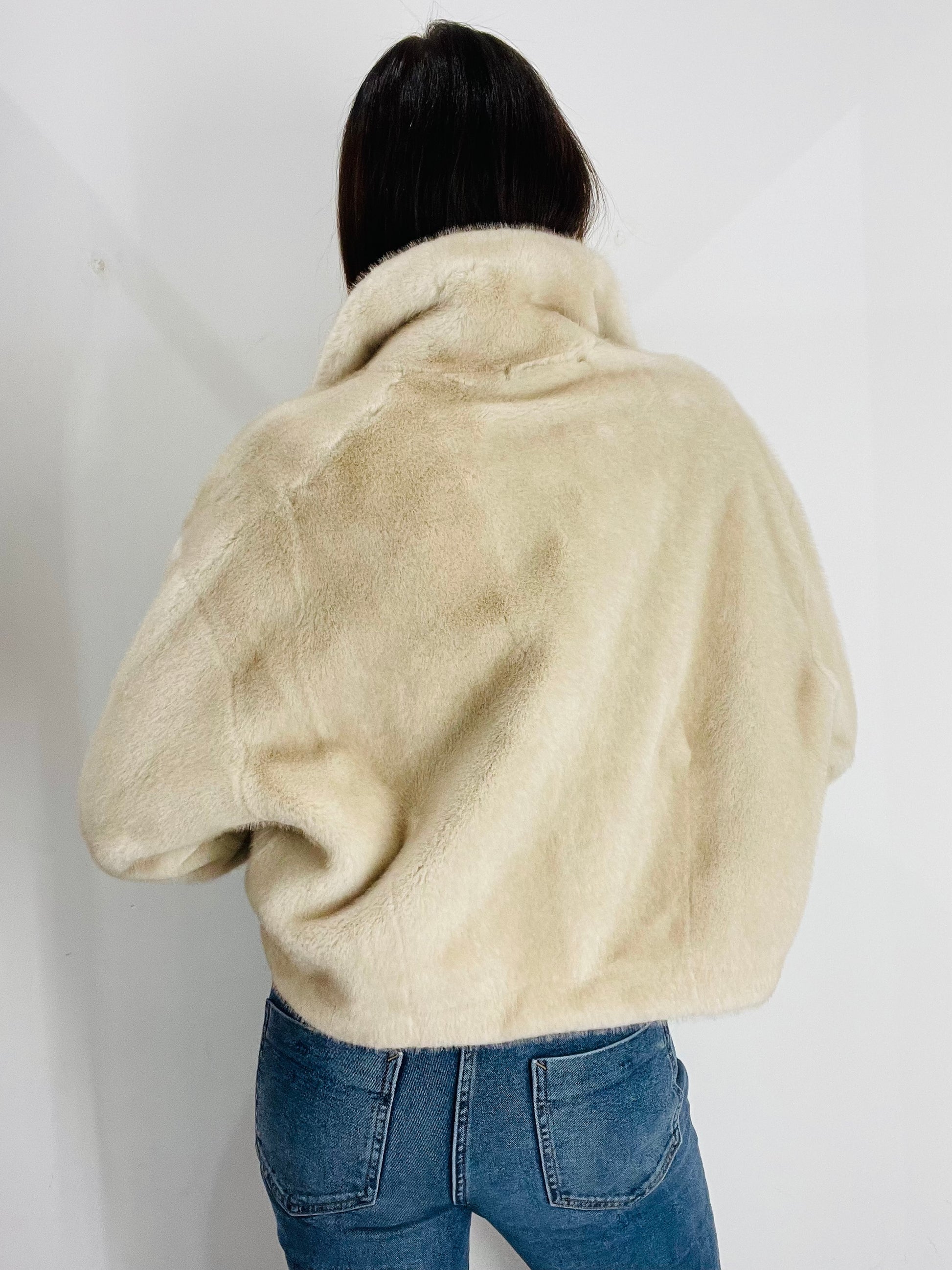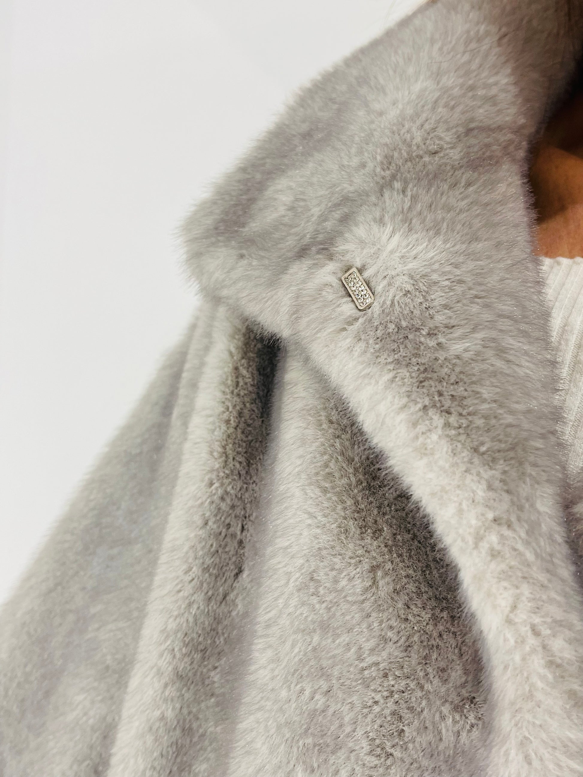 Eco Pelliccia corta con manica A sbuffo e polsino al fondo, chiusura con quattro ganci in strass per Pelliccia Nascosti dal montante , Tasche laterali a filetto