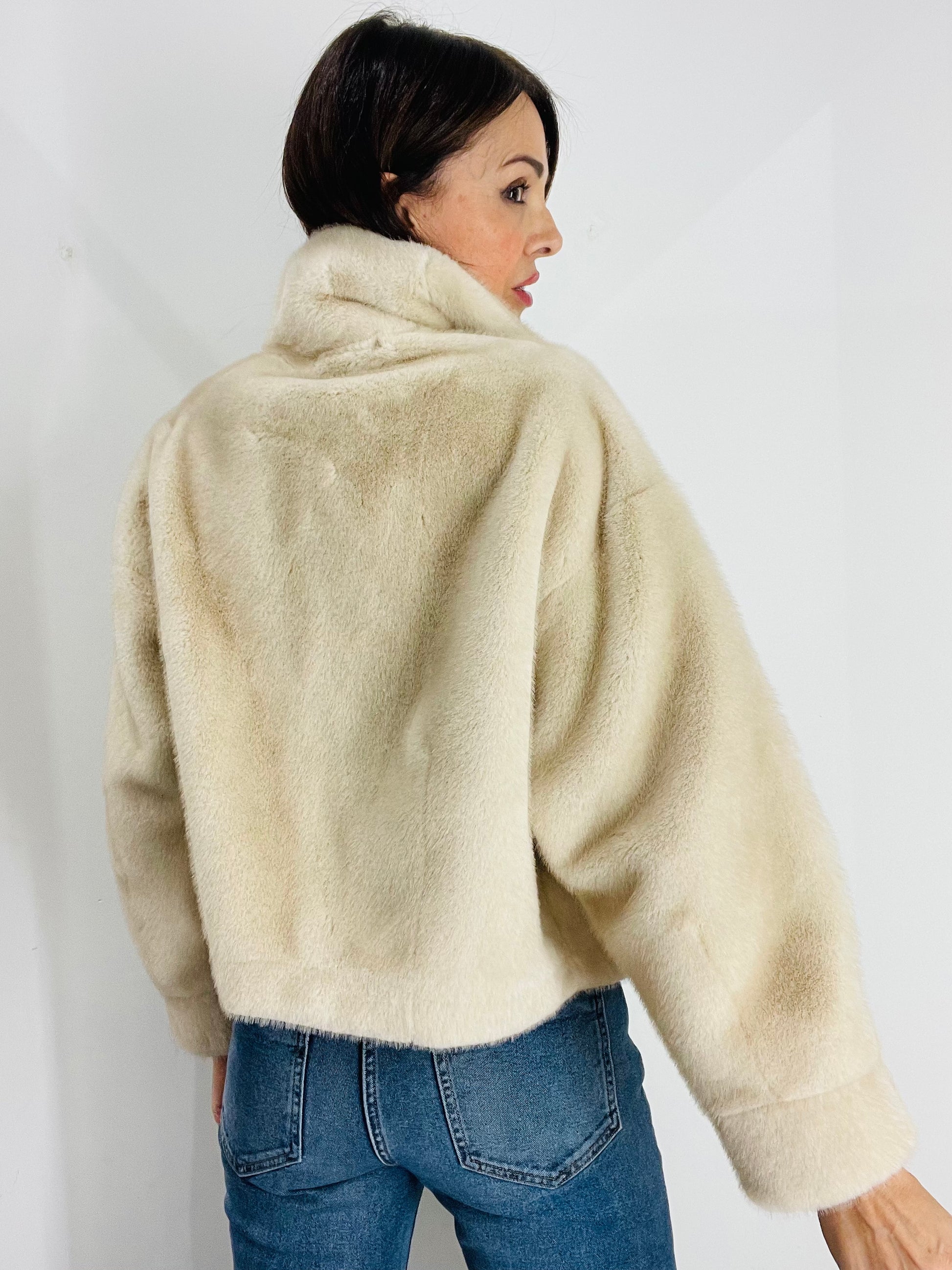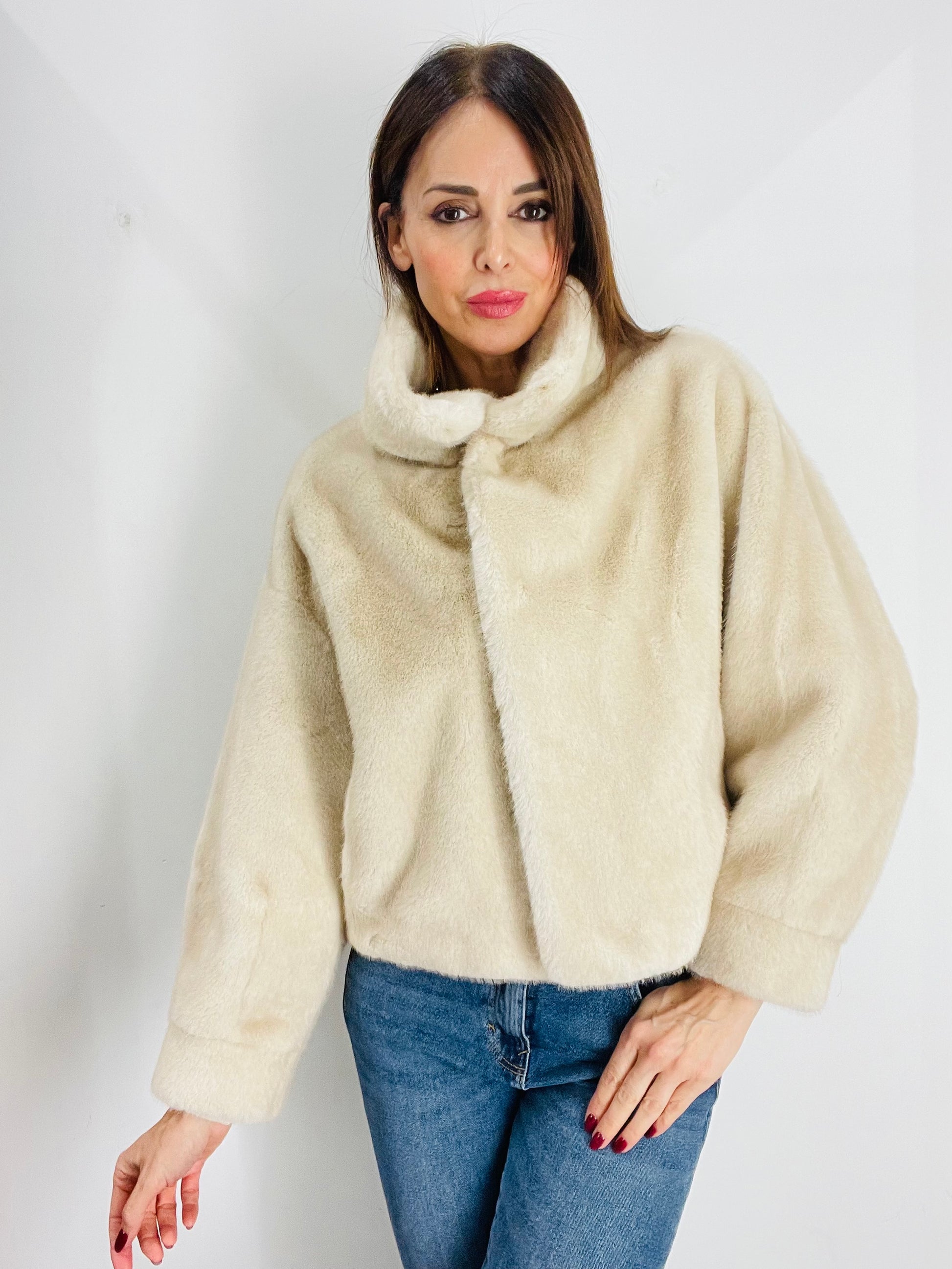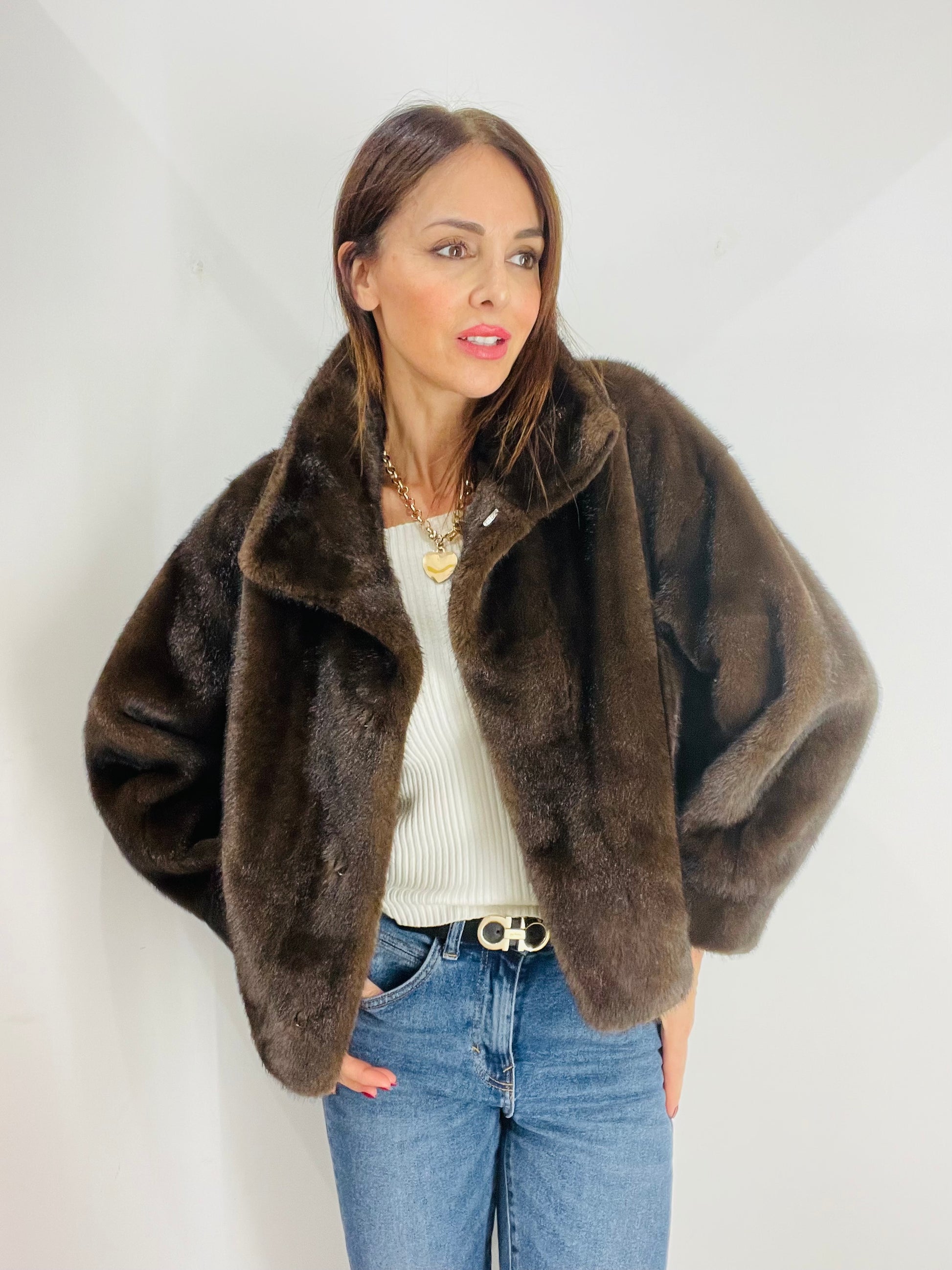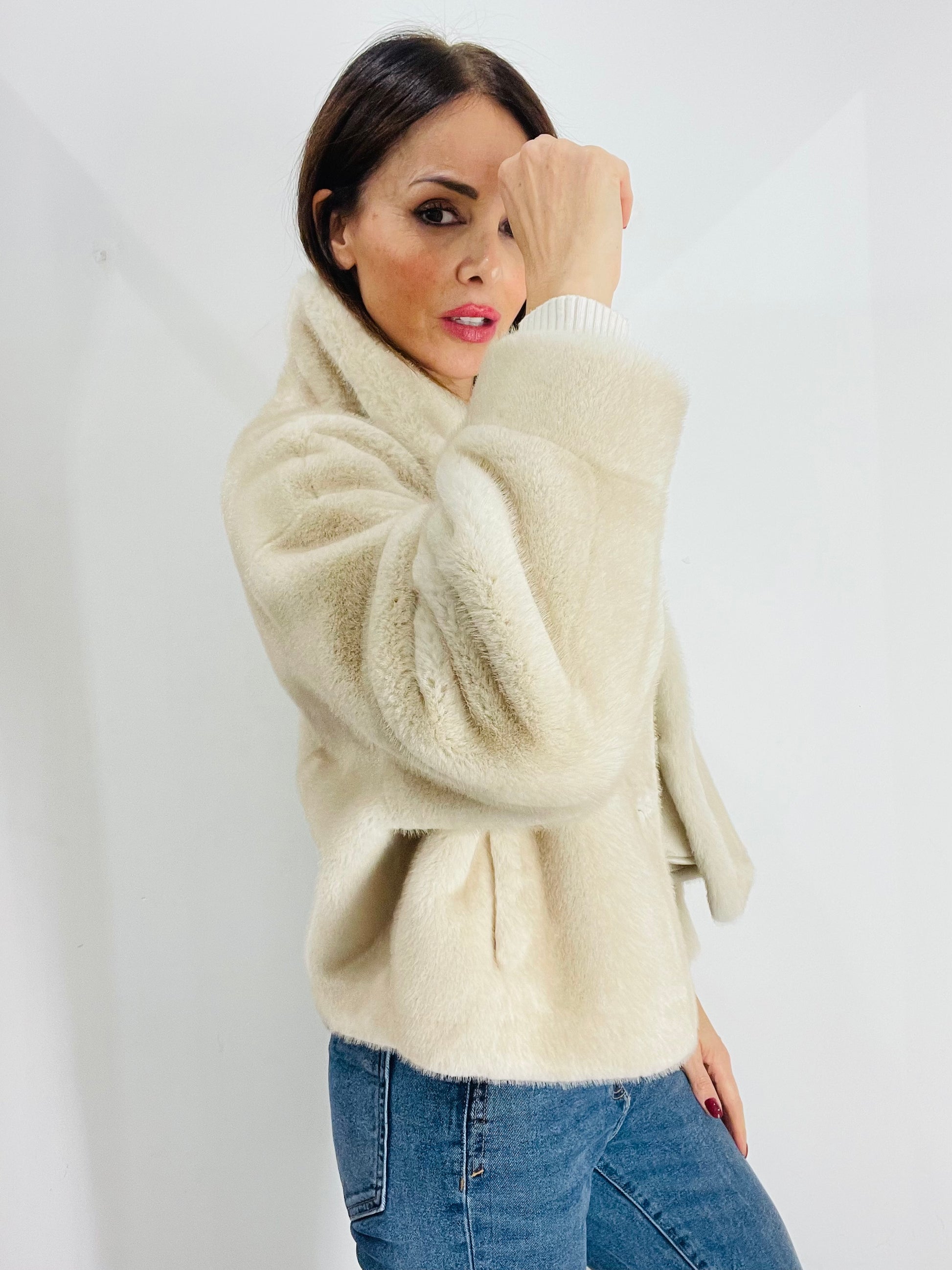 Eco Pelliccia corta con manica A sbuffo e polsino al fondo, chiusura con quattro ganci in strass per Pelliccia Nascosti dal montante , Tasche laterali a filetto