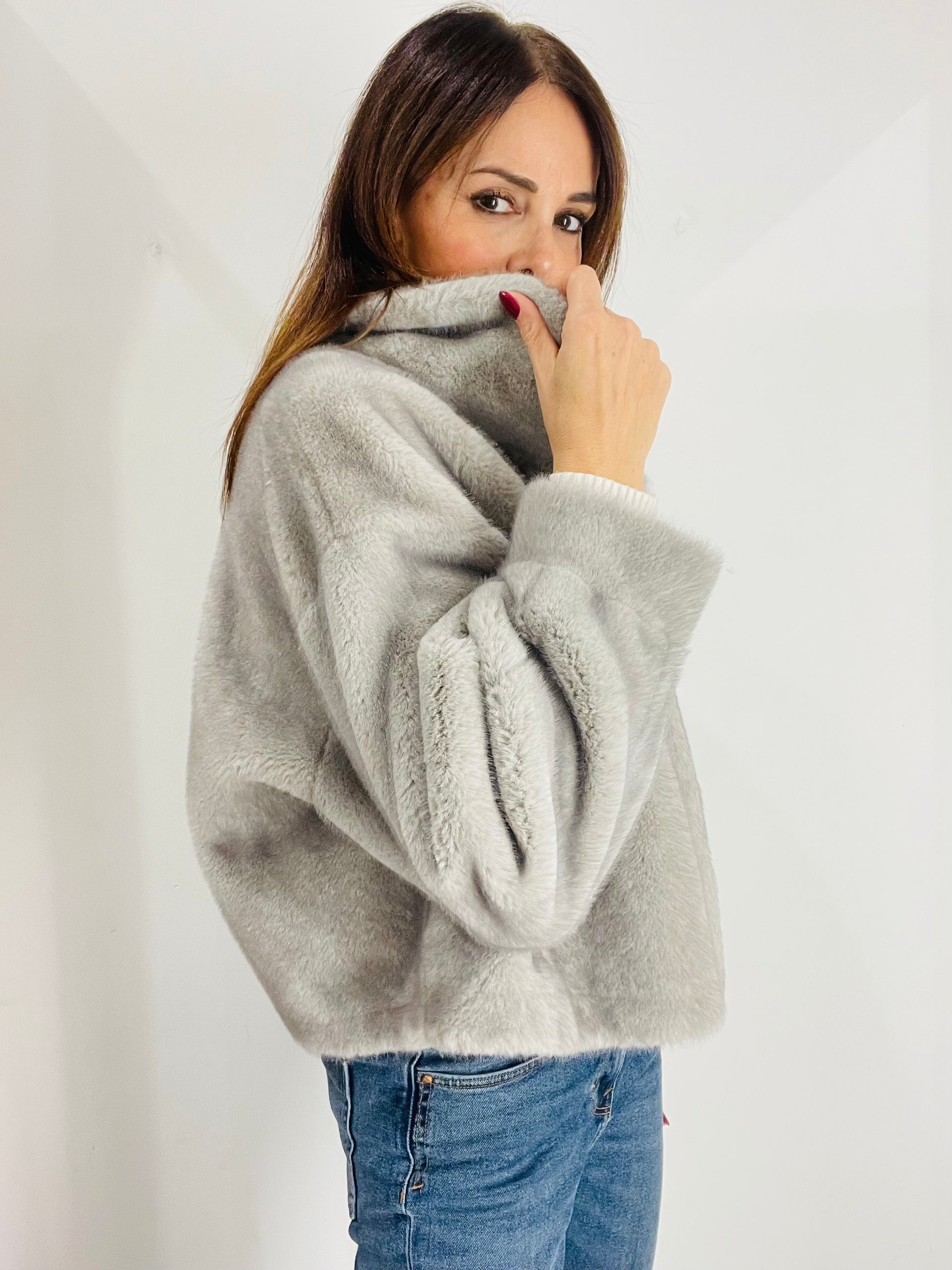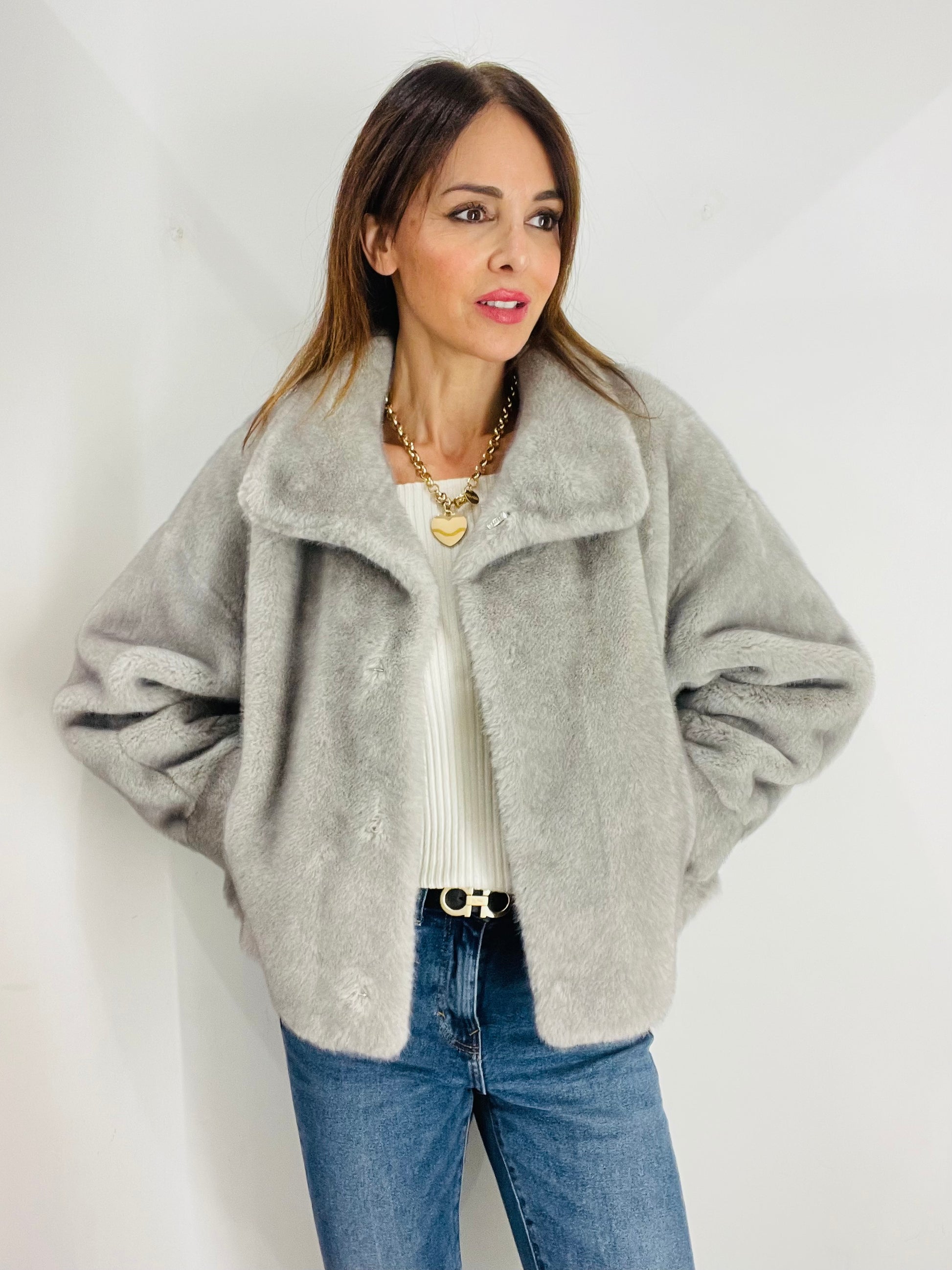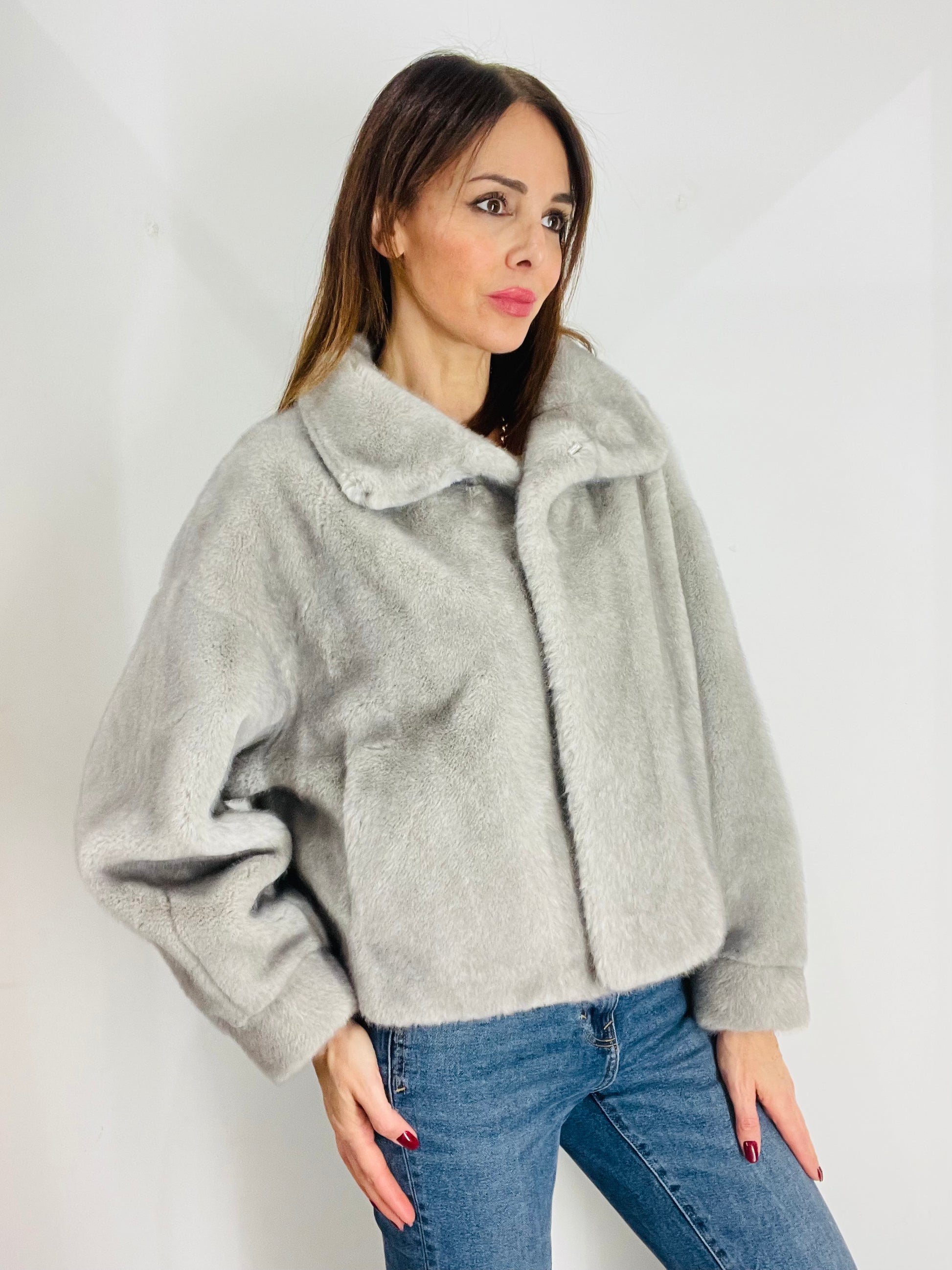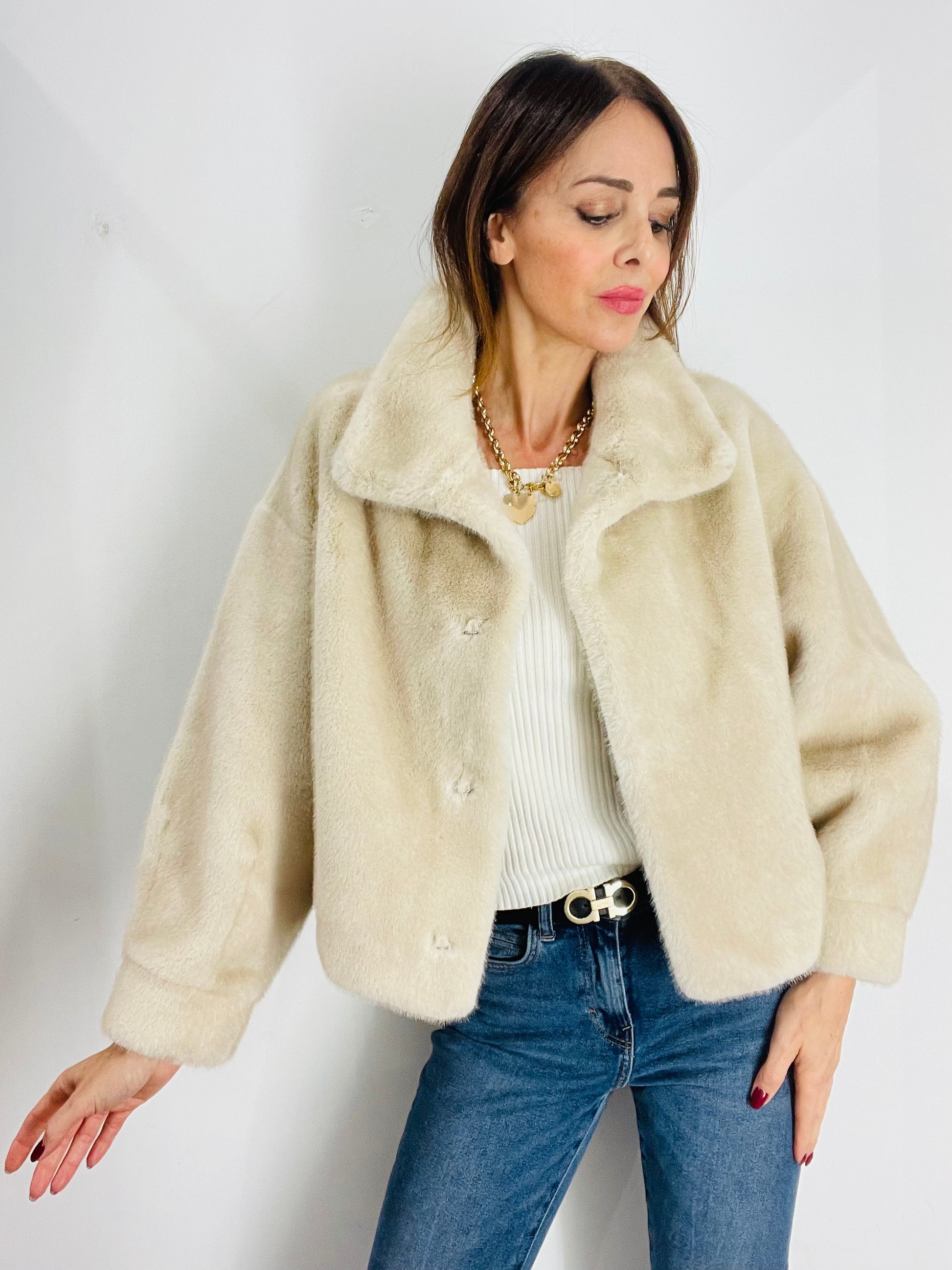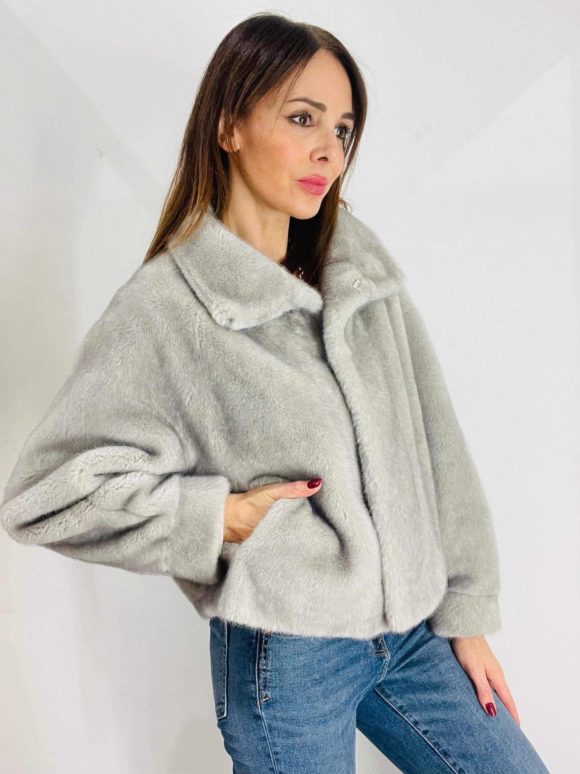 Eco Pelliccia corta con manica A sbuffo e polsino al fondo, chiusura con quattro ganci in strass per Pelliccia Nascosti dal montante , Tasche laterali a filetto