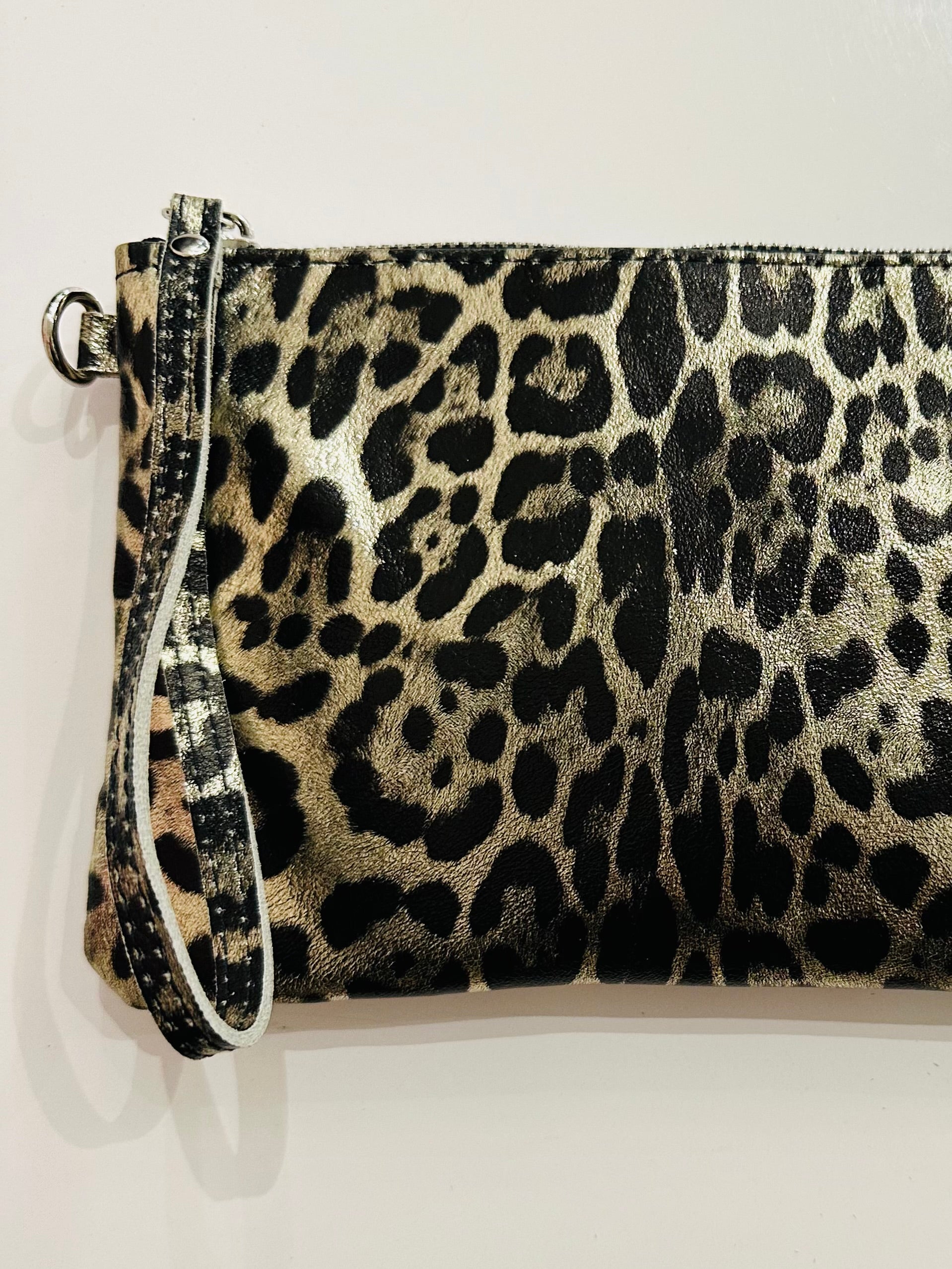 Pochette laminata in fantasia maculata in vera pelle