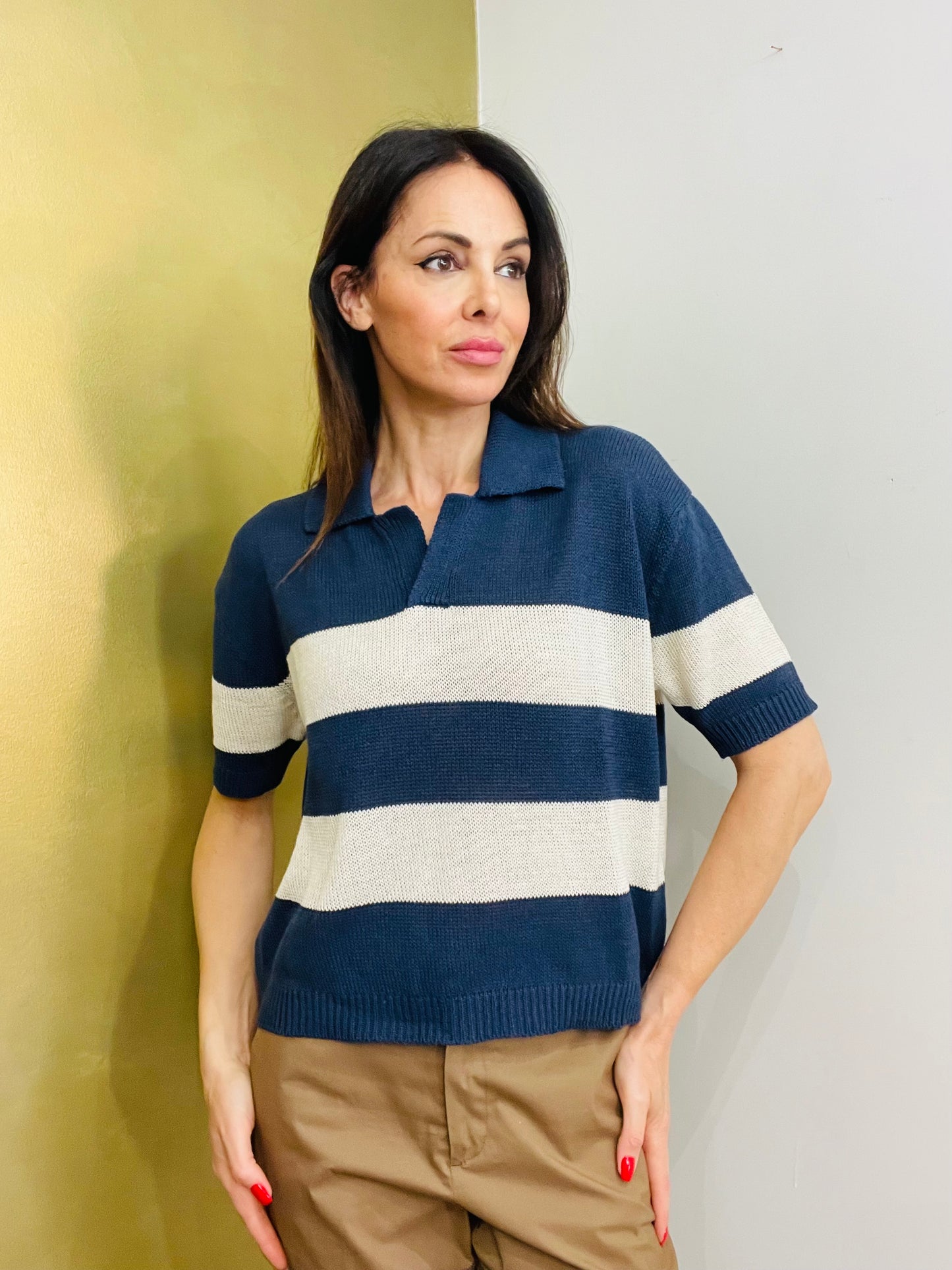 Maglia a polo, mezza manica a righe, vestibilità morbida in taglia unica