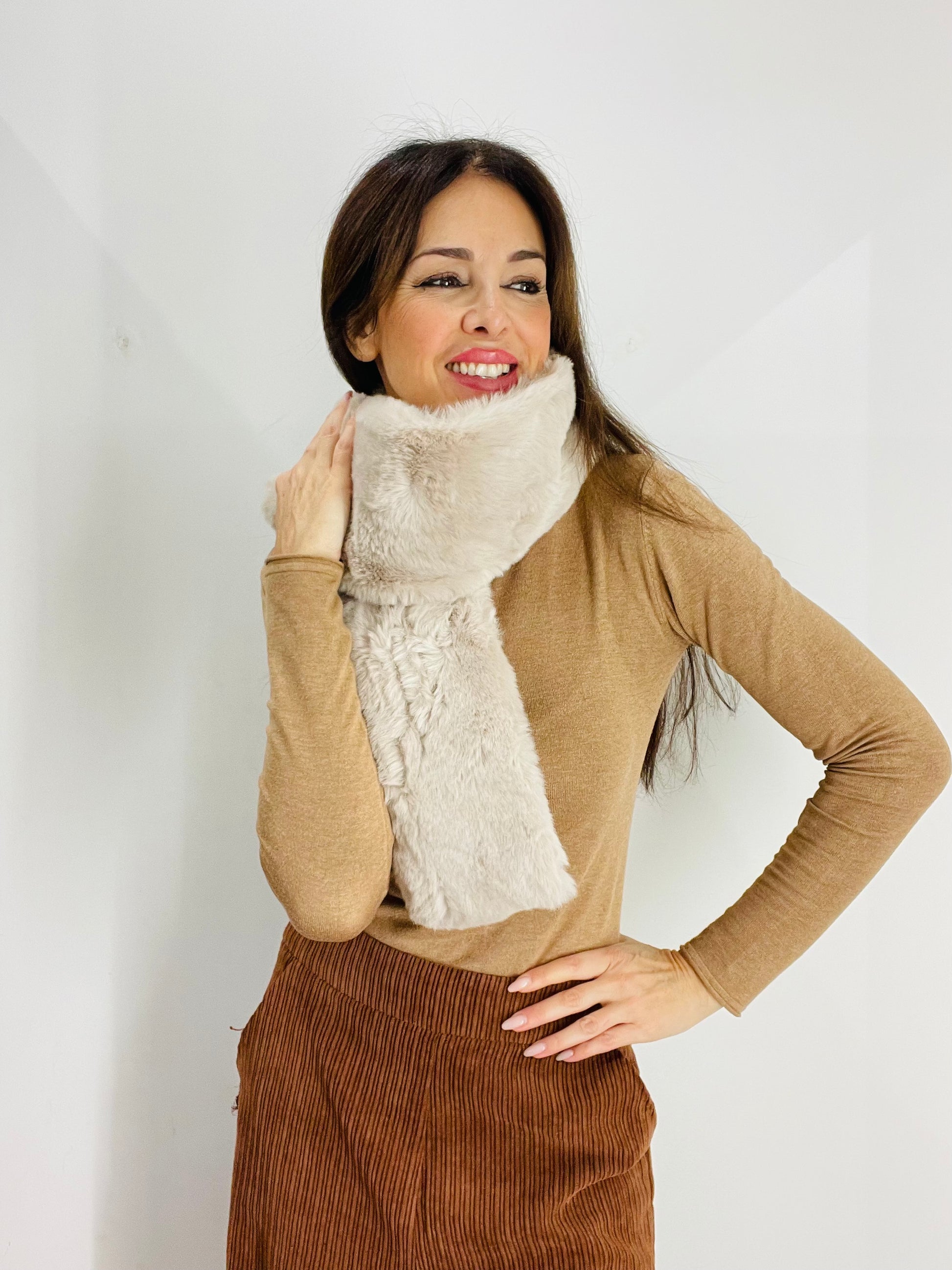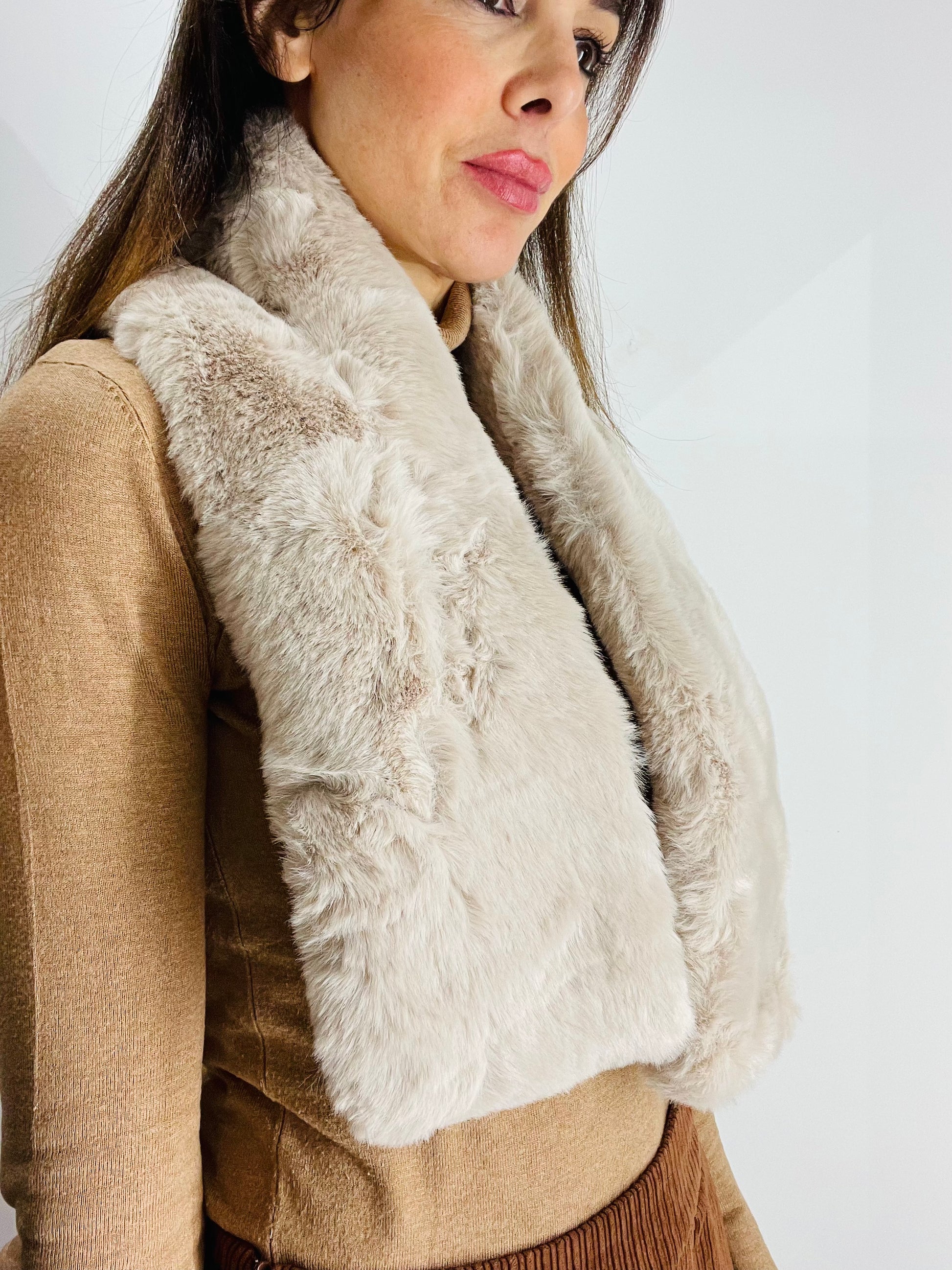 Scalda collo in eco pelliccia con asola per infilaTura facile ad incrocio