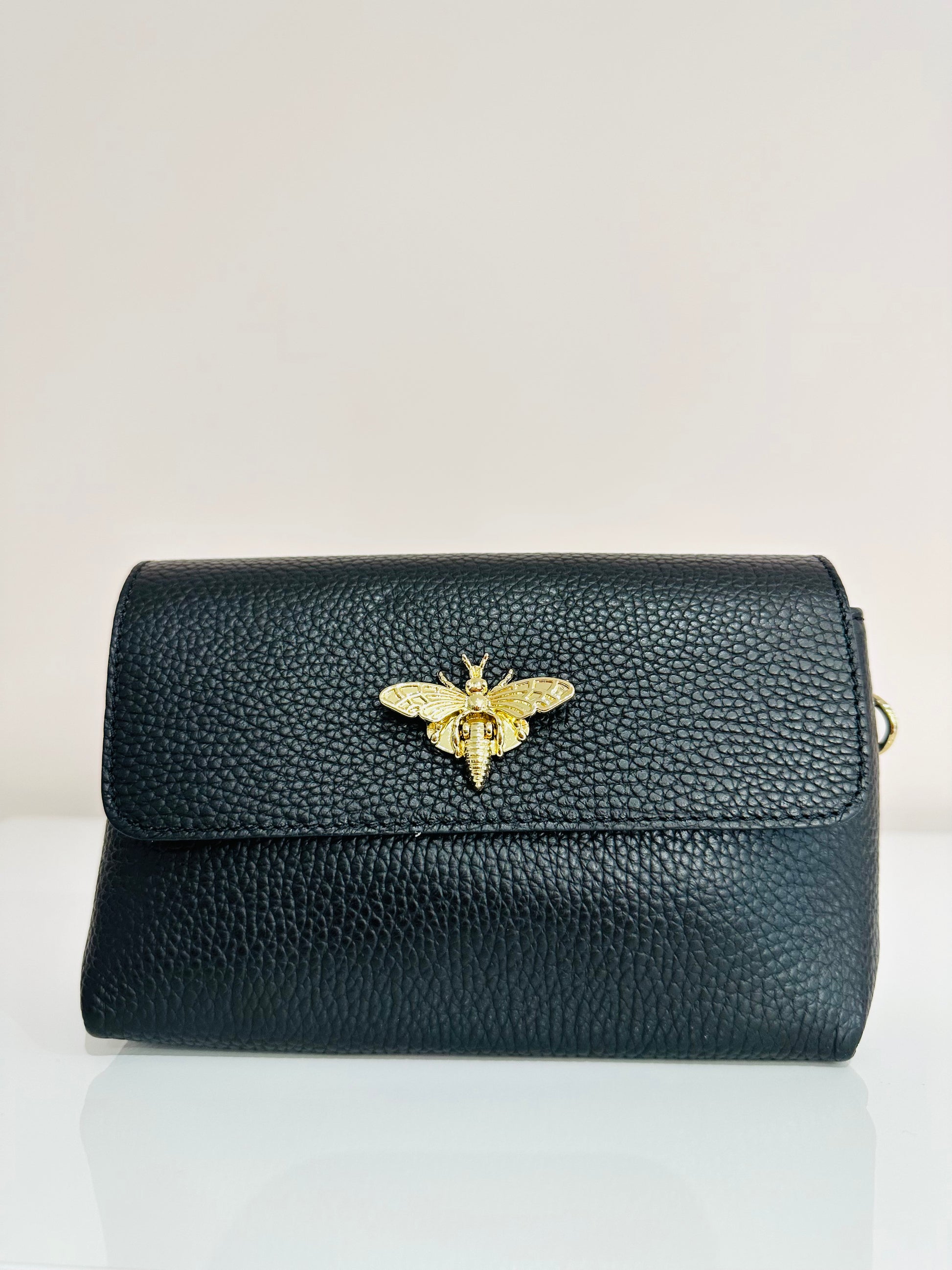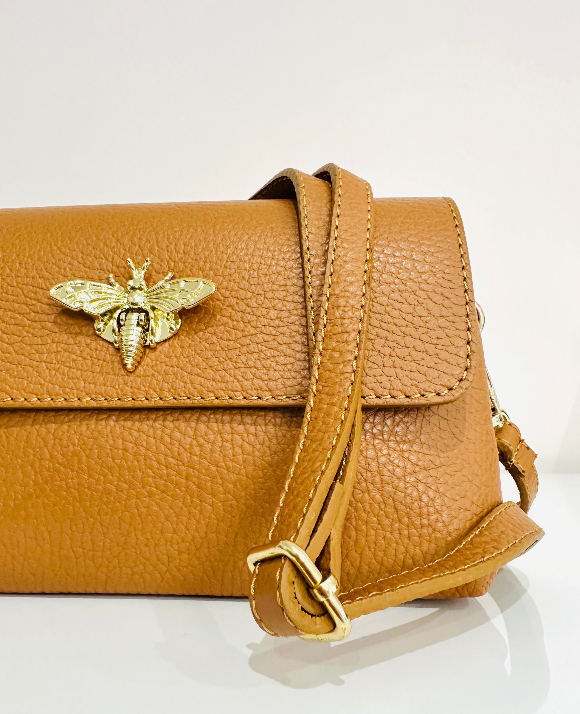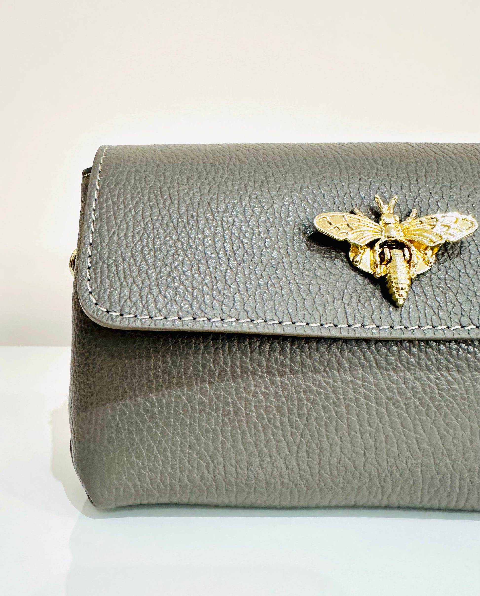 Dettaglio di ape sull’apertura della borsetta