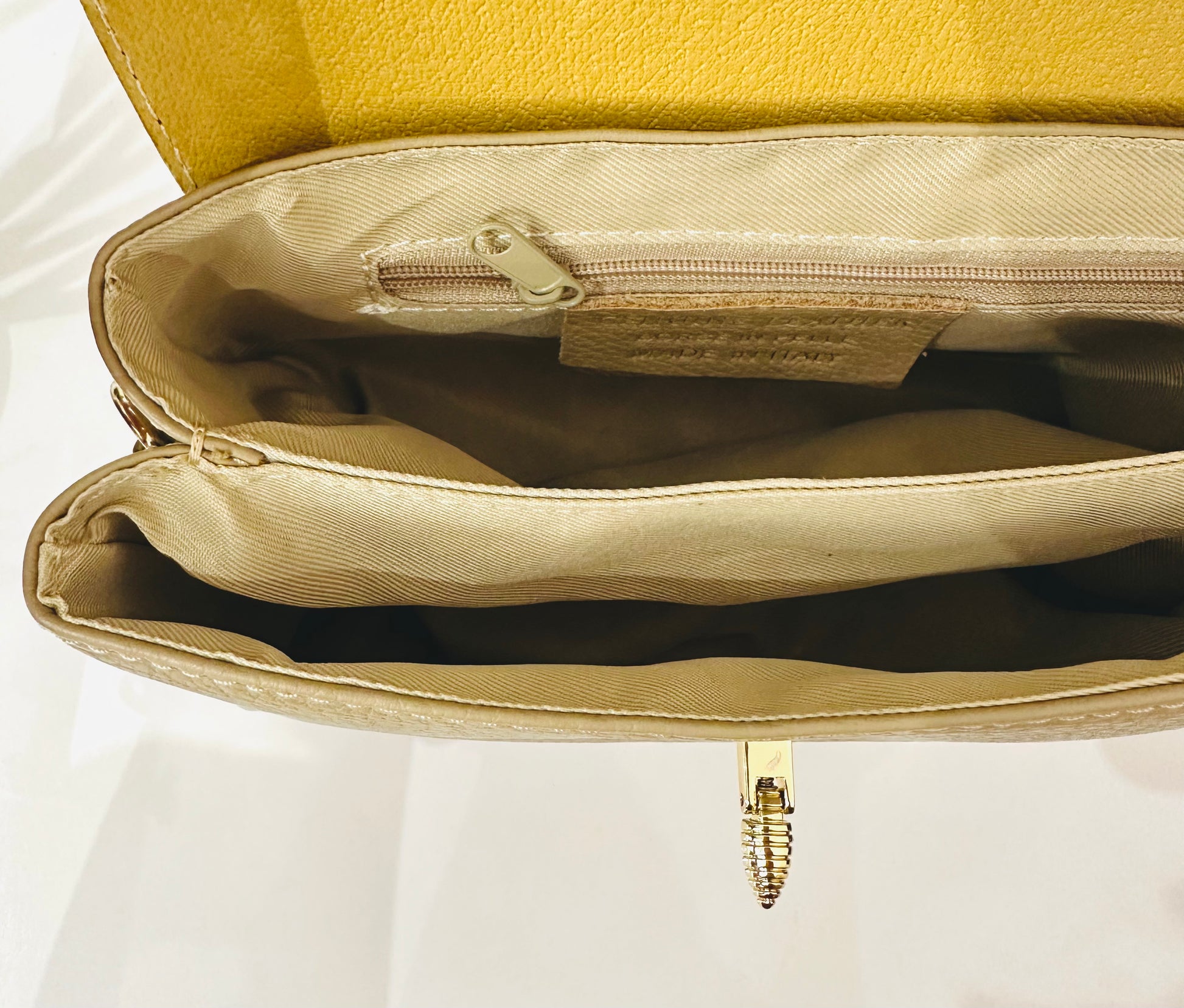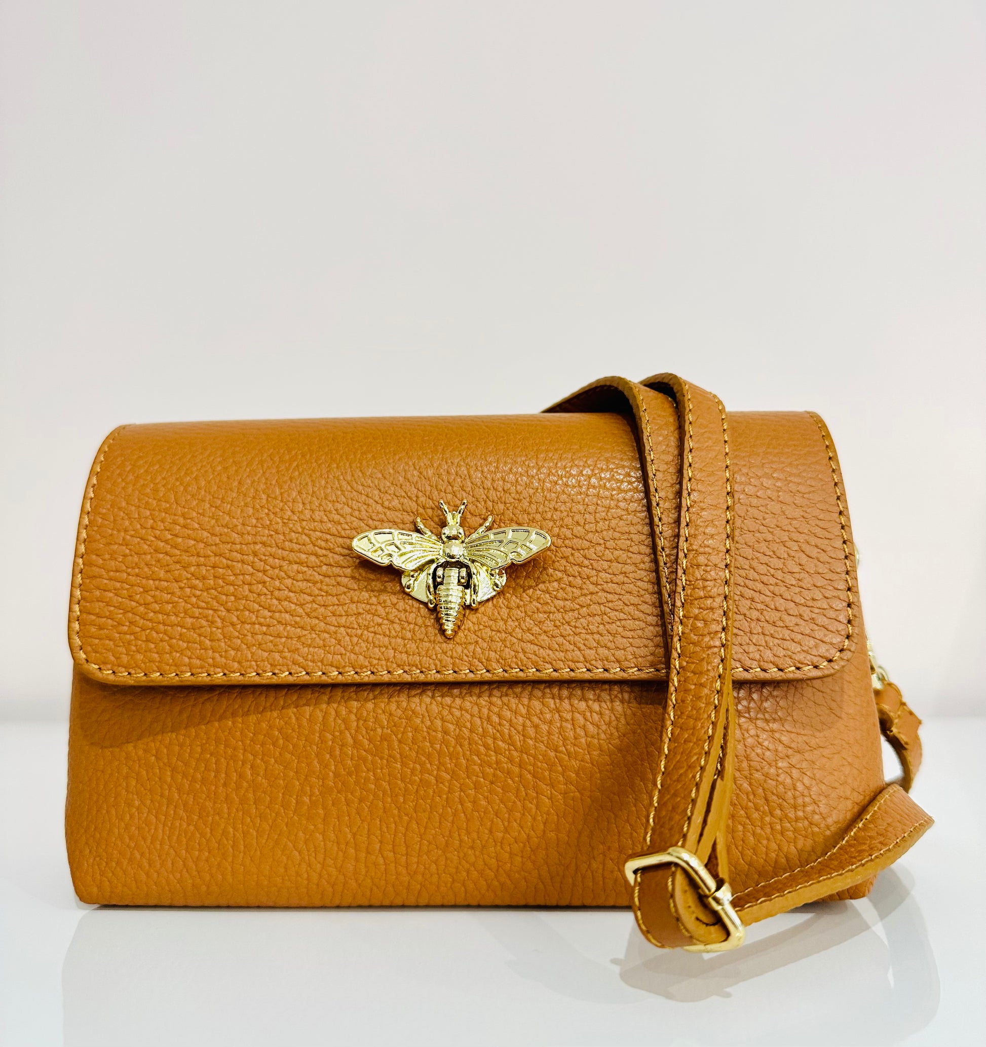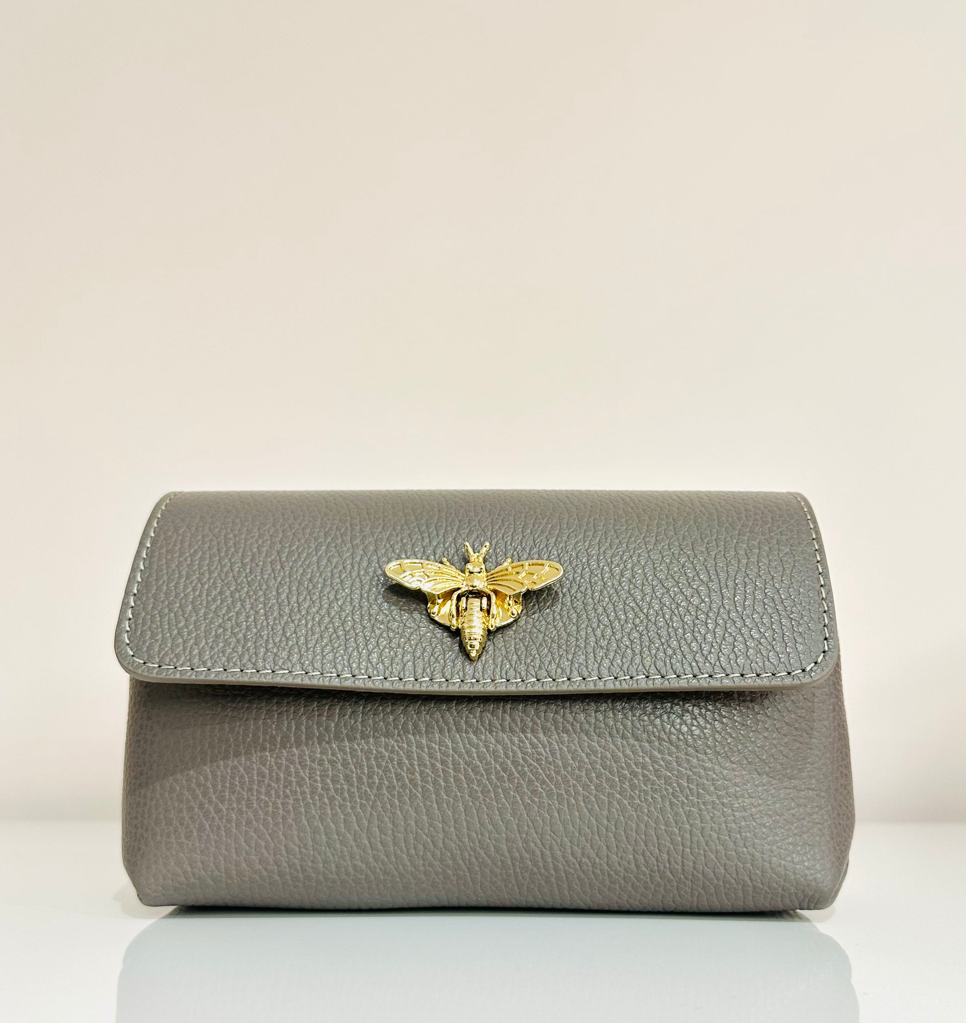 Dettaglio di ape sull’apertura della borsetta
