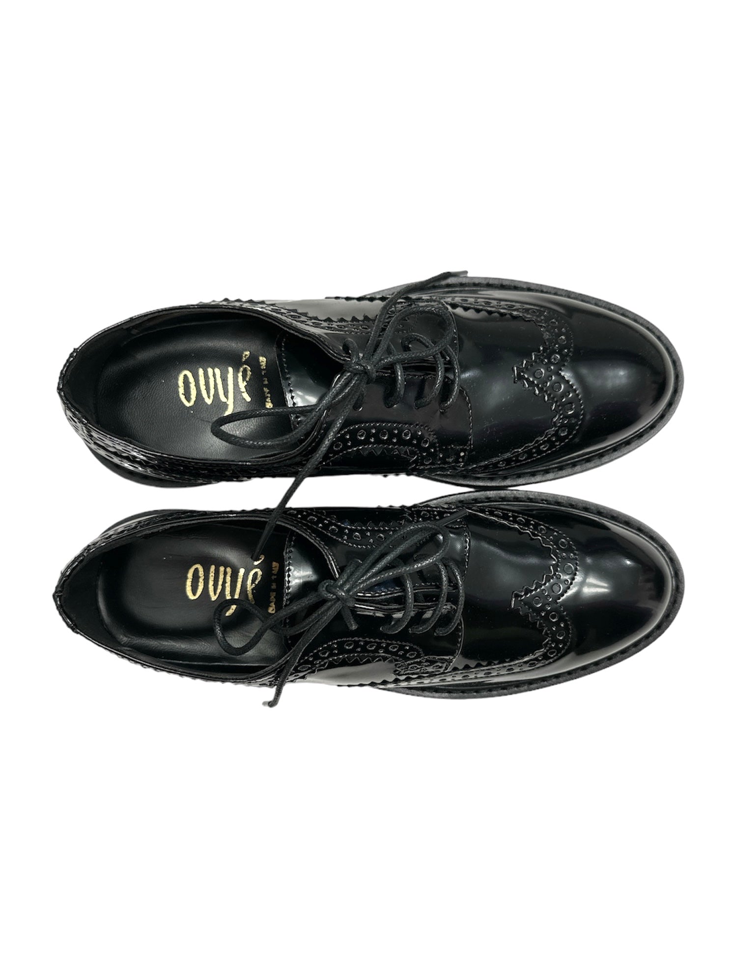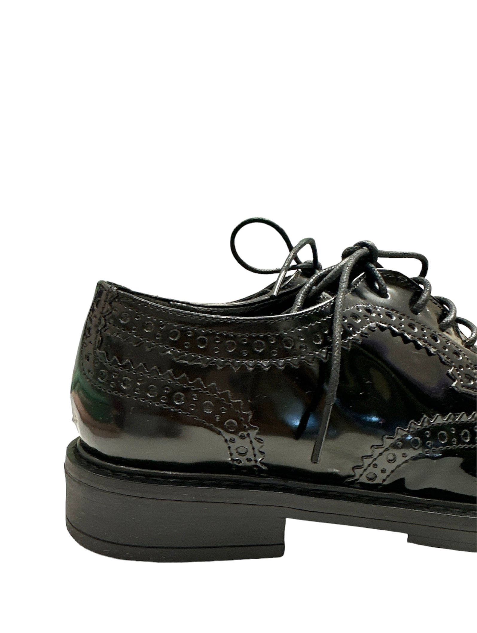Mocassino stringato in stile college in vera pelle spazzolata nera