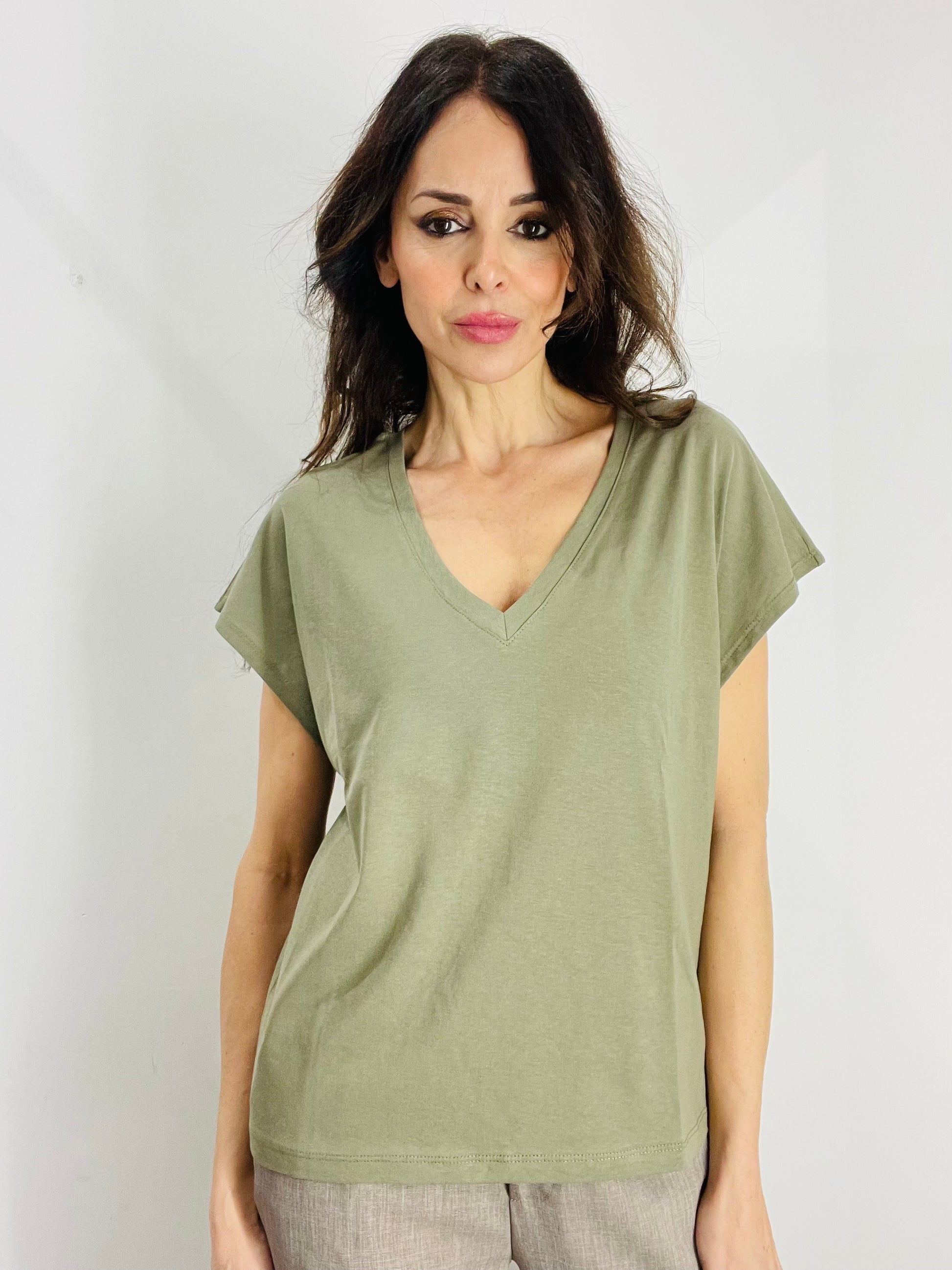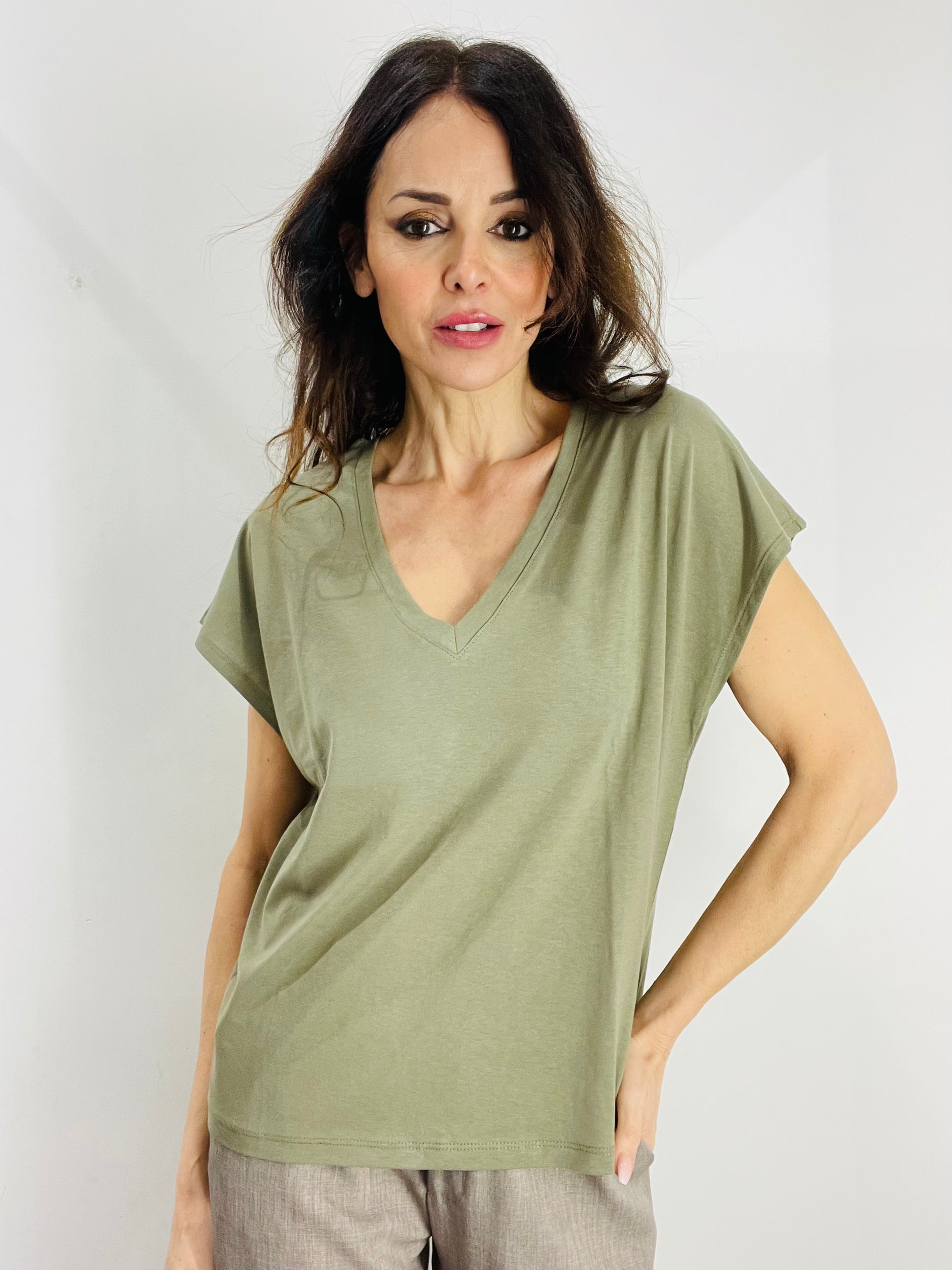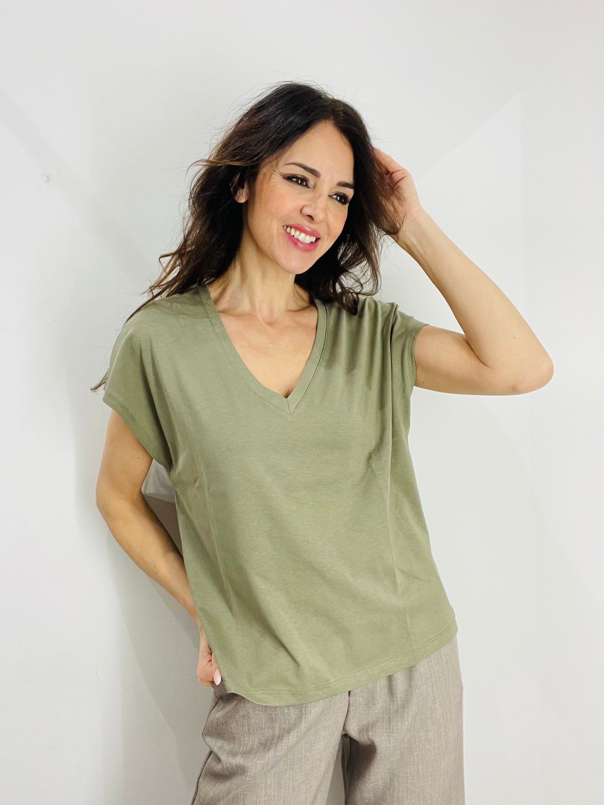 T-shirt in morbido cotone dal taglio a scatoletta con scollo a V