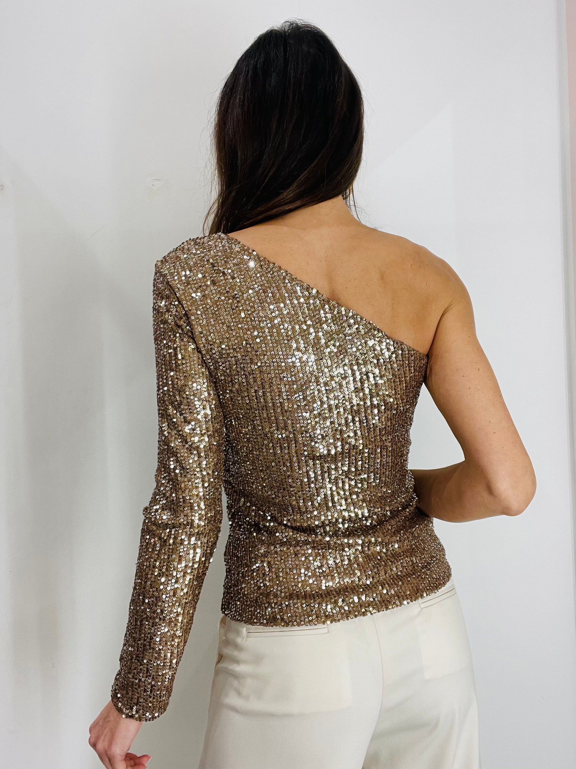 Top monospalla con paillettes, vestibilità regolare